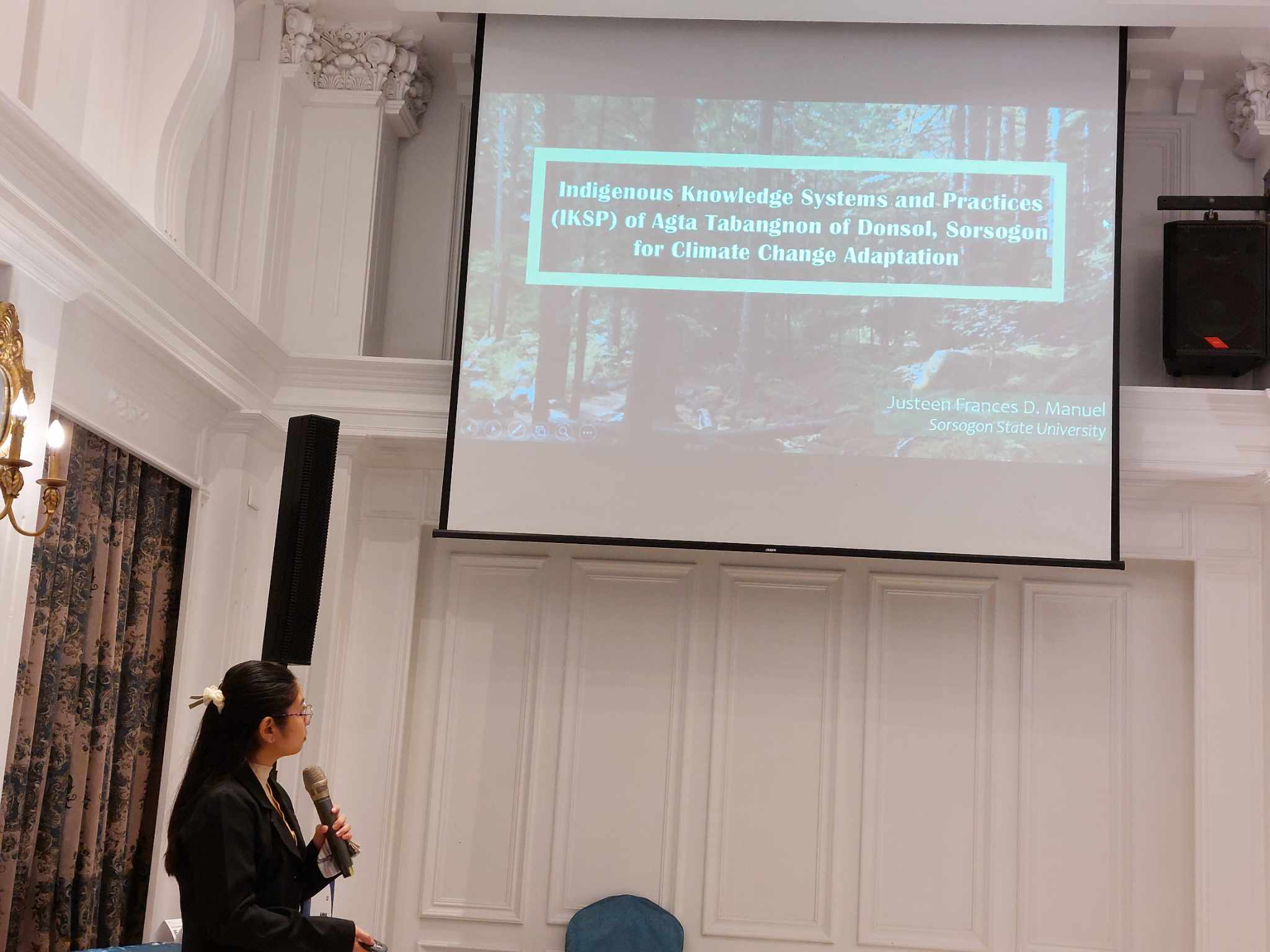 During the two-day international undertaking, Ms. Manuel, under the panel of Indigenous Knowledge and Land Use Planning, presented her study on the indigenous knowledge of the Agta Tabangnon of Donsol, Sorsogon for climate change adaptation, where she tackled the various indigenous knowledge and practices that aid the indigenous communities of Donsol in combating the impacts and challenges of the rapidly changing climatic conditions. Moreover, Ms. Manuel also discussed the localized perception of the indigenous communities towards climate change.