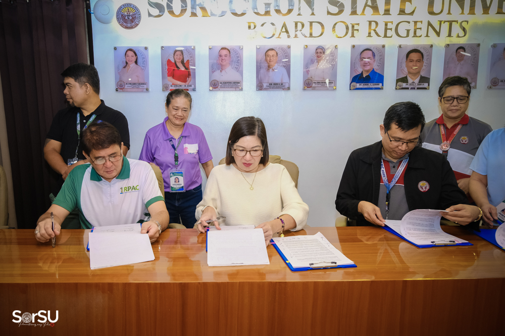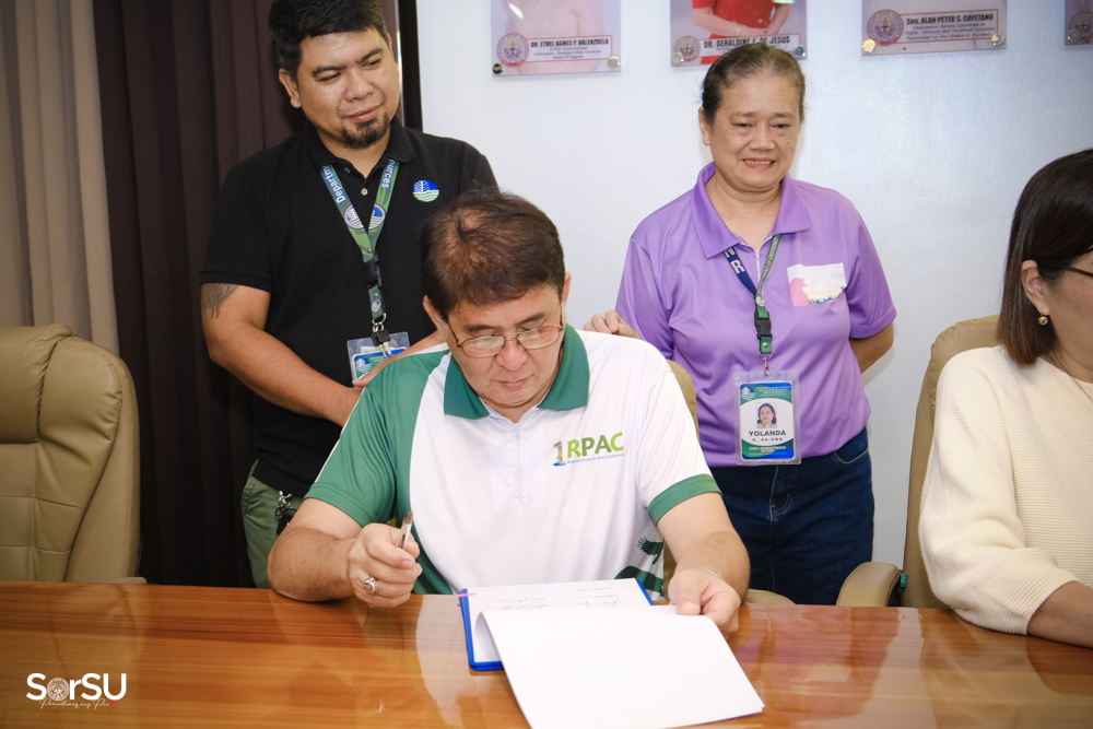 The agreement establishes cooperation between SorSU and DENR ROV for the implementation of the GEF-UNDP-DENR-funded project on the National Framework for Access and Benefit Sharing (ABS) of Pili genetic resources, and promotes fair and equitable sharing of benefits derived from their utilization.