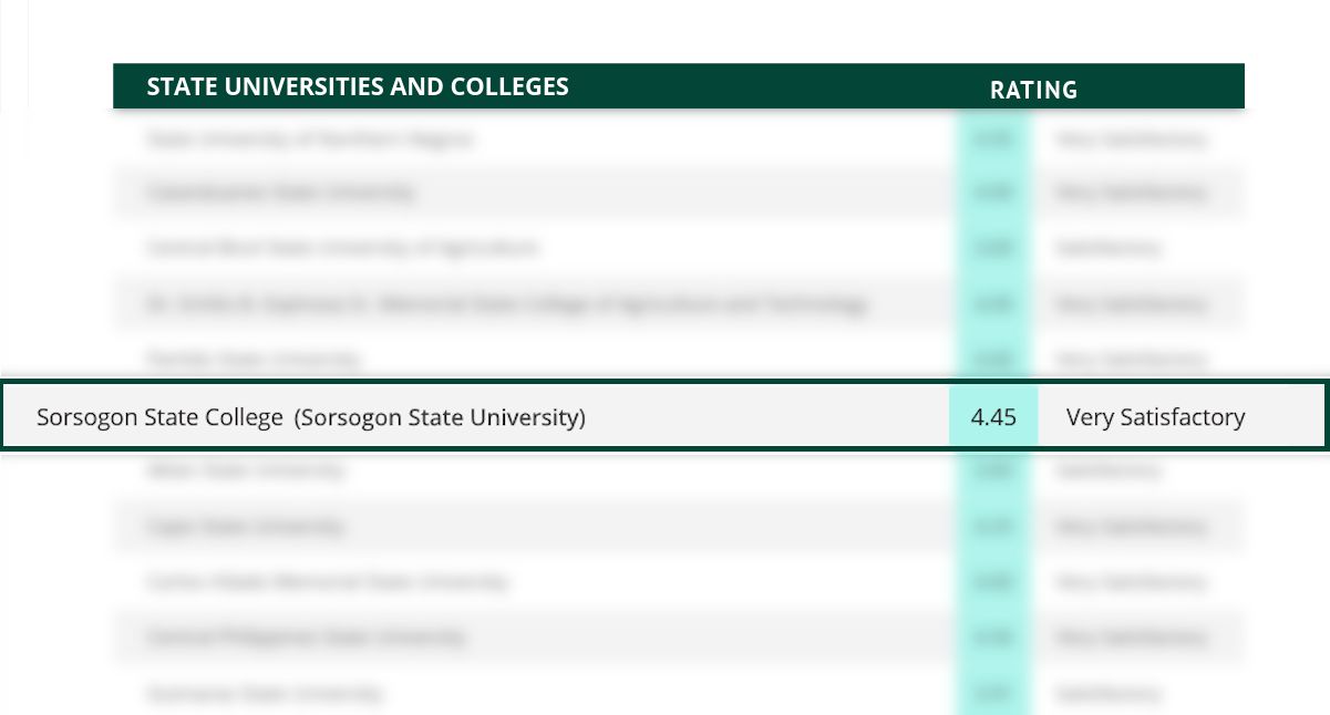 Sorsogon State University (SorSU) proudly celebrates its recognition with a Very Satisfactory rating in the 2024 Budget ng Bayan Monitor released by the Department of Budget and Management (DBM).
