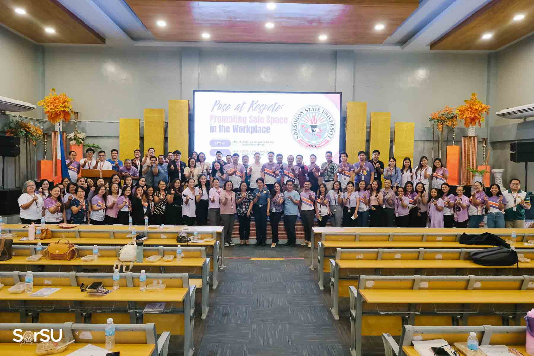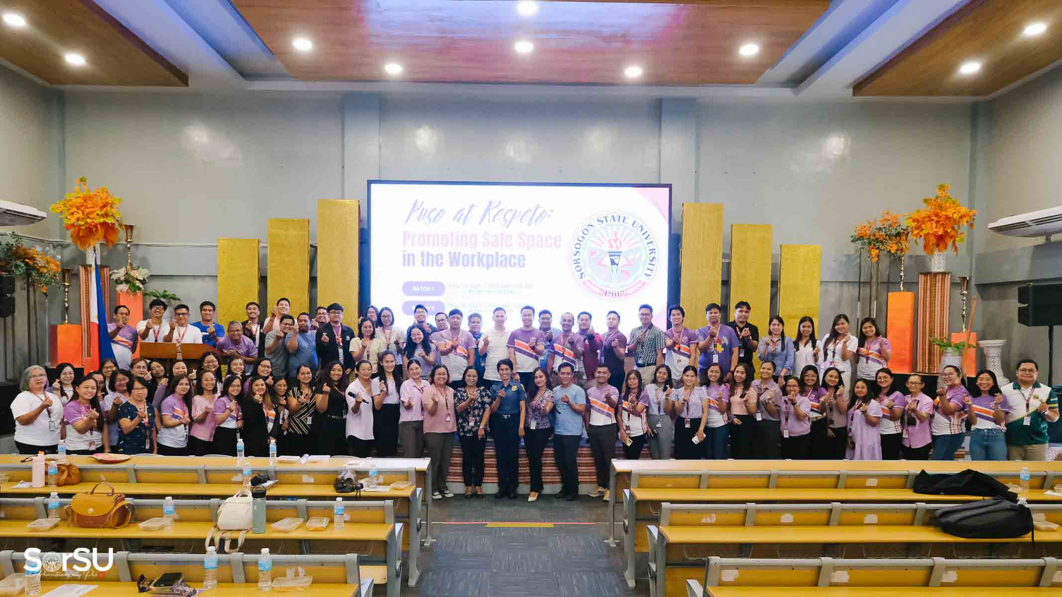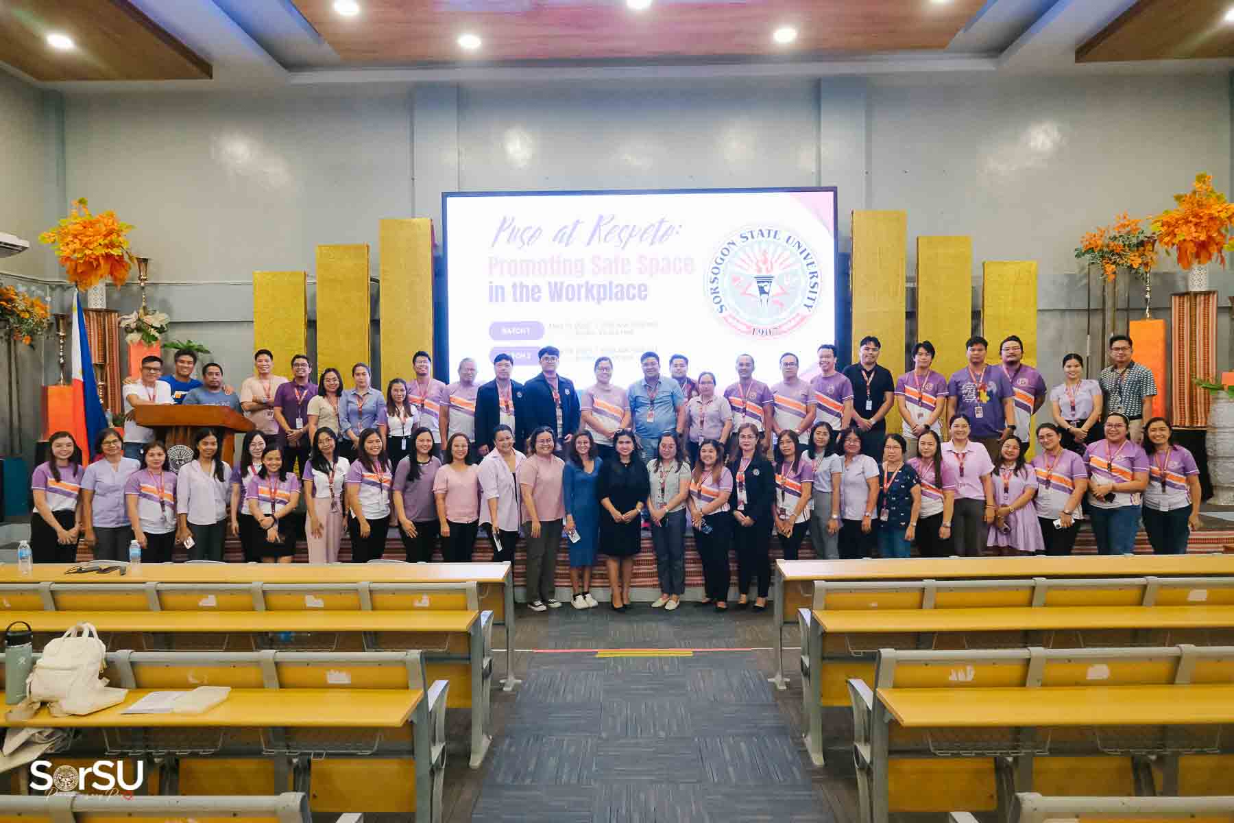 To champion gender sensitivity, inclusivity, and a safe working/learning environment, Sorsogon State University (SorSU), led by the Office of Legal Affairs, Human Resource Management and Development Office (HRMDO), Gender and Development (GAD) Office, and the Office of the Campus Directors, empowered and further raised awareness among its teaching and non-teaching personnel through an activity titled Puso at Respeto: Promoting Safe Space in the Workplace on May 13, 2025, for Batch 1, at the SorSU Audio-Visual Hall, Sorsogon City Campus.