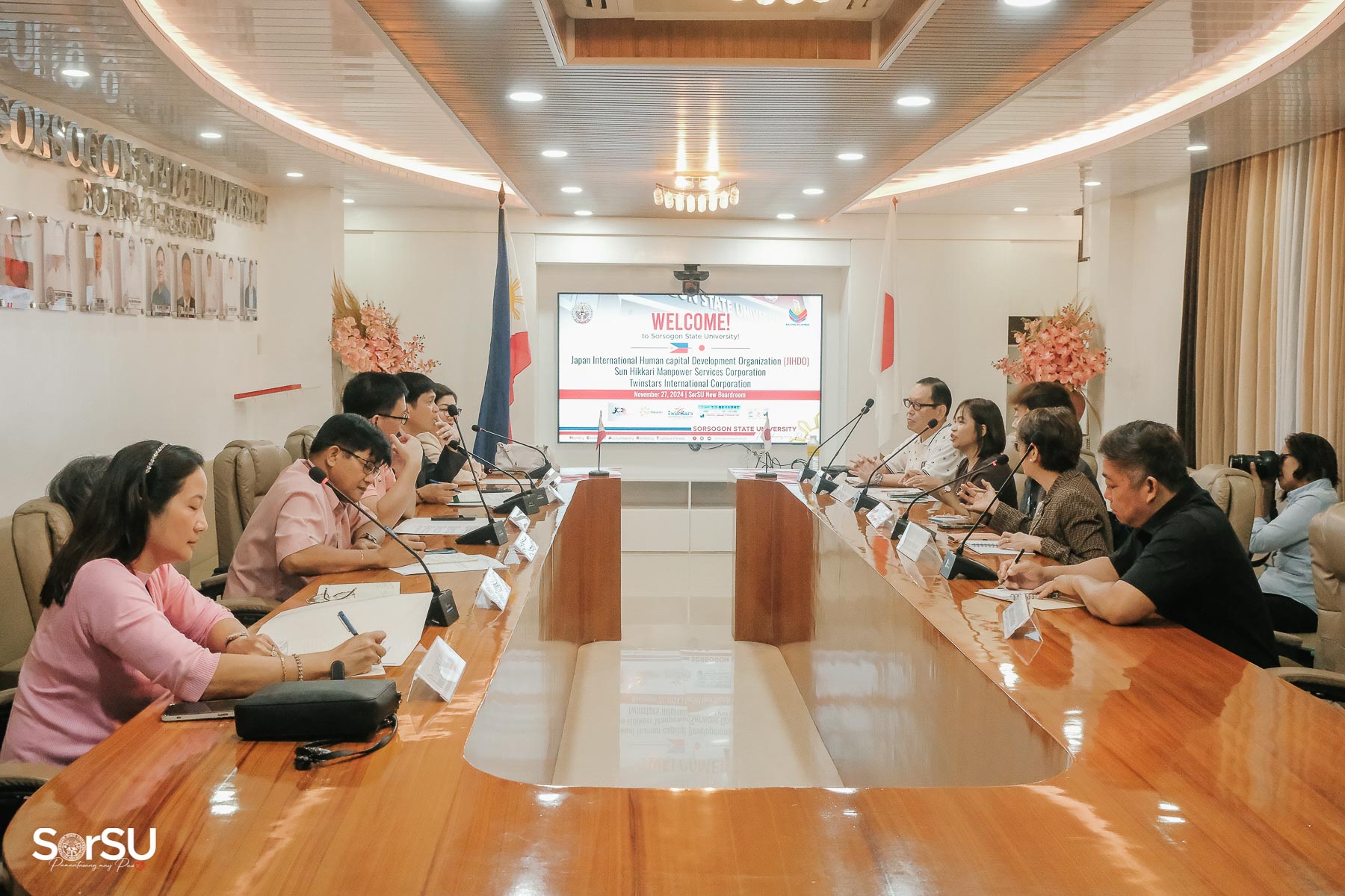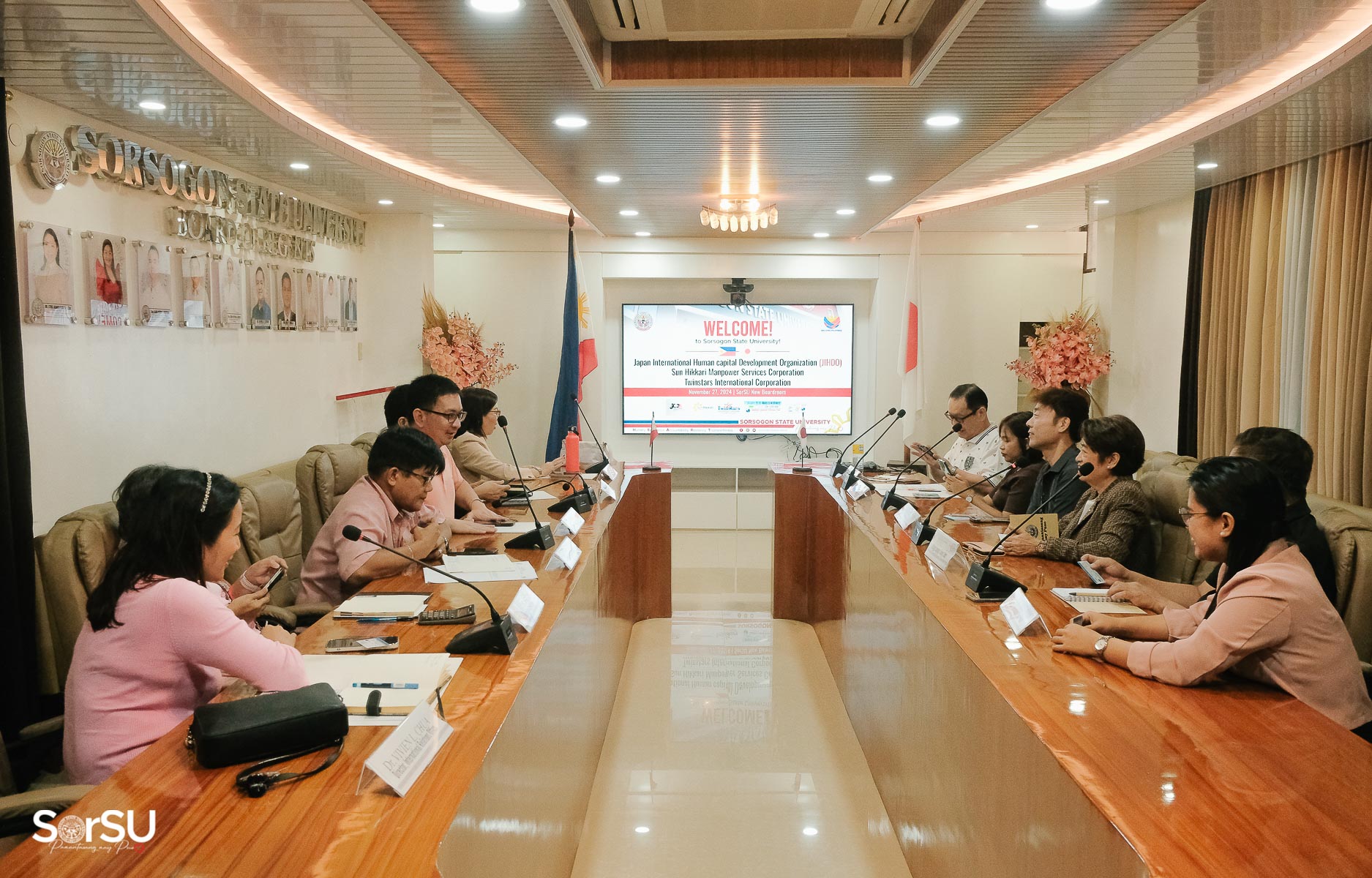 As part of the university’s efforts to provide more opportunities for SorSUenos, Sorsogon State University hosted a meeting with representatives from Japan International Human capital Development Organization (JIHDO) & J-CERT Philippines Association to discuss prospects for further cooperation, as well as opportunities for academic exchange, on November 27, 2024, at the SorSU Boardroom, Sorsogon City.
