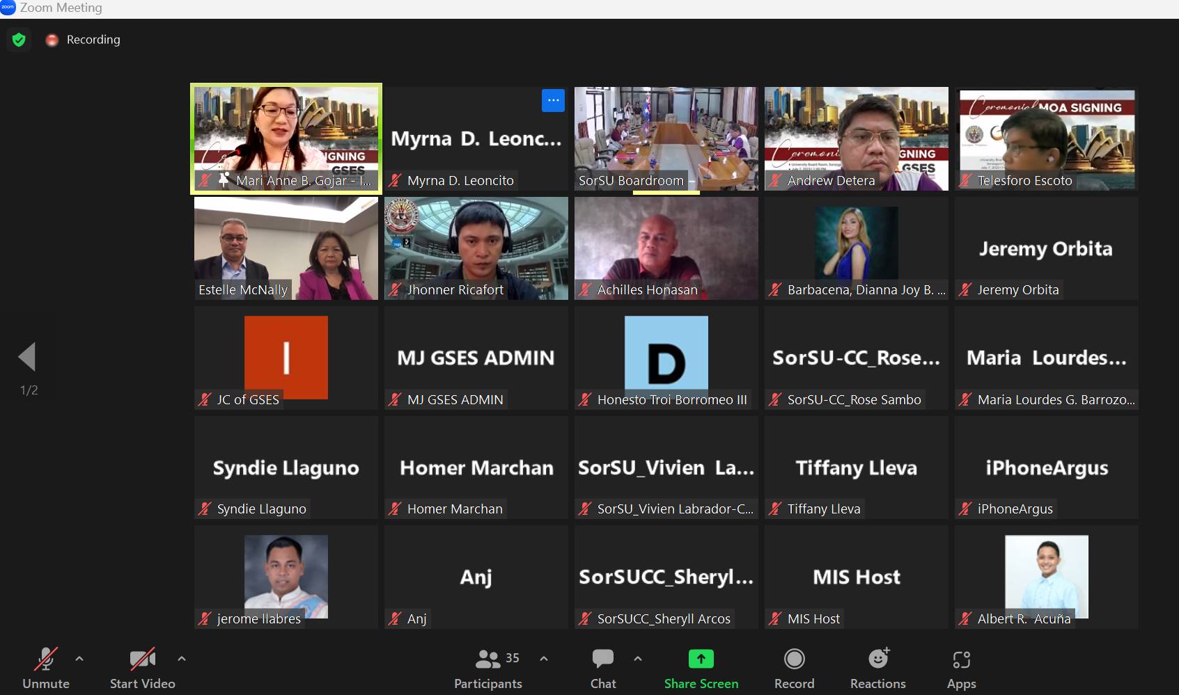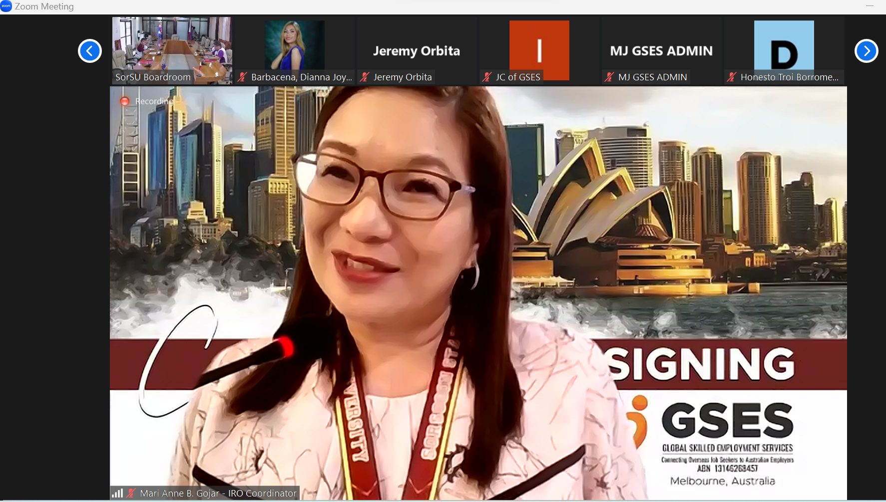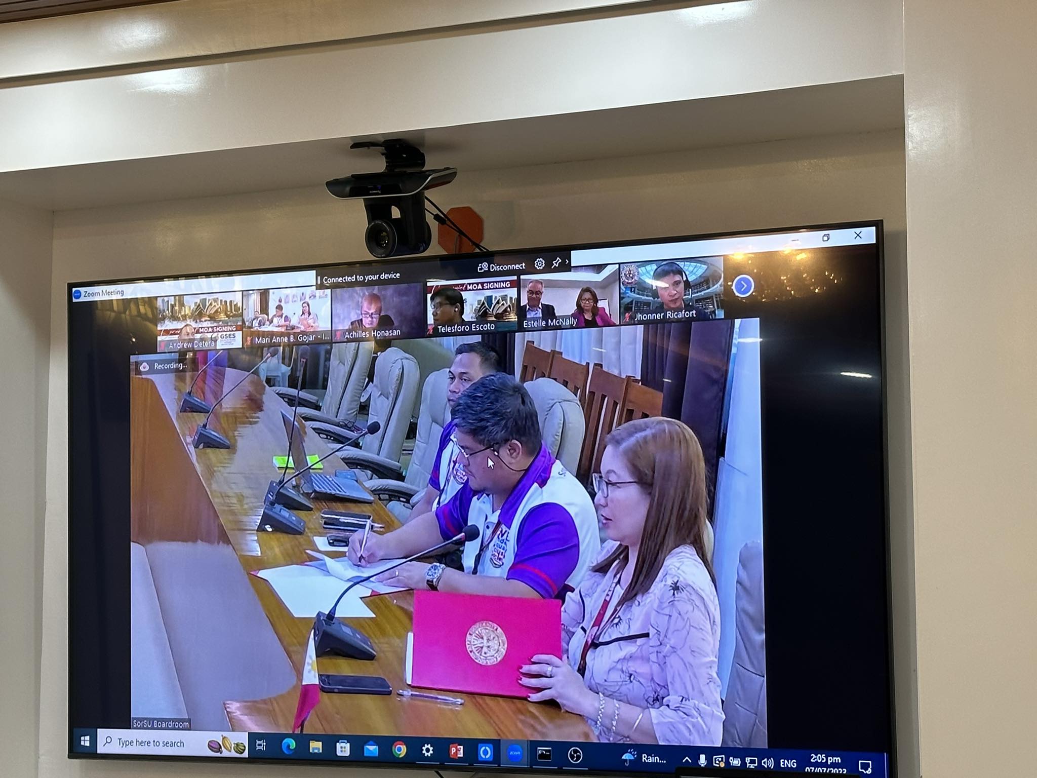 Strengthening the University’s vision and commitment to developing globally competitive leaders and professionals, a virtual Memorandum of Agreement (MOA) ceremonial signing between Sorsogon State University (SorSU) and Global Skilled Employment Services (GSES) took place on July 07, 2023, via Zoom meeting.