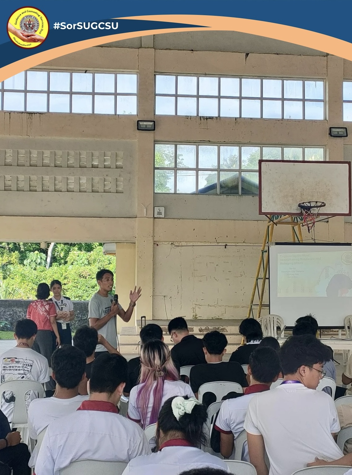 To support electrical engineering alumni and fourth-year students in building resilience and essential skills to overcome challenges while preparing for their board examinations, the Office of Student Development and Services – Guidance and Counseling Services Unit (OSDS-GCSU) successfully organized a transformative session titled Engineering the Mind: Strengthening Resilience and Managing Stress on April 3, 2024, at the SorSU-Sorsogon City Campus Extension (Baribag Site) Covered Court.