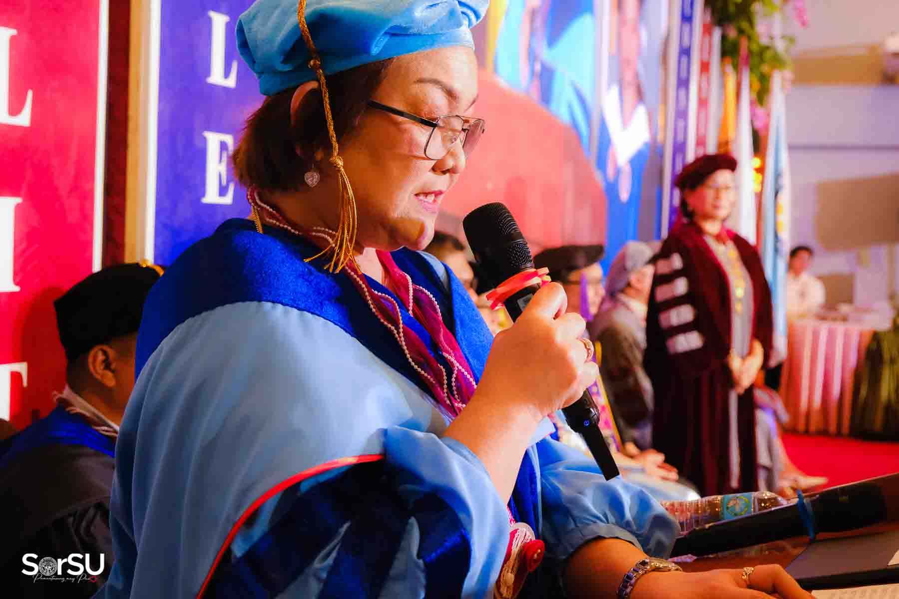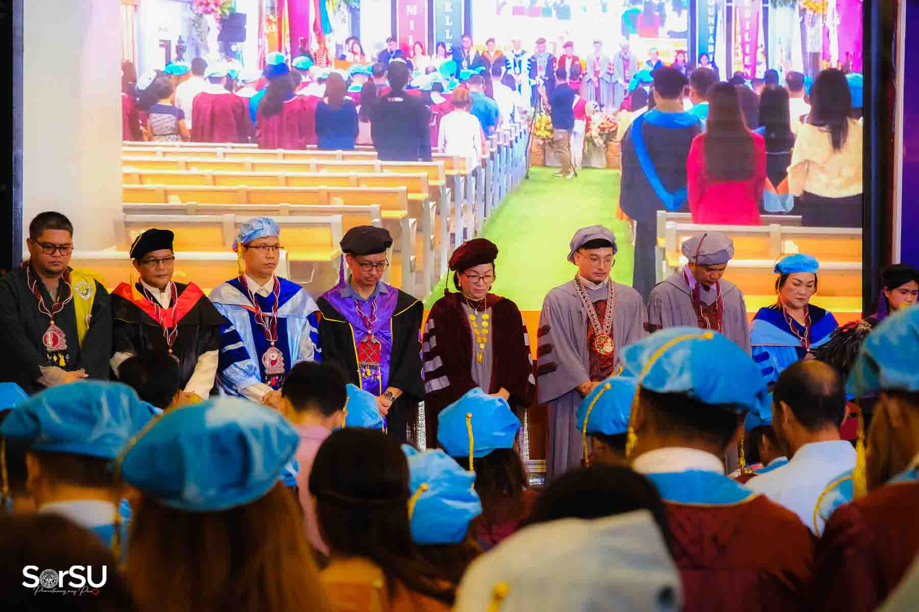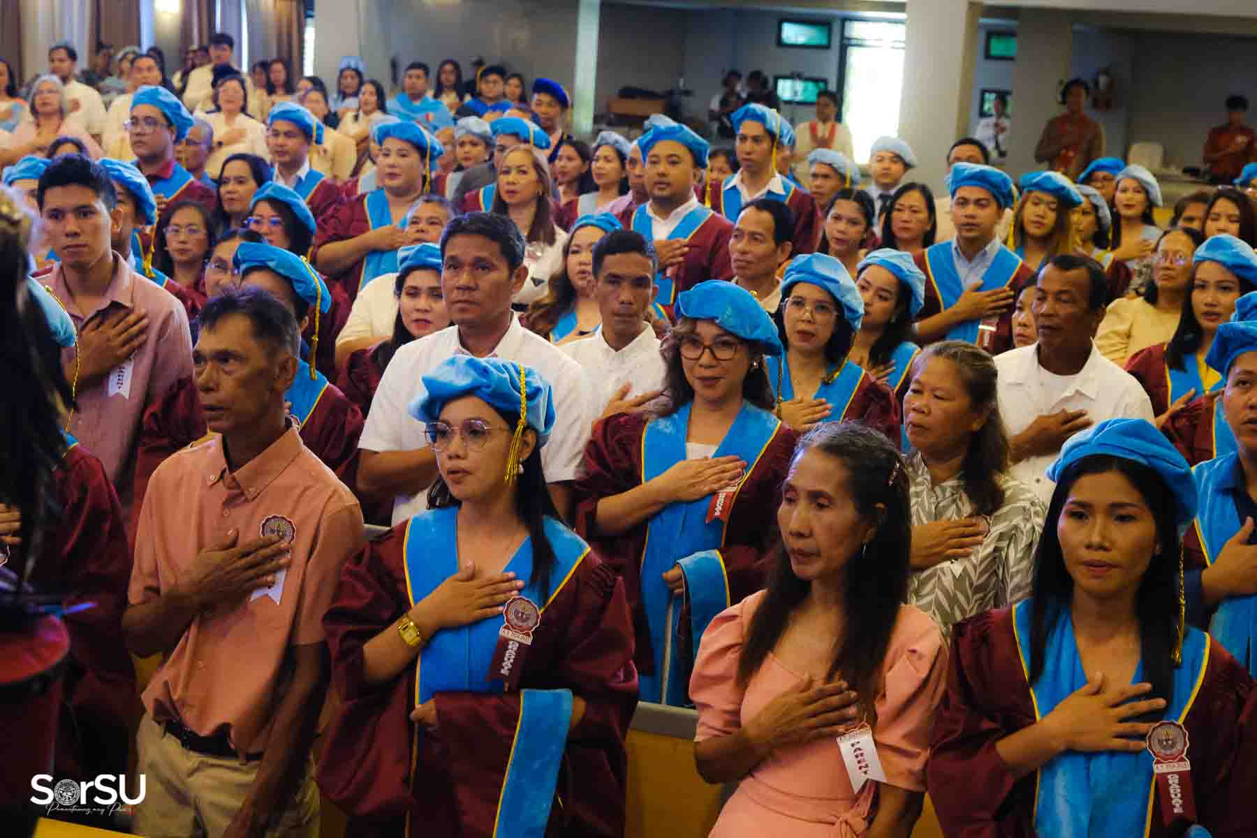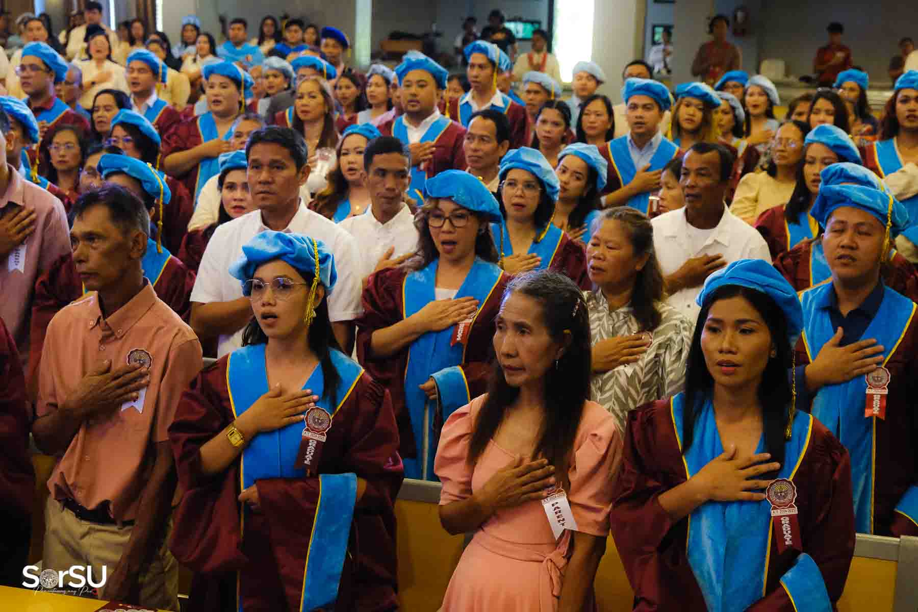Following the awarding of diplomas, the graduates recited the Pledge of Loyalty and were formally inducted into the SorSU Alumni Association. The ceremony ended with the singing of the university hymn, officially concluding the event.
