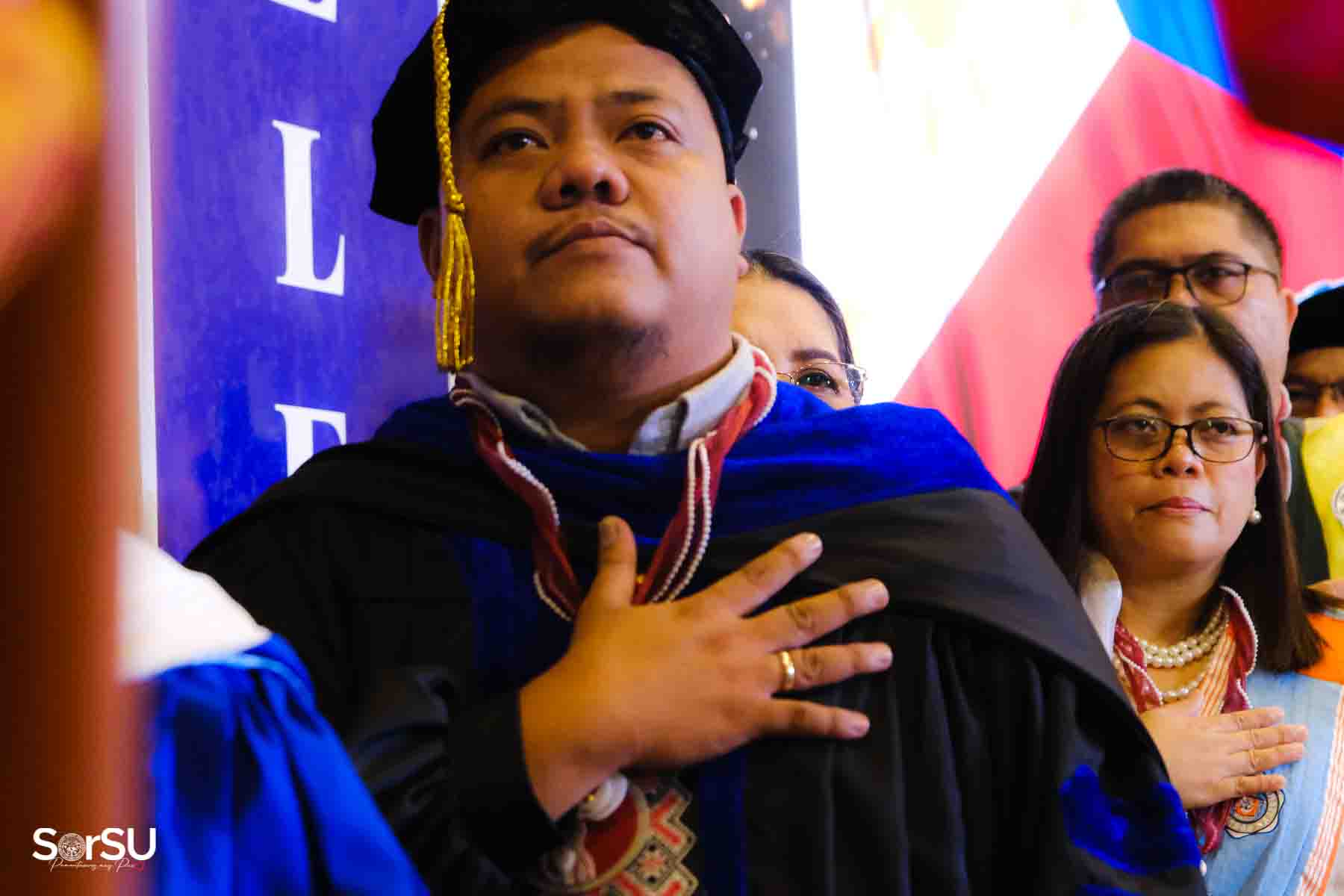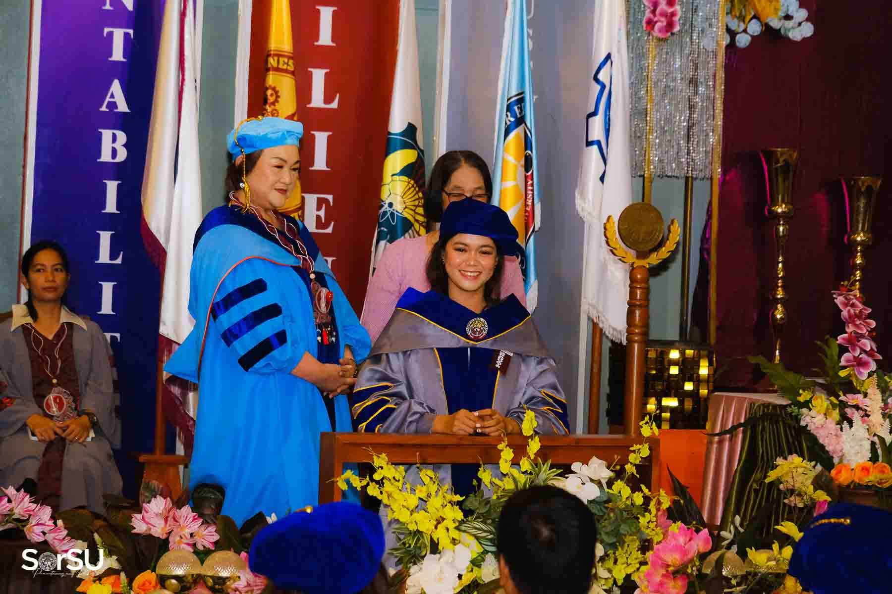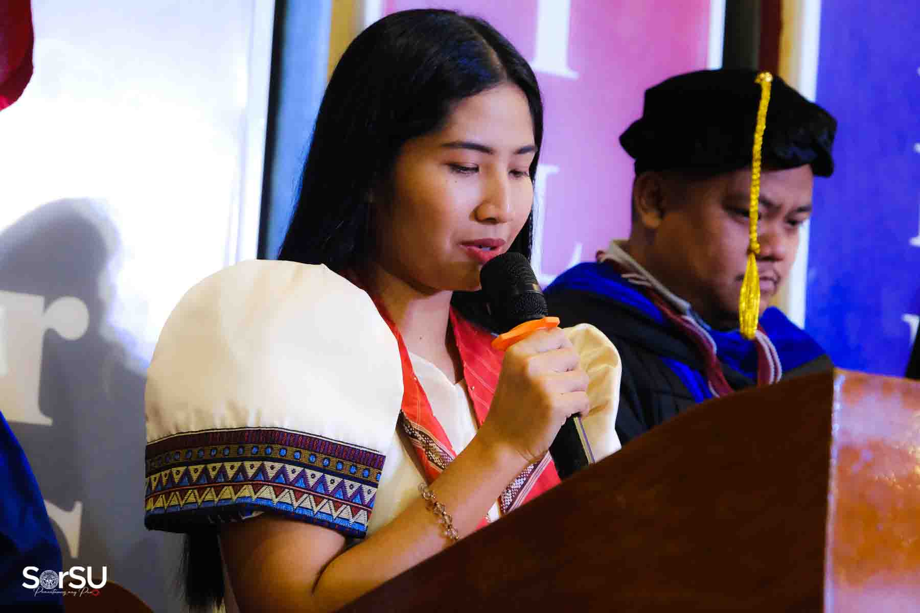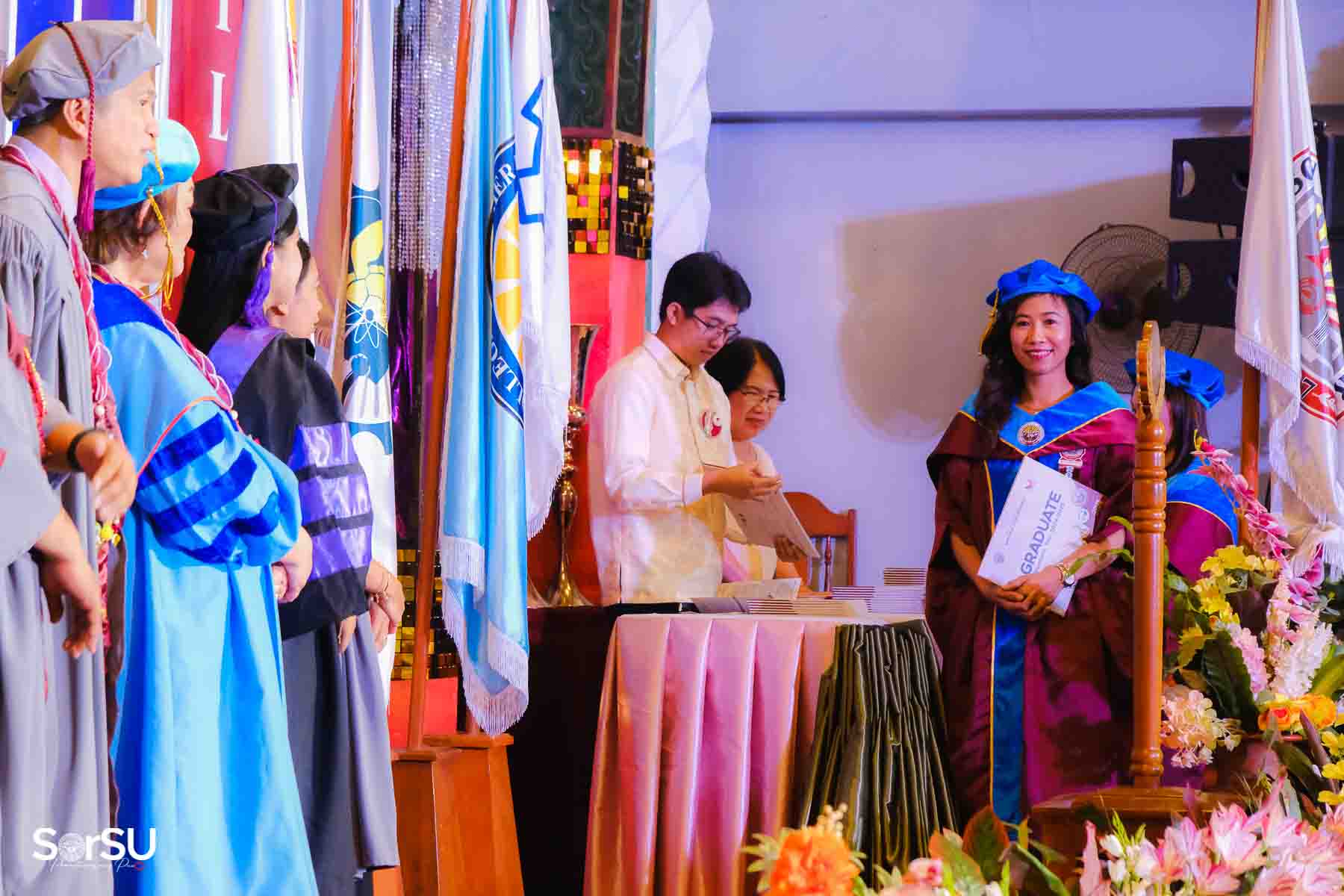 Following the awarding of diplomas, the graduates recited the Pledge of Loyalty and were formally inducted into the SorSU Alumni Association. The ceremony ended with the singing of the university hymn, officially concluding the event.
