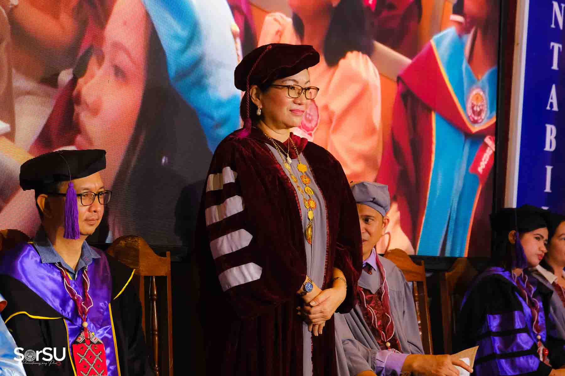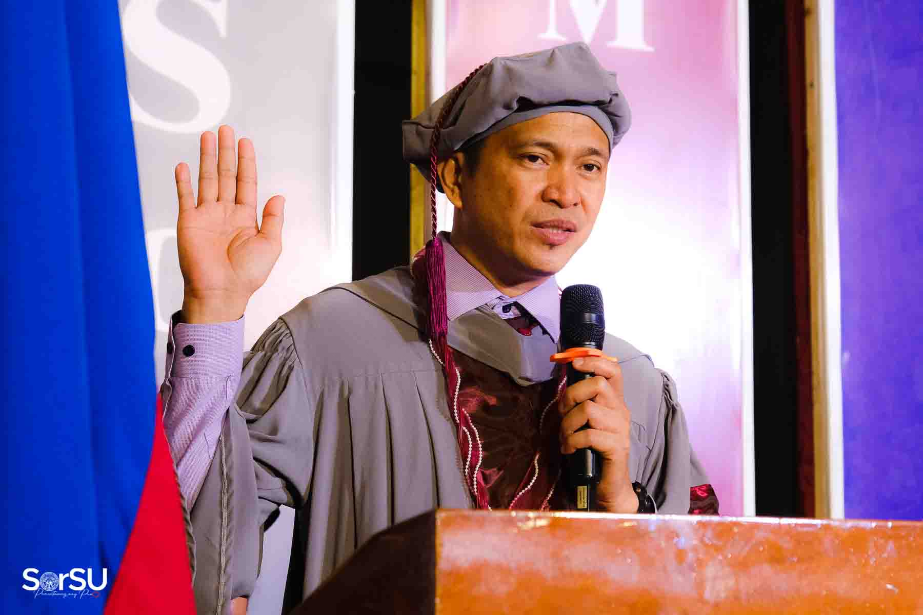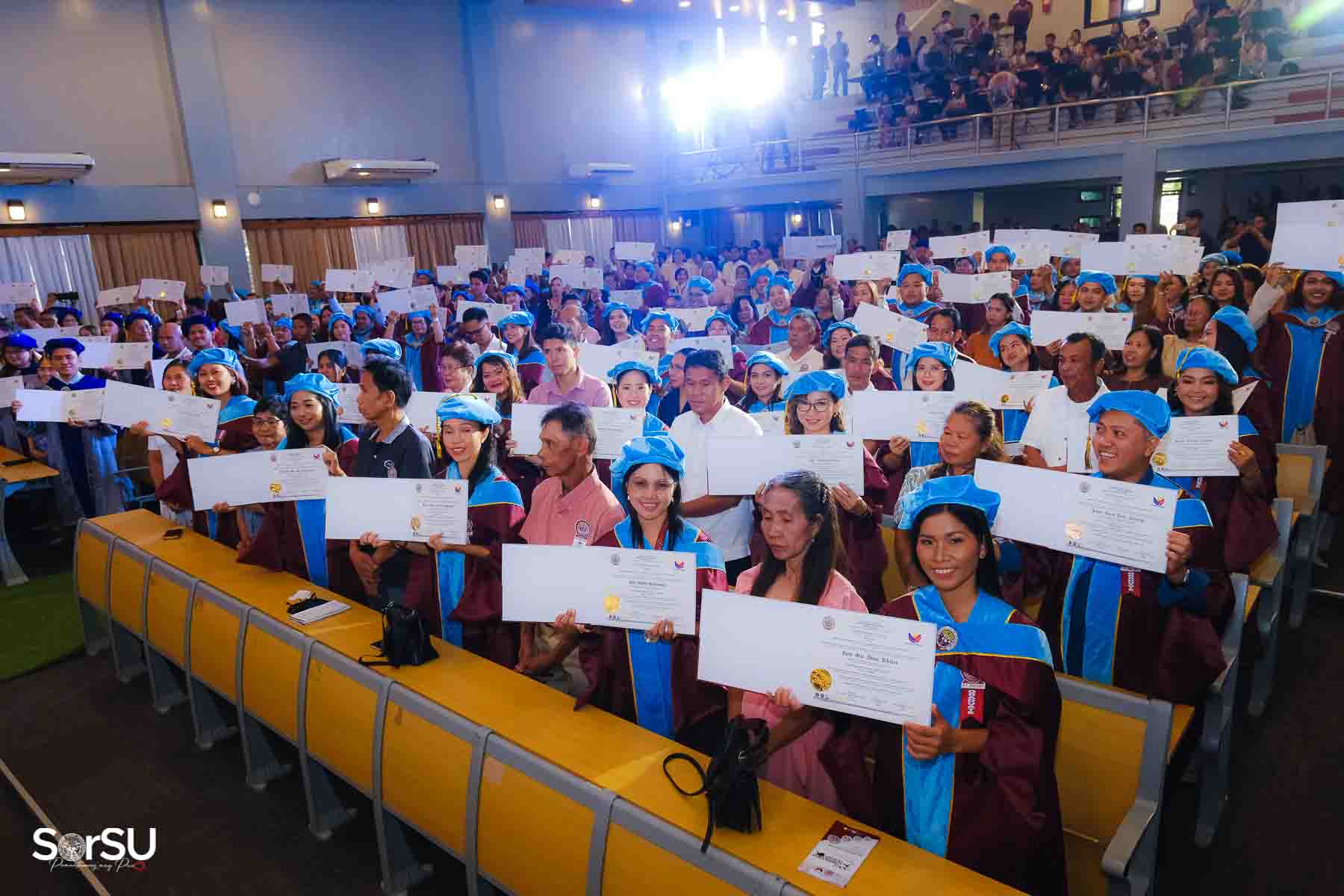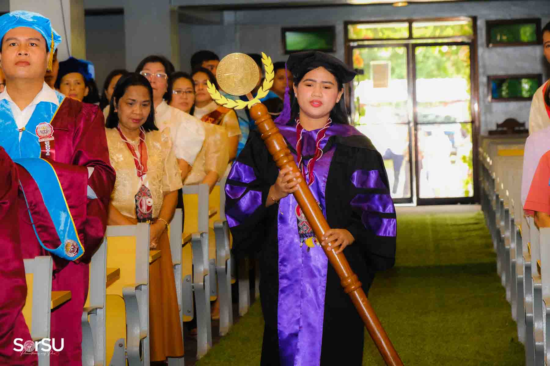Following the awarding of diplomas, the graduates recited the Pledge of Loyalty and were formally inducted into the SorSU Alumni Association. The ceremony ended with the singing of the university hymn, officially concluding the event.