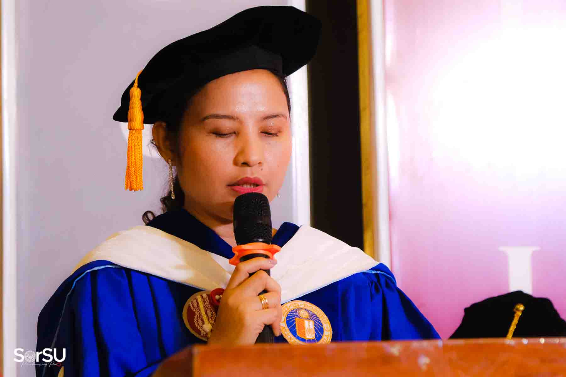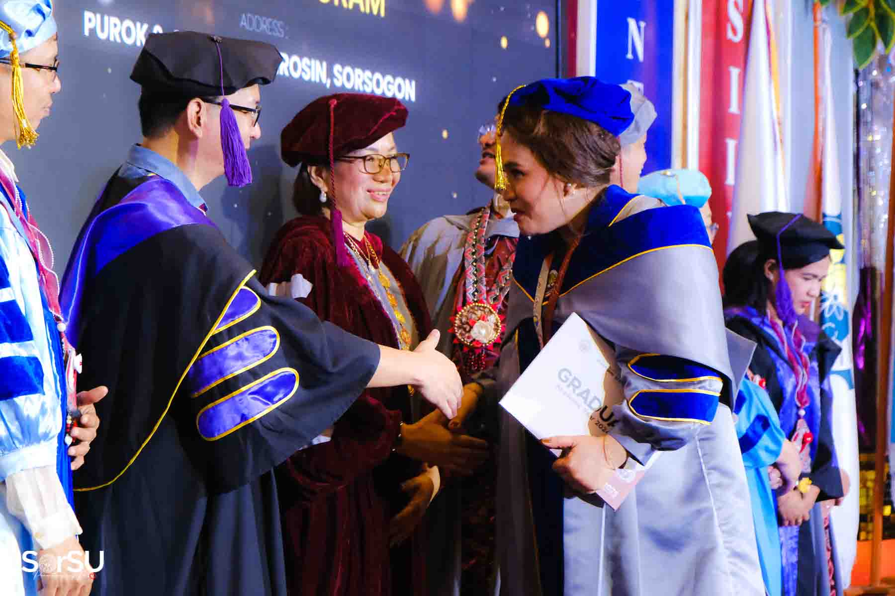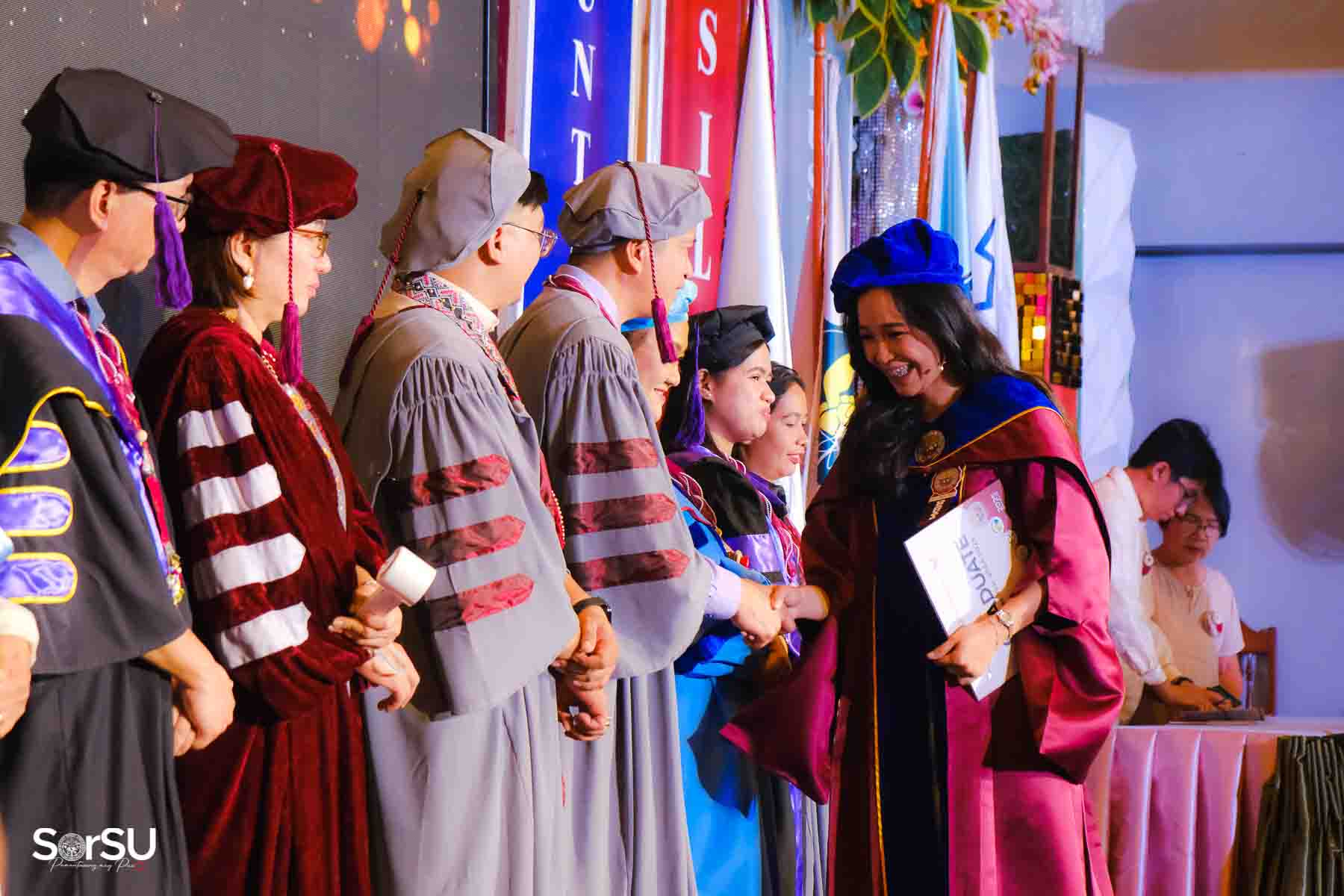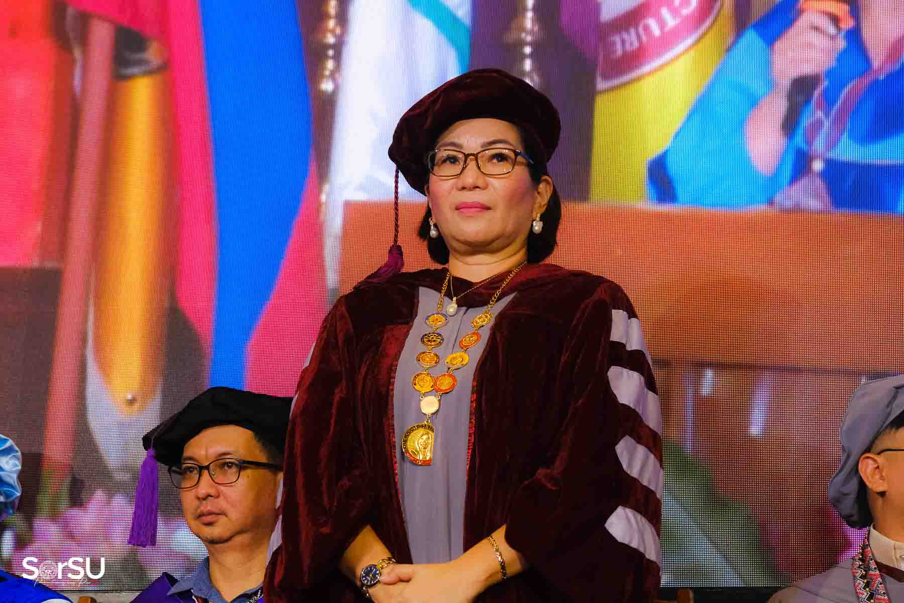 Following the awarding of diplomas, the graduates recited the Pledge of Loyalty and were formally inducted into the SorSU Alumni Association. The ceremony ended with the singing of the university hymn, officially concluding the event.