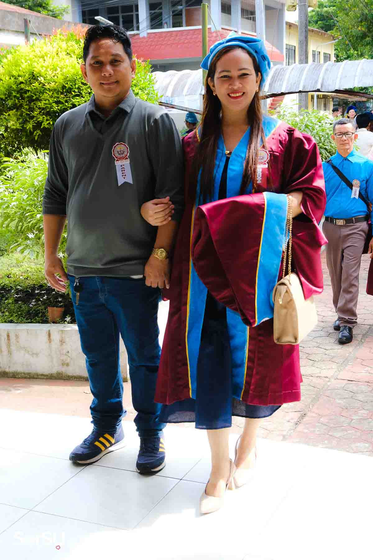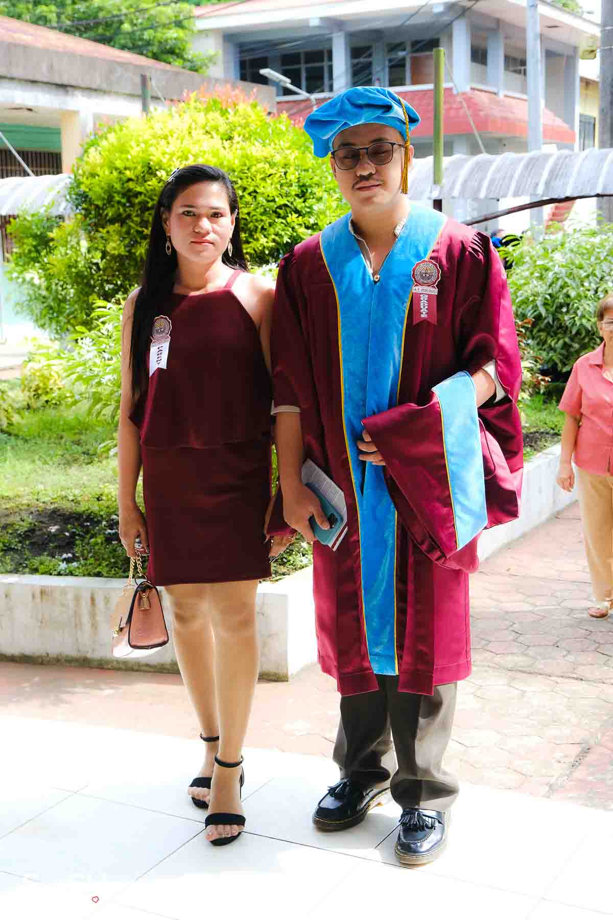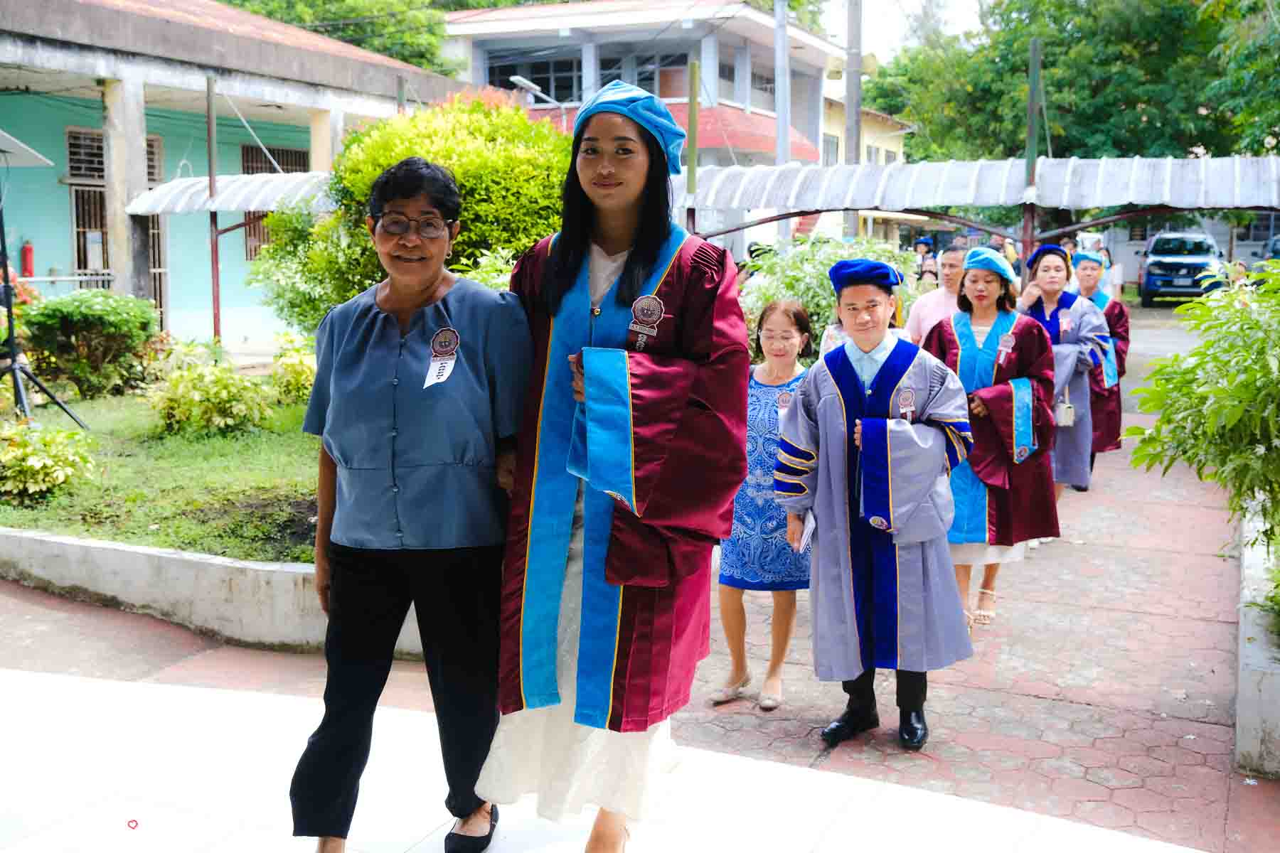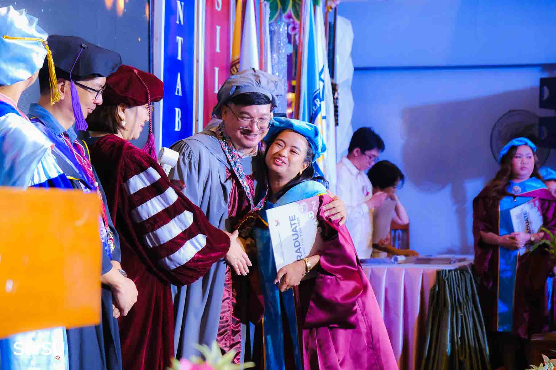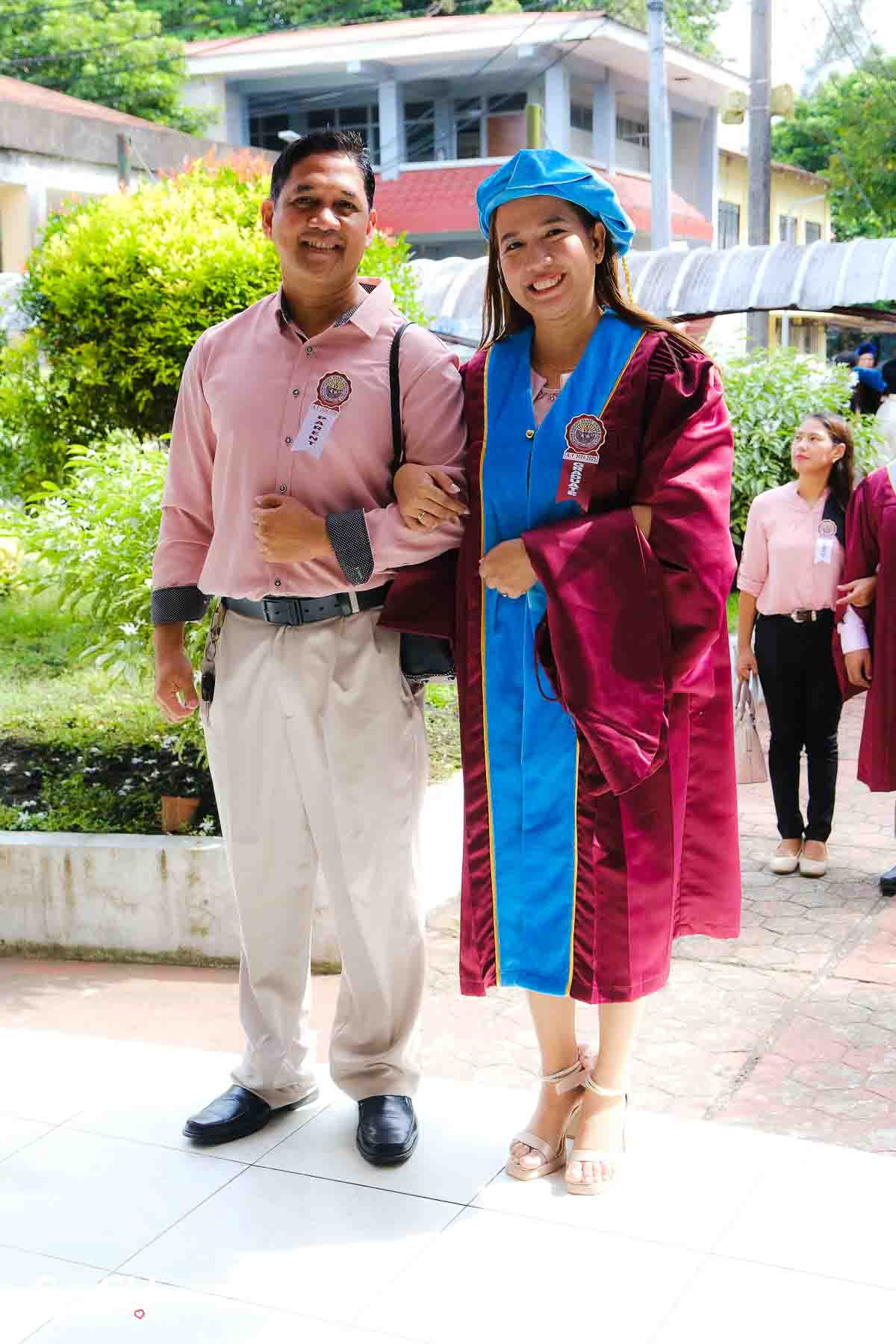 The ceremony opened with the traditional academic processional, followed by the singing of the Philippine National Anthem and a doxology. One of the program’s highlights was the Imposition of Hoods, where parents or spouses placed academic hoods on the candidates, indicating the completion of their graduate programs.