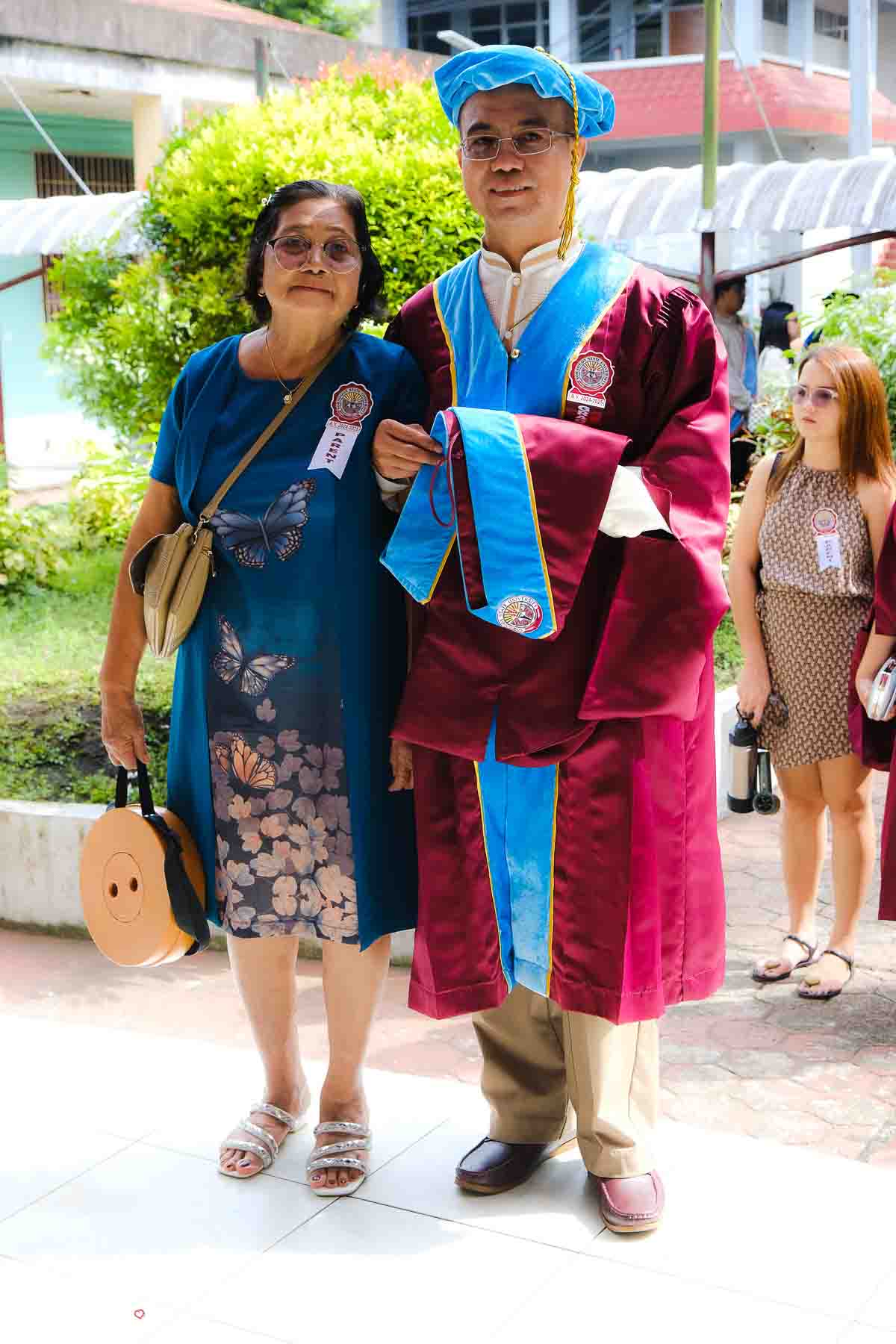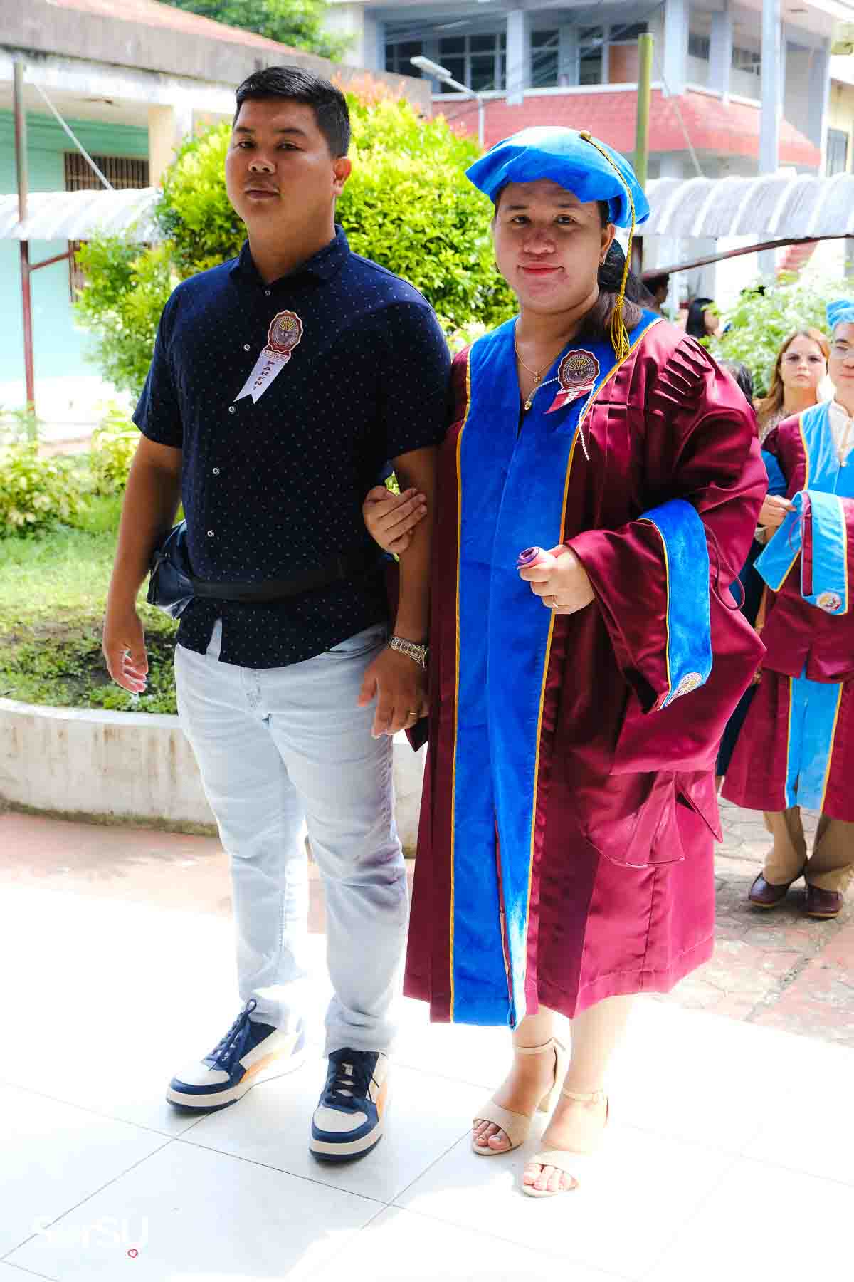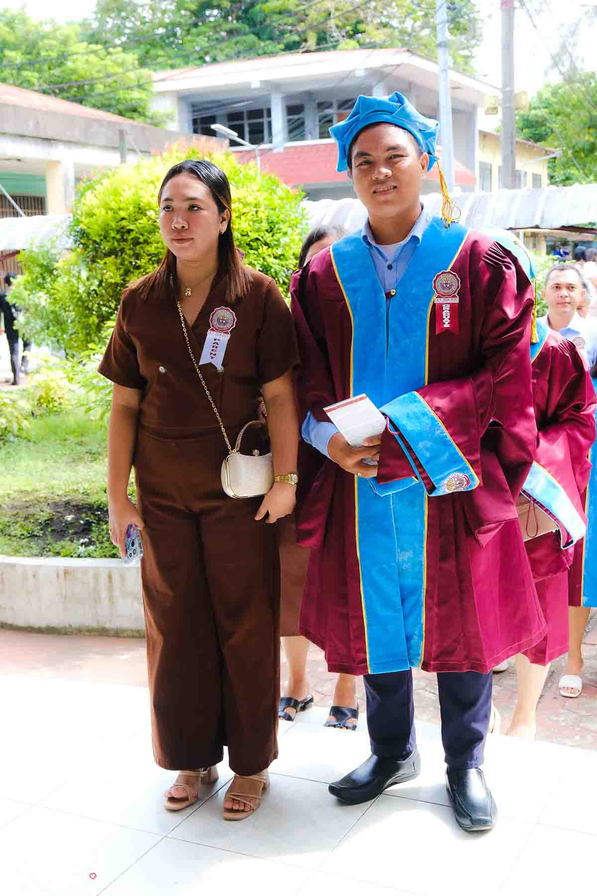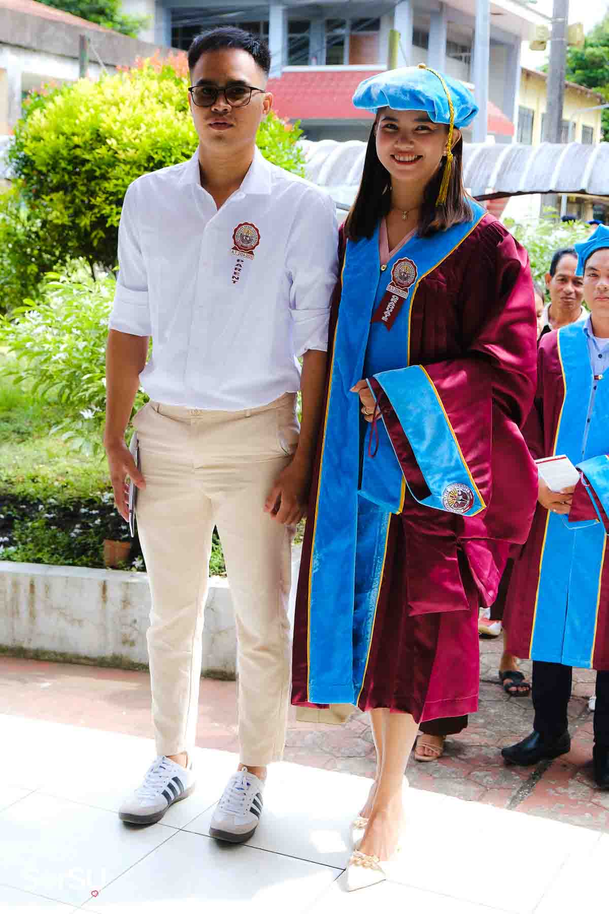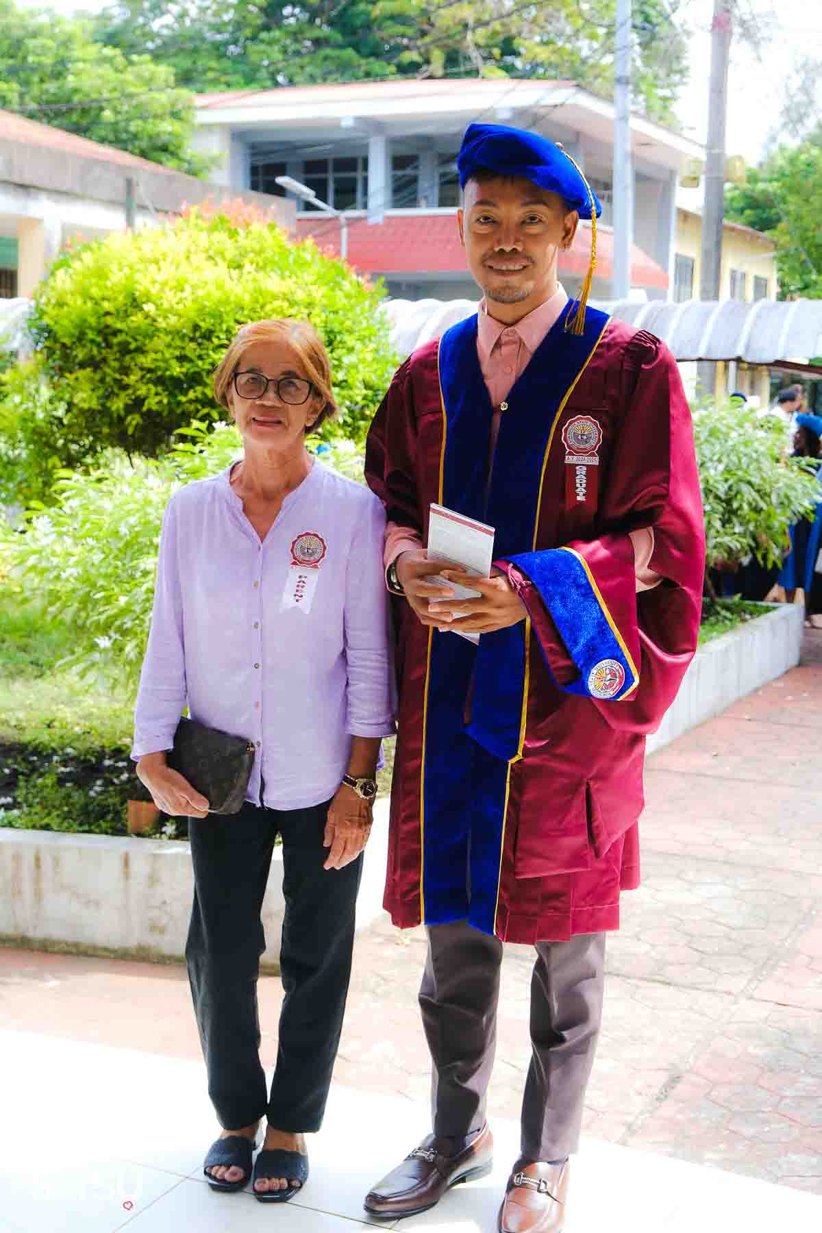 The ceremony opened with the traditional academic processional, followed by the singing of the Philippine National Anthem and a doxology. One of the program’s highlights was the Imposition of Hoods, where parents or spouses placed academic hoods on the candidates, indicating the completion of their graduate programs.