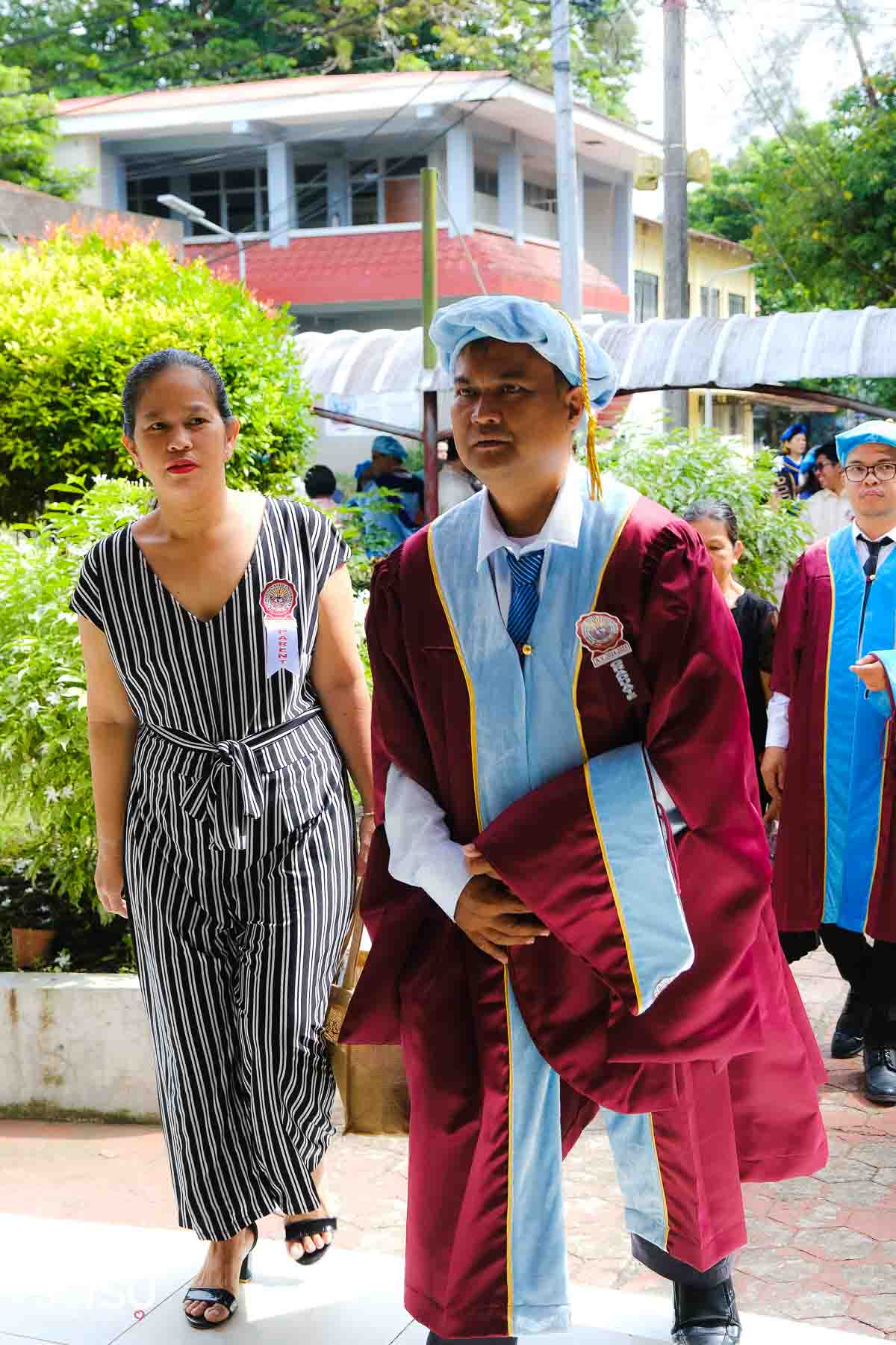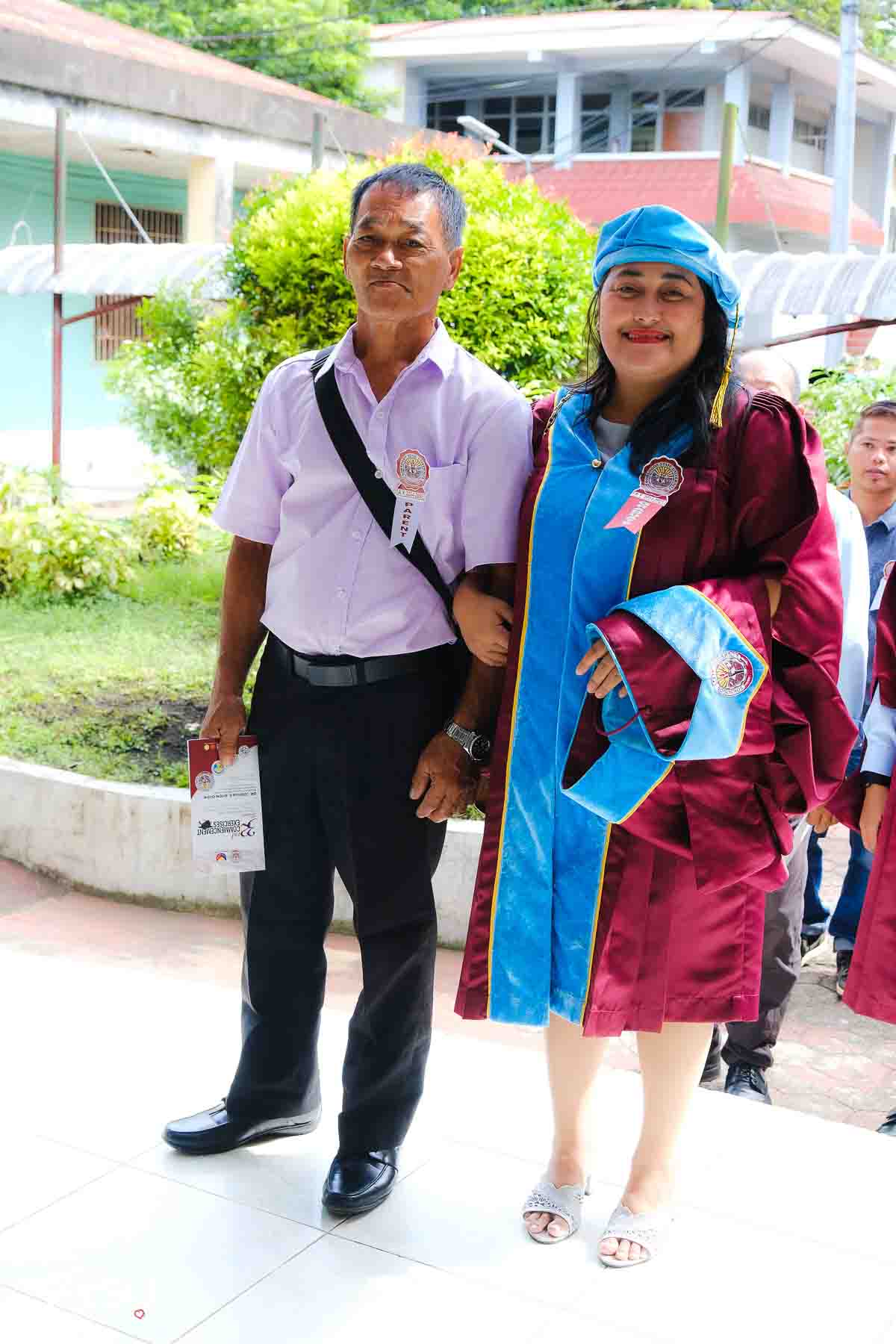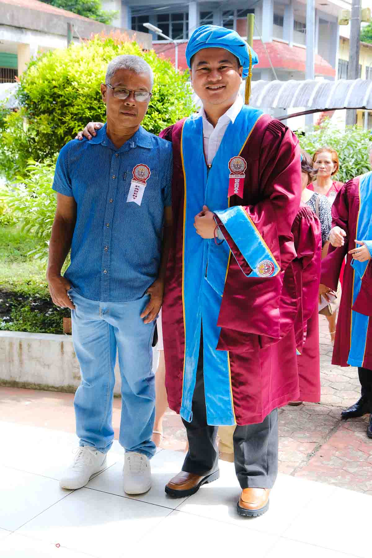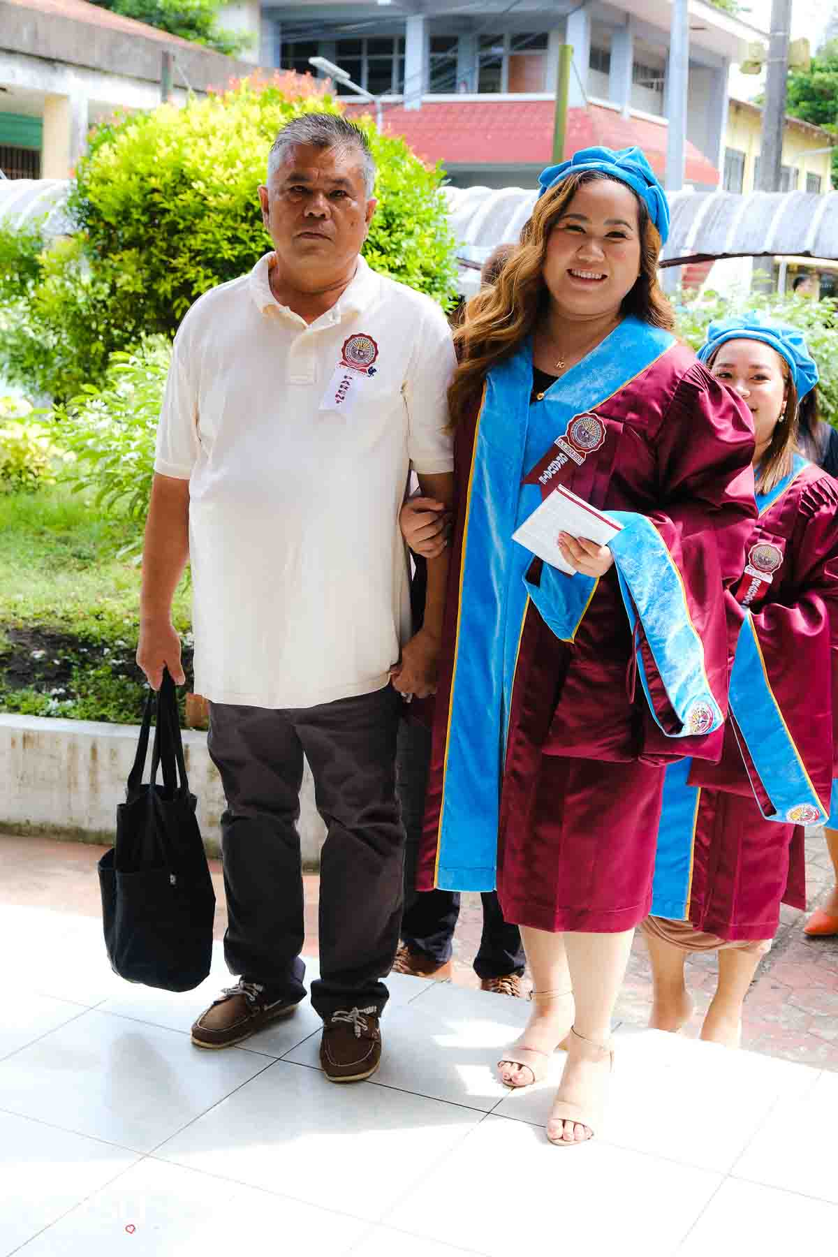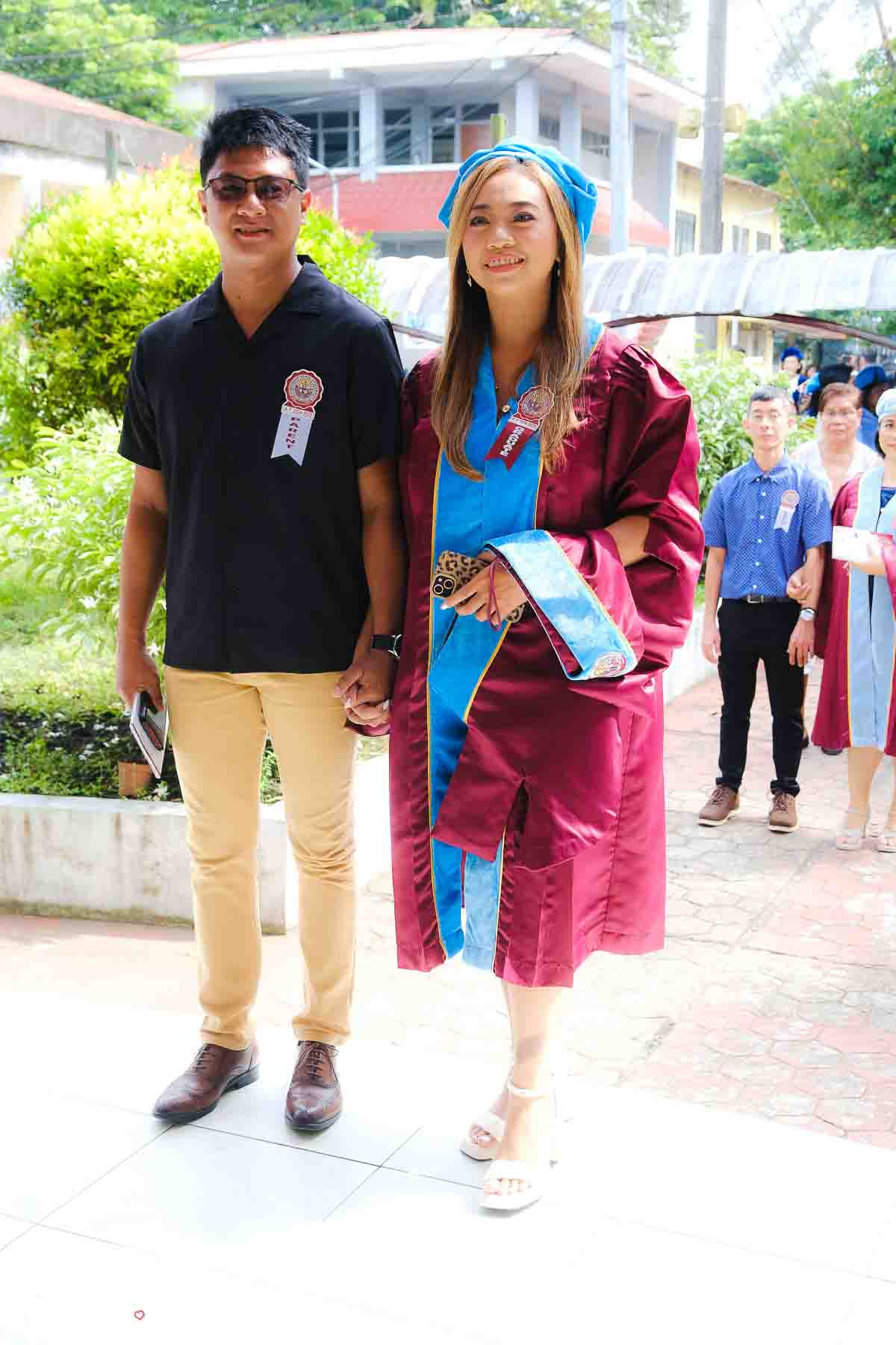 The ceremony opened with the traditional academic processional, followed by the singing of the Philippine National Anthem and a doxology. One of the program’s highlights was the Imposition of Hoods, where parents or spouses placed academic hoods on the candidates, indicating the completion of their graduate programs.