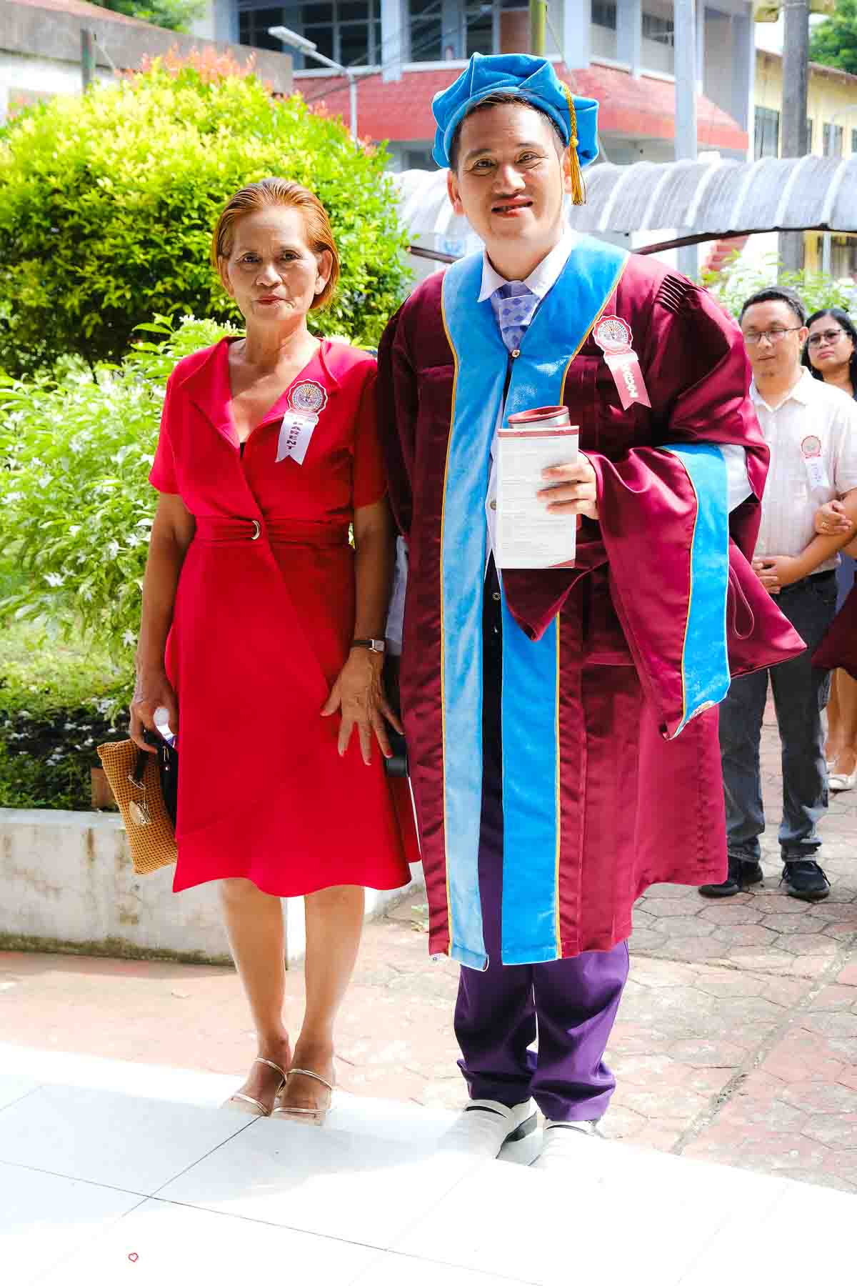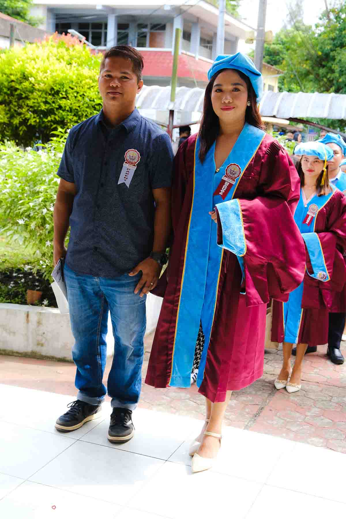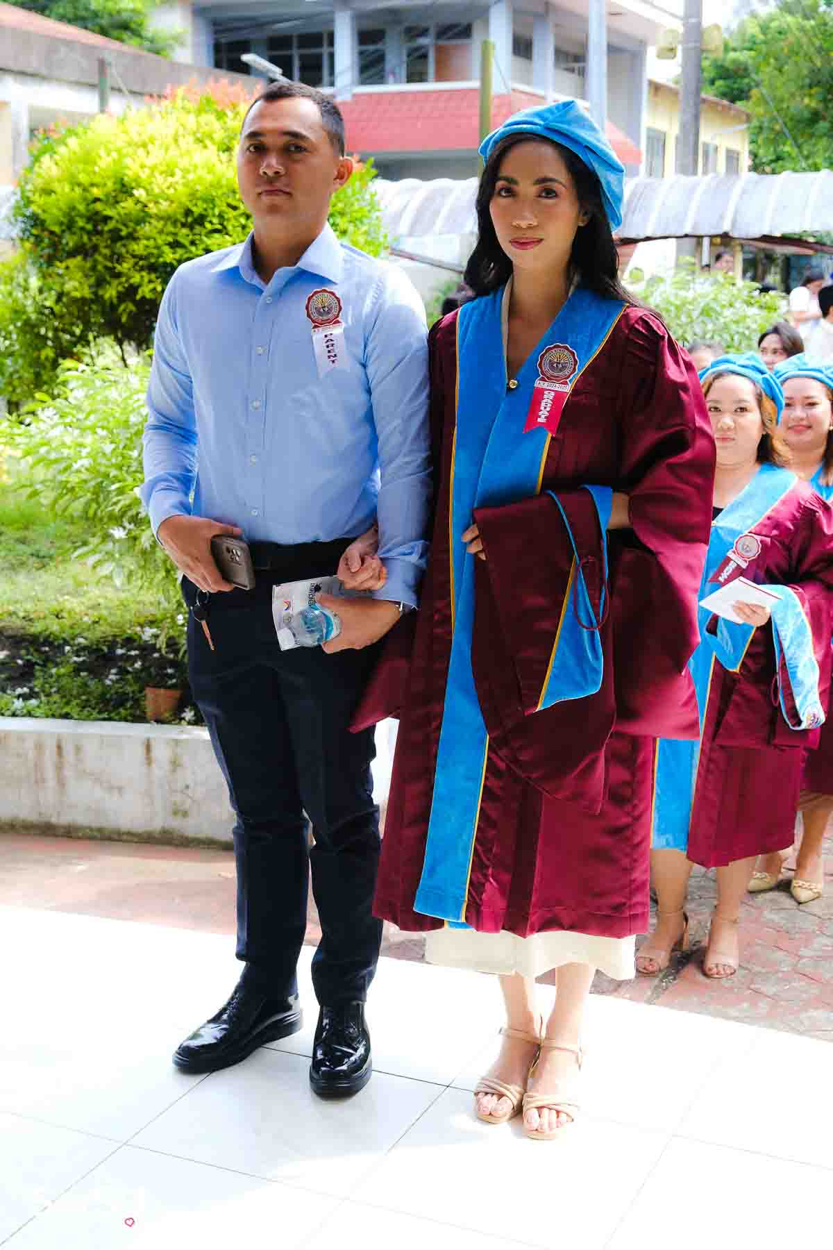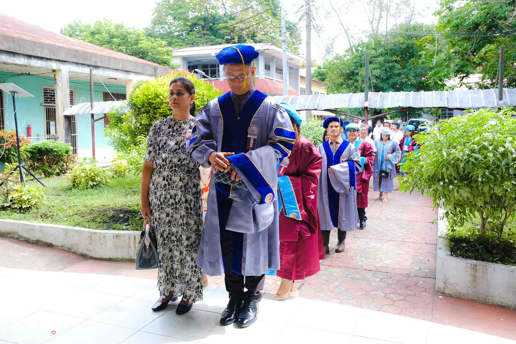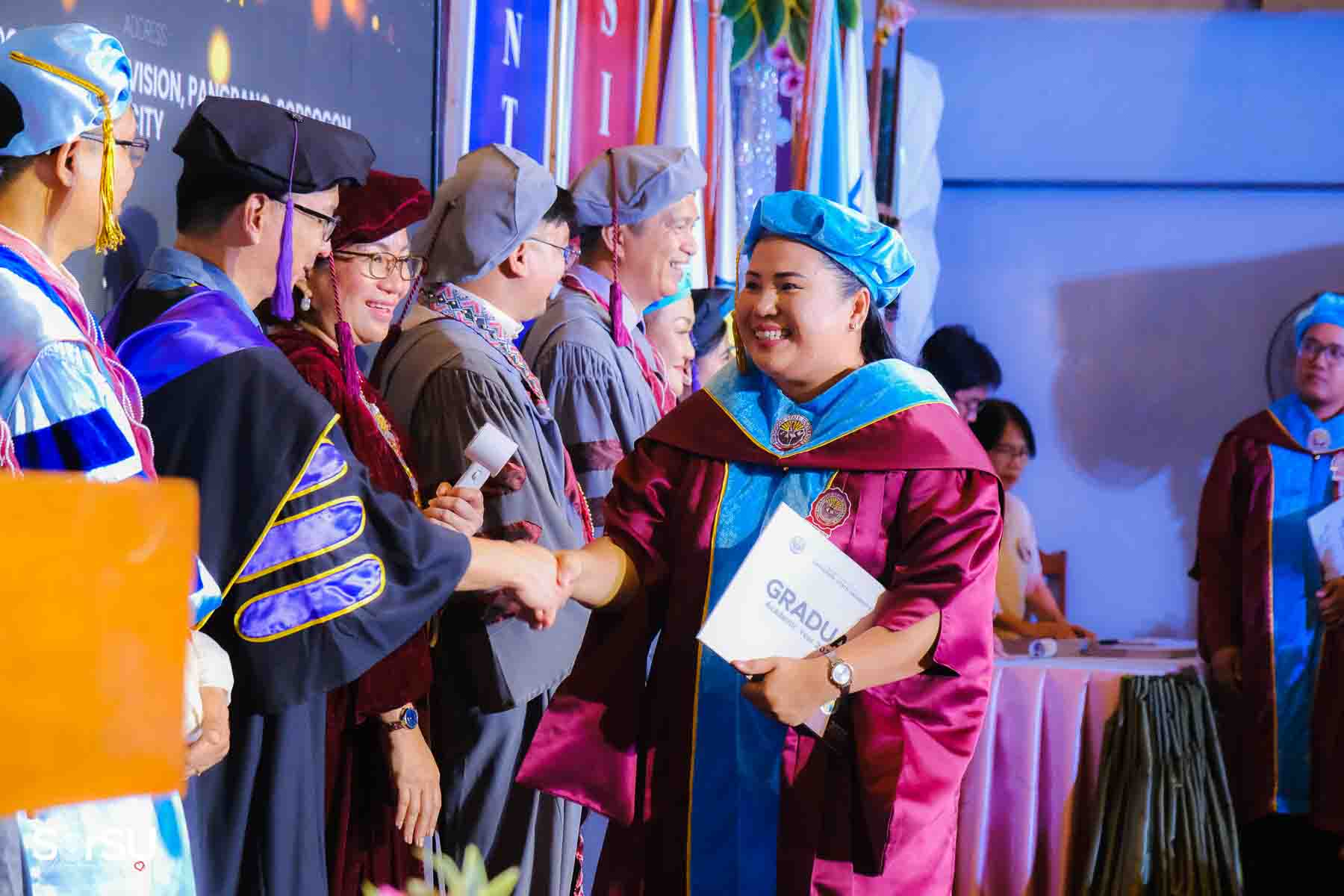 The ceremony opened with the traditional academic processional, followed by the singing of the Philippine National Anthem and a doxology. One of the program’s highlights was the Imposition of Hoods, where parents or spouses placed academic hoods on the candidates, indicating the completion of their graduate programs.