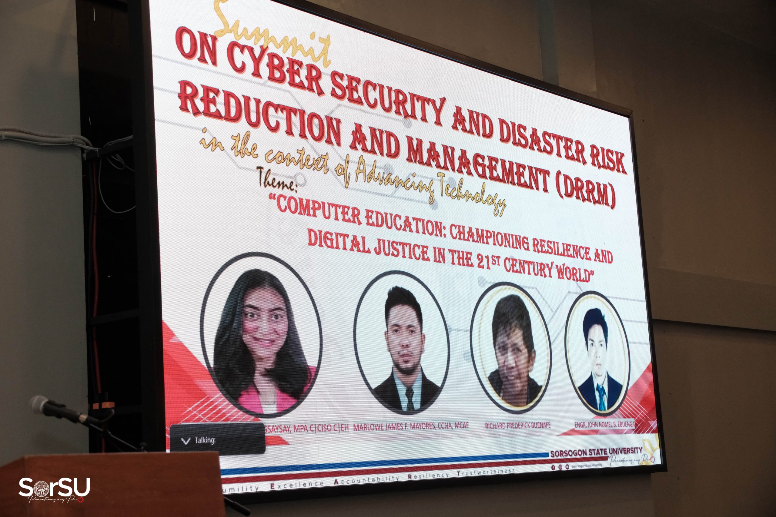 Bearing the theme, “Computer Education: Championing Resilience and Digital Justice in the 21st Century World,” Sorsogon State University – Graduate School (SorSU-GS) is presently organizing a one-day activity called ‘Summit on Cyber Security and Disaster Risk Reduction and Management (DRRM) in the context of Advancing Technology’ today, May 10, 2024, at the SorSU Audio-Visual Hall, Sorsogon City Campus.