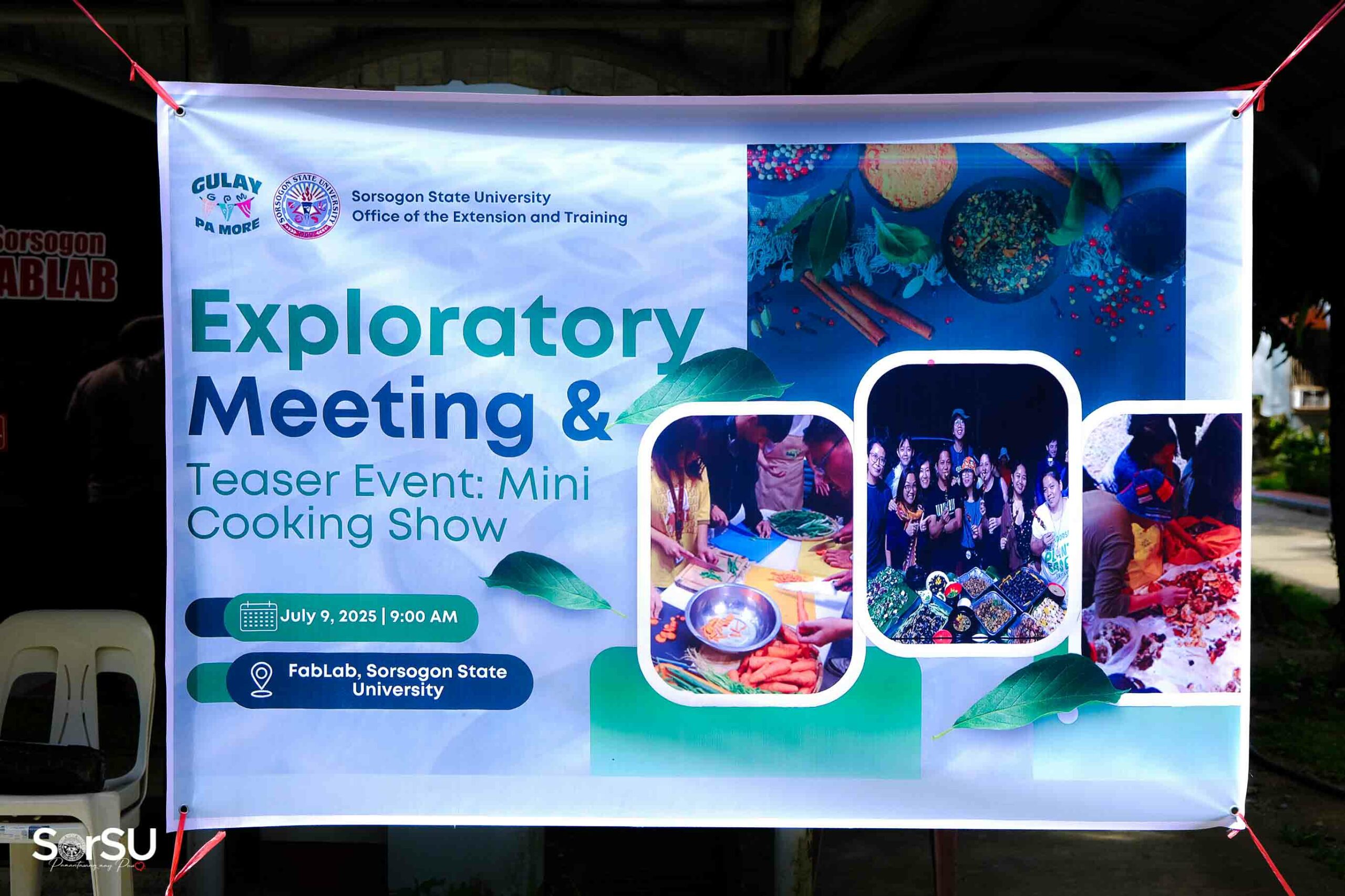 Sorsogon State University (SorSU)-Office of the Extension and Training, in partnership with Gulay Pa More, conducted an Exploratory Meeting and Teaser Event: Mini Cooking Show on July 9, 2025, at the Fabrication Laboratory, Sorsogon State University, Sorsogon City.