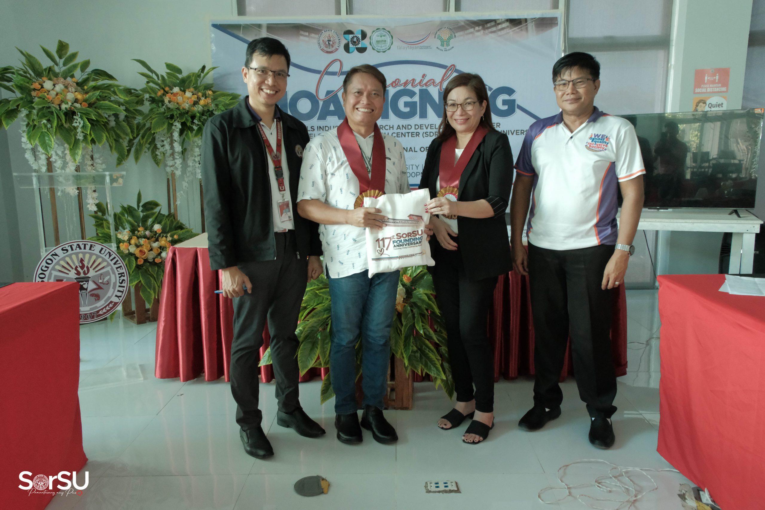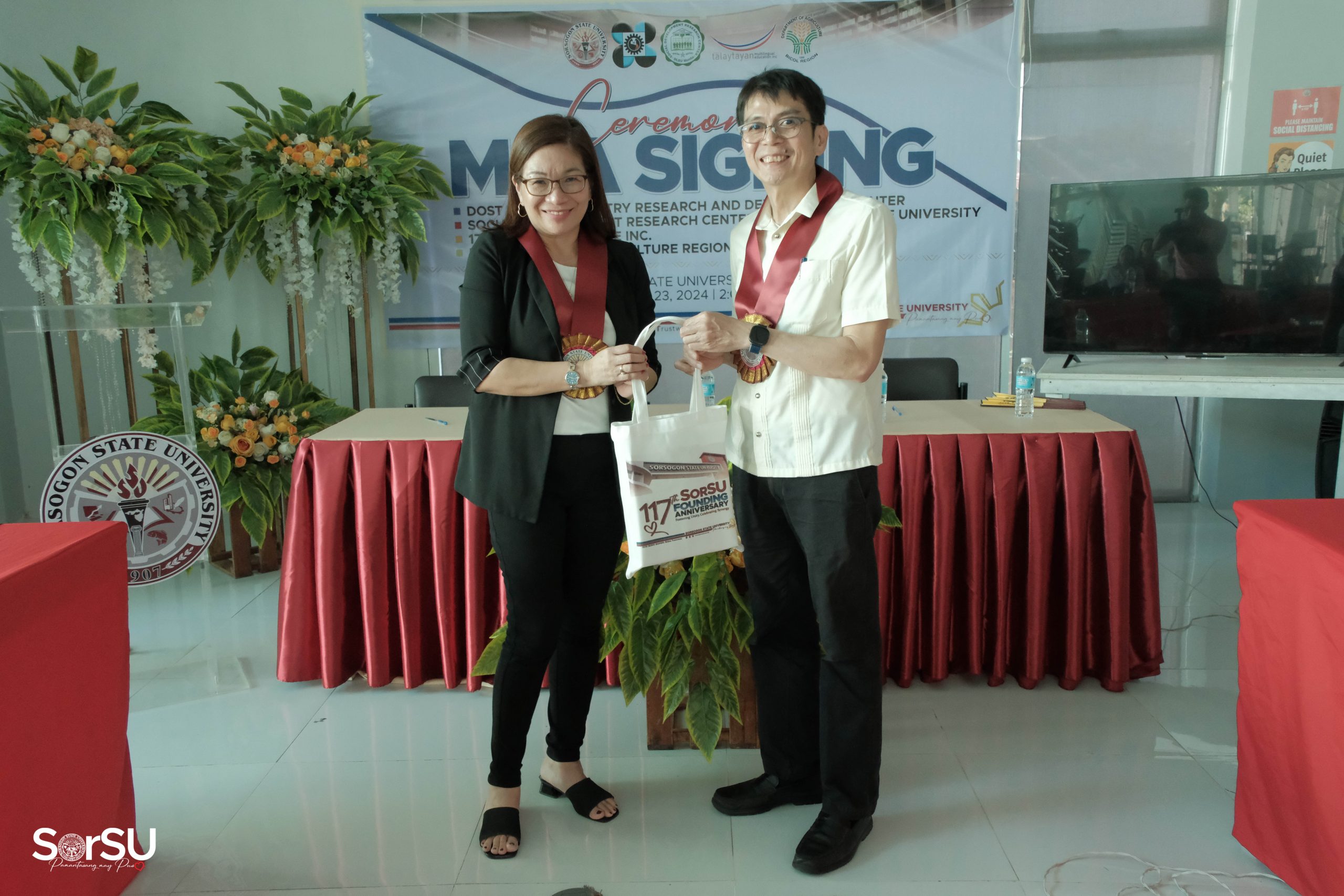 Moreover, Ms. Jezzabie G. Gamis (Head, Intellectual Property and Technology Business Management) facilitated the signing of a MOA between SorSU and the Department of Agriculture Regional Office V.