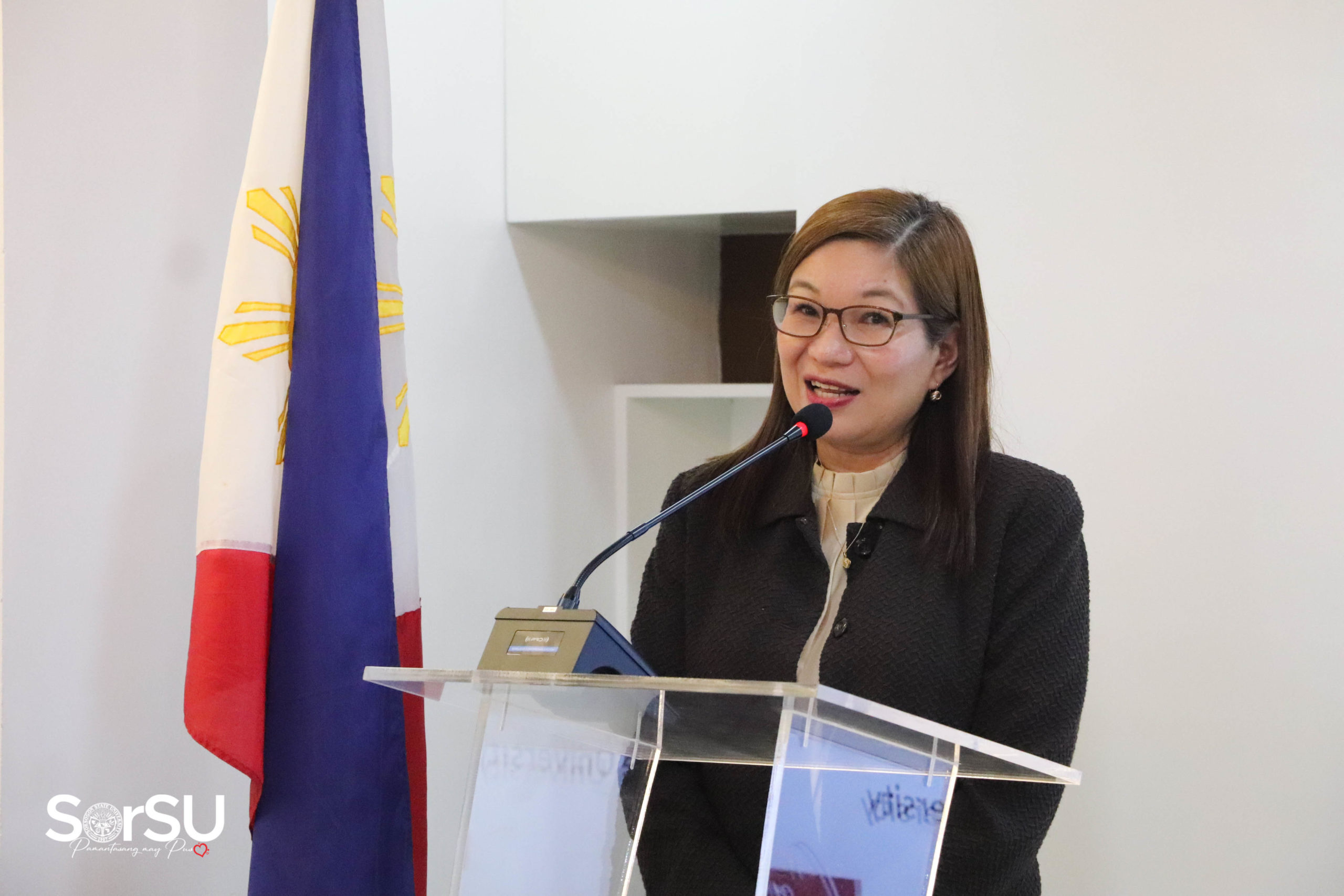 As a response, Dr. De Jesus expressed her appreciation and gratitude to PRB and CoTEd. She stated that she is overwhelmed with where the University is now in terms of internationalization. She stressed that this partnership is another blessing on what the University has accomplished for a year since the beginning of her term. She also emphasized that this is another service to the community and shared her dream that one day, all SorSUeños will say, “𝘚𝘢𝘭𝘢𝘮𝘢𝘵, 𝘚𝘰𝘳𝘚𝘜. 𝘋𝘢𝘩𝘪𝘭 𝘴𝘢𝘪𝘯𝘺𝘰, 𝘯𝘢𝘣𝘢𝘨𝘰 𝘢𝘯𝘨 𝘣𝘶𝘩𝘢𝘺 𝘬𝘰”. She ended her message by highlighting that as long as we serve the community with the heart, that would be enough as it follows the core of the University as the 𝘗𝘢𝘮𝘢𝘯𝘵𝘢𝘴𝘢𝘯𝘨 𝘔𝘢𝘺 𝘗𝘶𝘴𝘰.