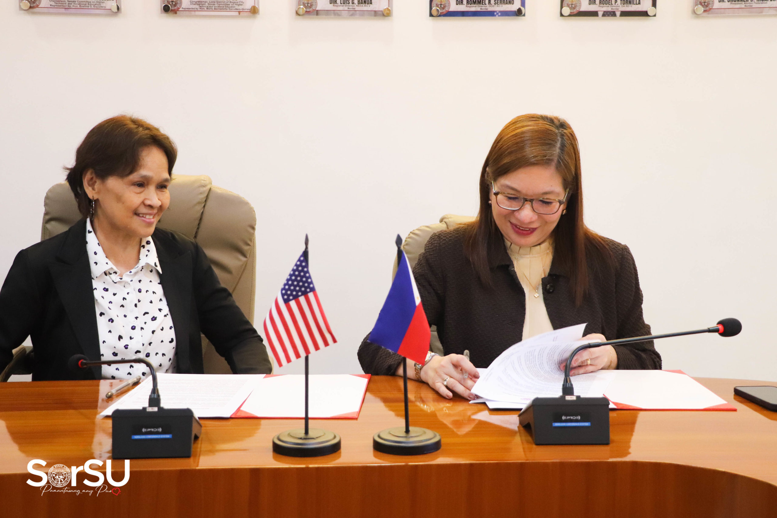 In line with the University’s trajectory to deliver quality international education as it aspires to become globally competitive yet locally responsive institution, a ceremonial signing of Memorandum of Understanding (MOU) between Sorsogon State University (SorSU) and Pinoy Reading Buddies (PRB), Inc., USA was held on July 24, 2023, at the SorSU Board Room, Sorsogon City Campus to mark the partnership for the internalization of Project LOTUS (Localized Tutorial Services), an extension project of the College of Teacher Education.
