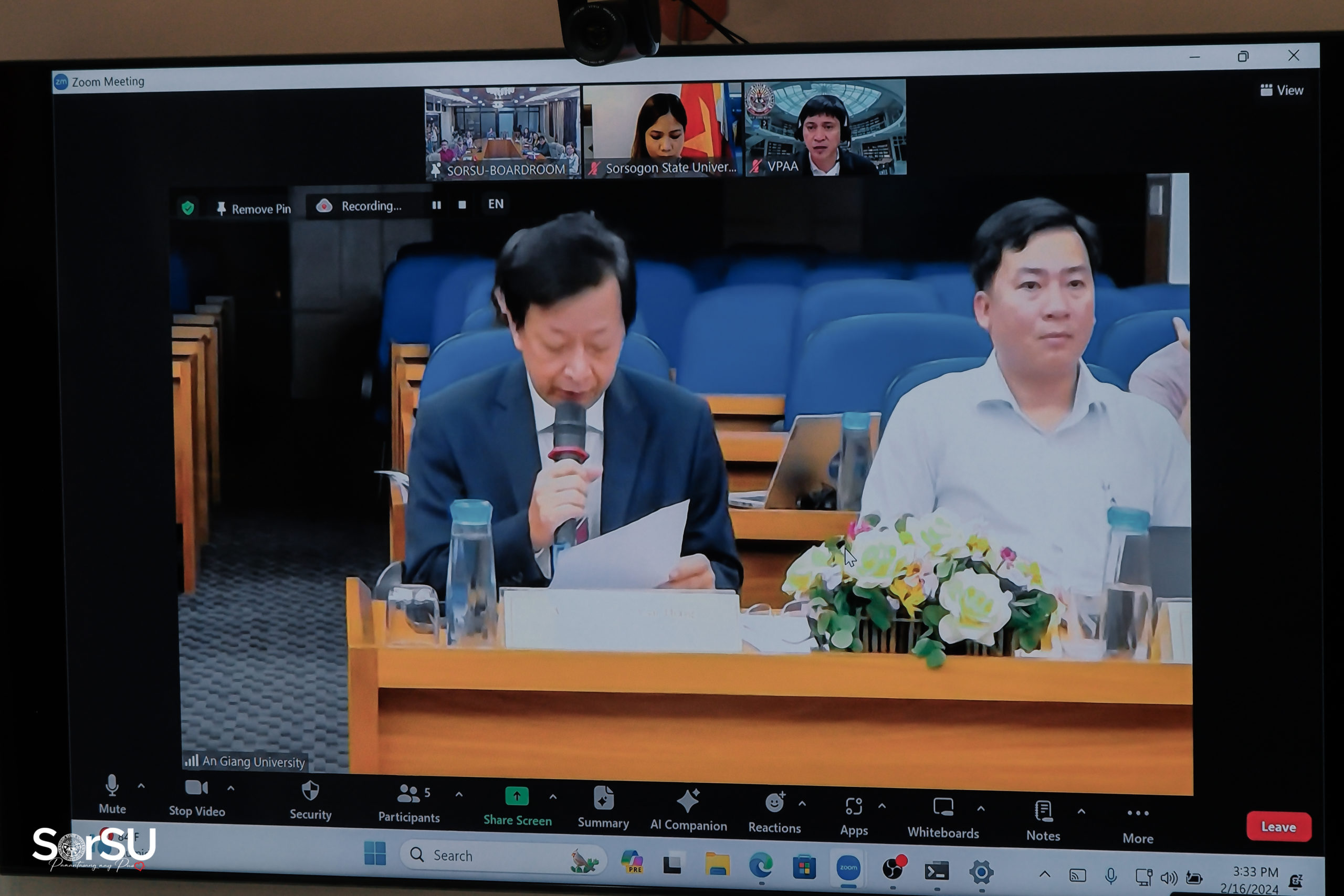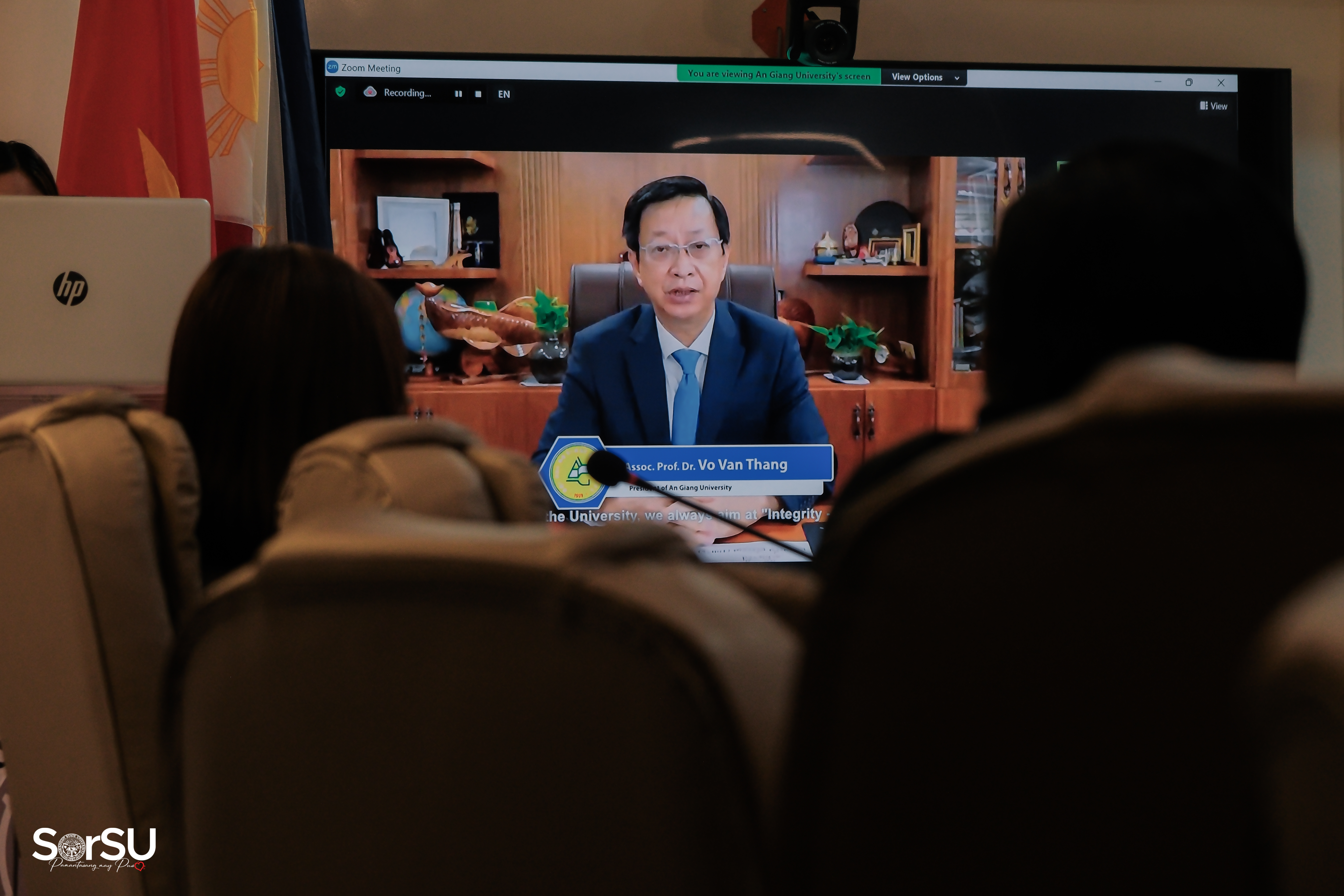 In response, Assoc. Prof. Vo Van Thang, on behalf of An Giang University, likewise extended his cordial welcome to SorSU, while Dr. Nguyen Huu Tri (Head, External Relations Office, AGU, VNU-HCM, Vietnam), during his closing remarks, expressed his gratitude for the promising collaboration of SorSU with their institution.