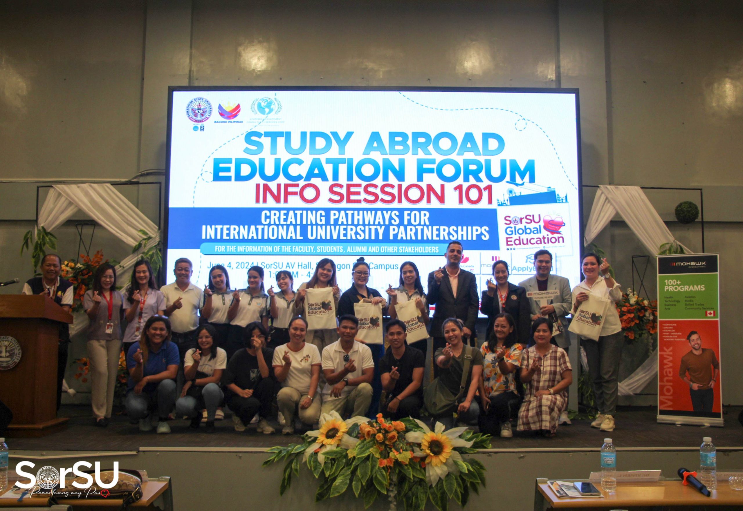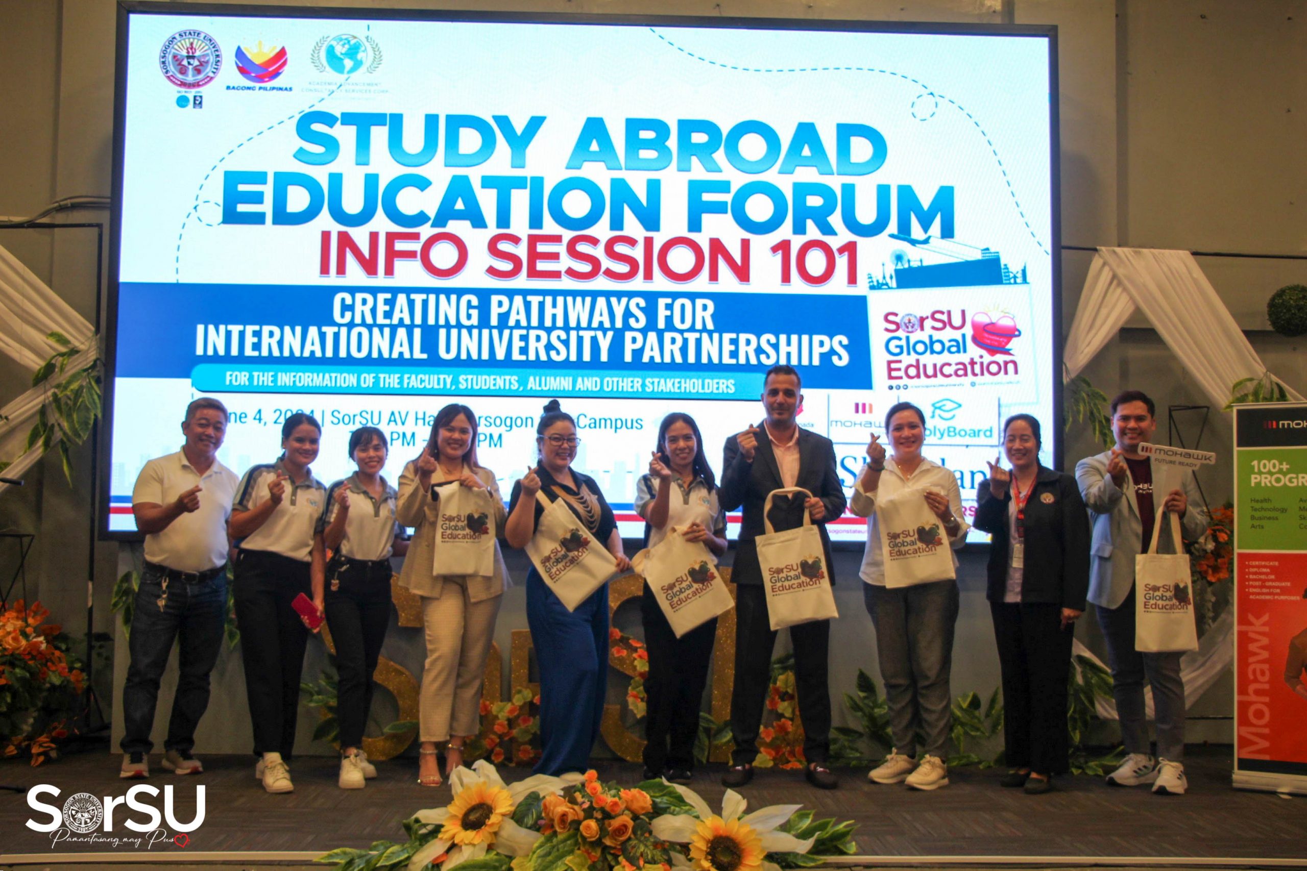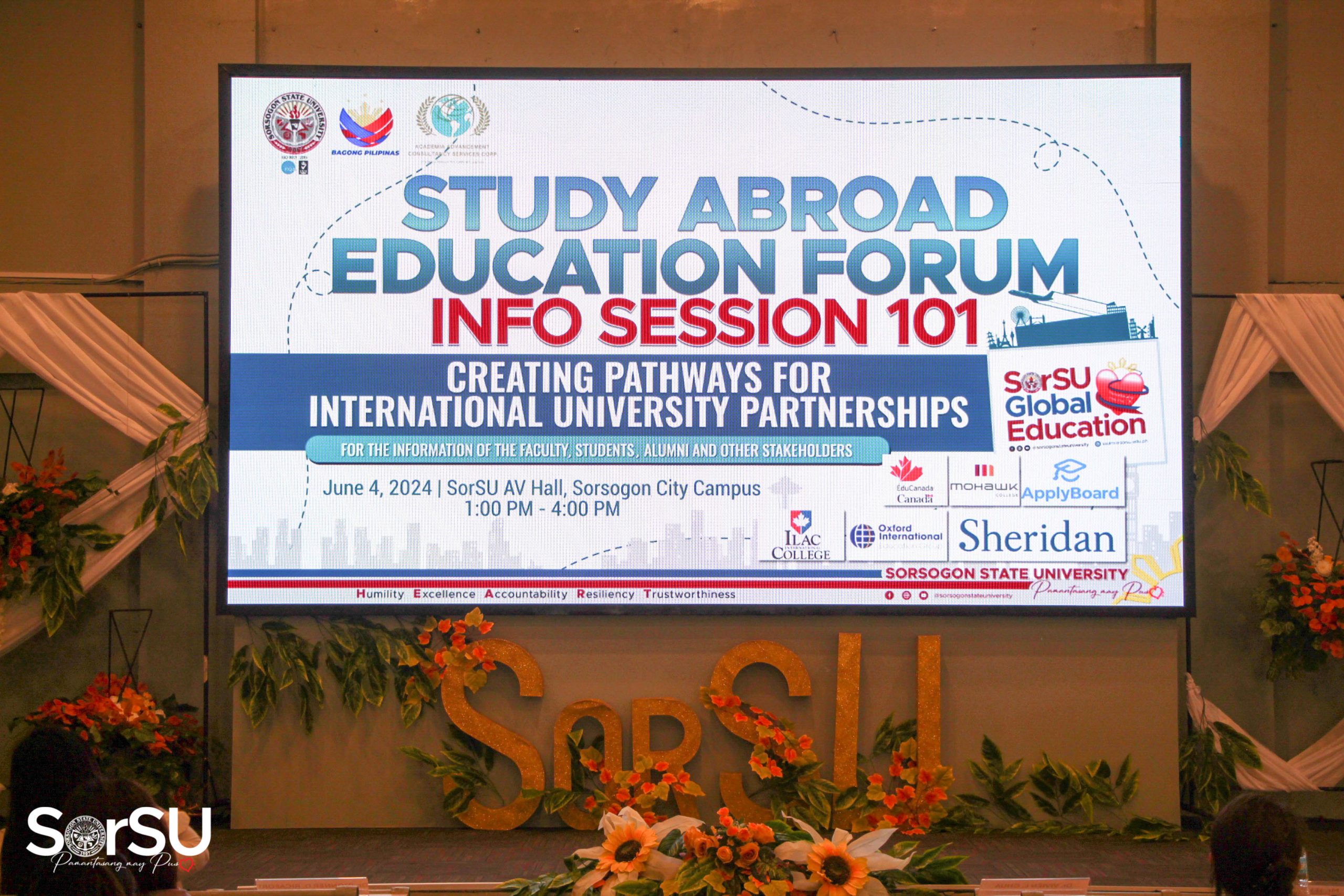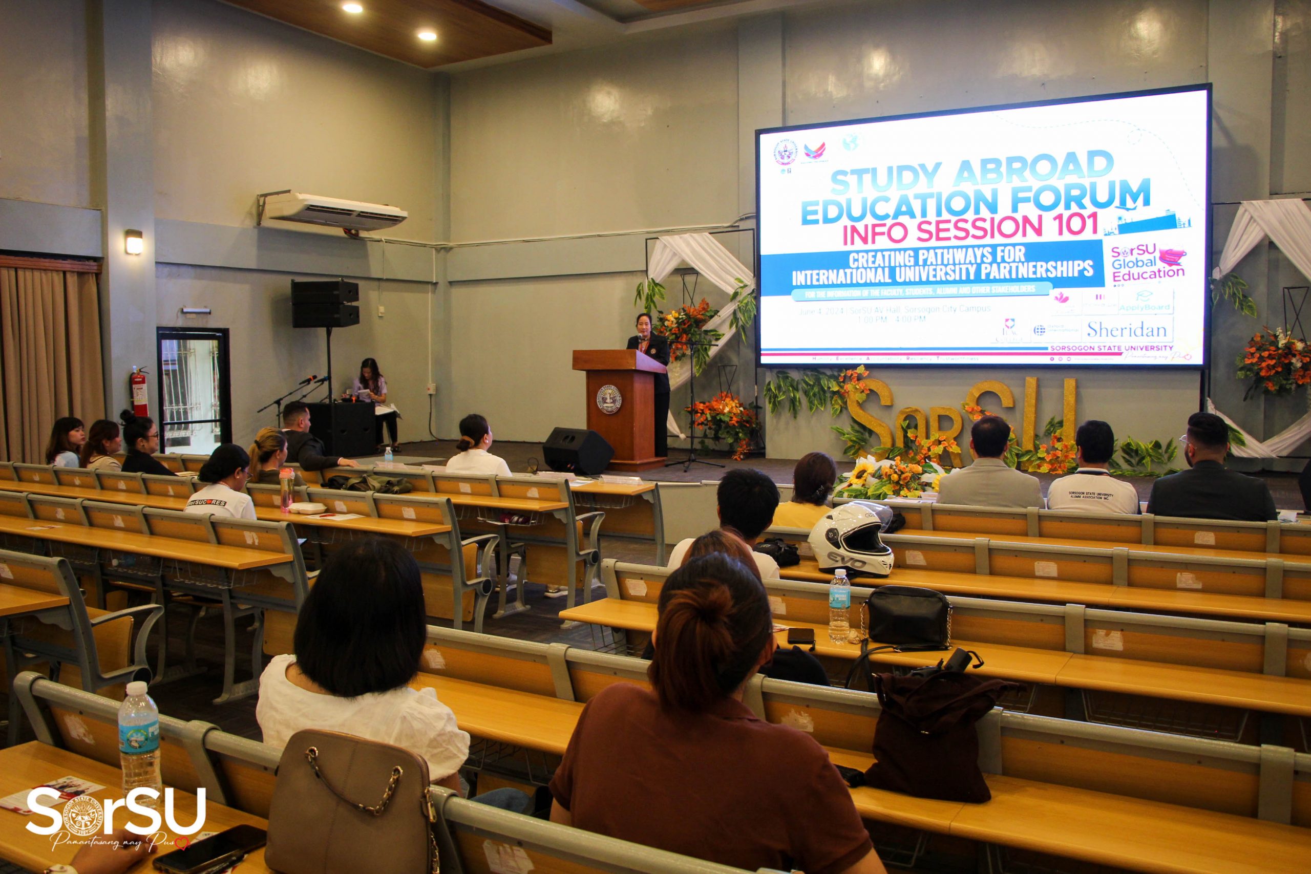 With the aim to leverage the internationalization plans on forging international agreement/s and international exchange programs with international University/ies, the Sorsogon State University – International Relations Office (SorSU-IRO), headed by Dr. Vivien L. Chua (Director, SorSU-IRO), in coordination with Academia Advancement Consultancy Services Corporation (AACS), successfully spearheaded its second Info Session 101: Study Abroad Education Forum 2024 with students, faculty, and other stakeholders as participants, held via hybrid format, featuring both in-person attendance at the SorSU Audio-Visual Hall, Sorsogon City Campus and online participation through Zoom Meeting, last June 4, 2024.