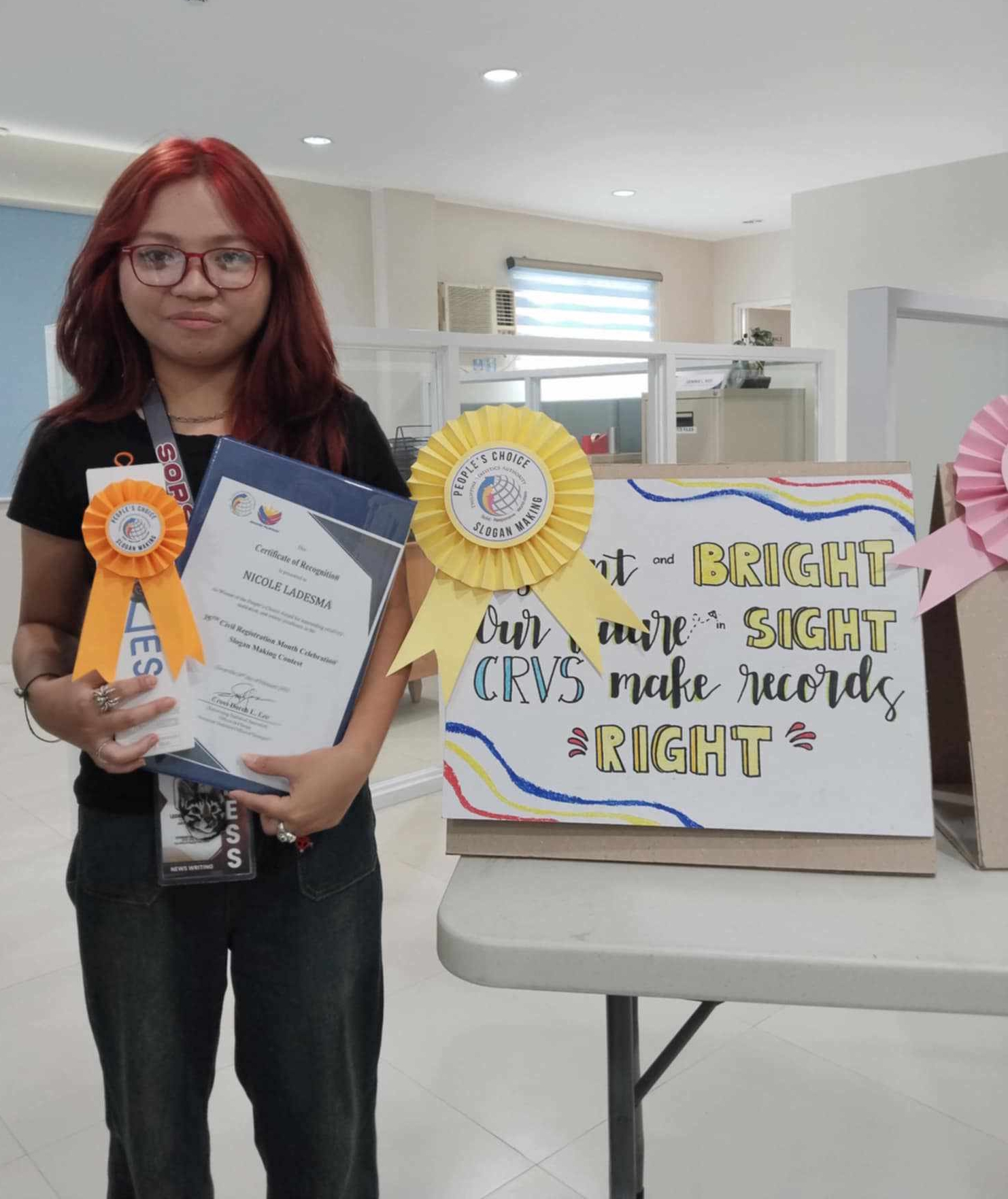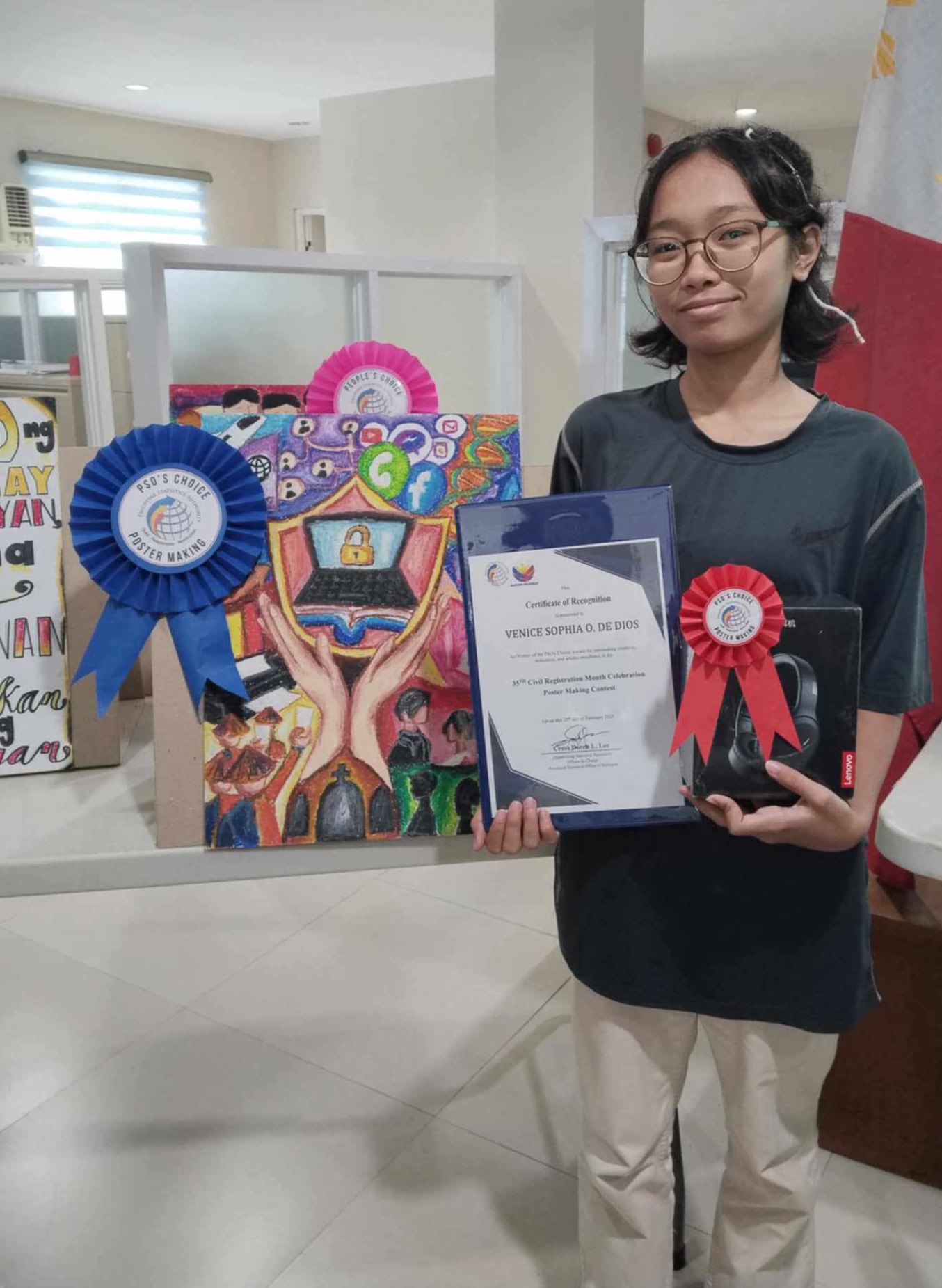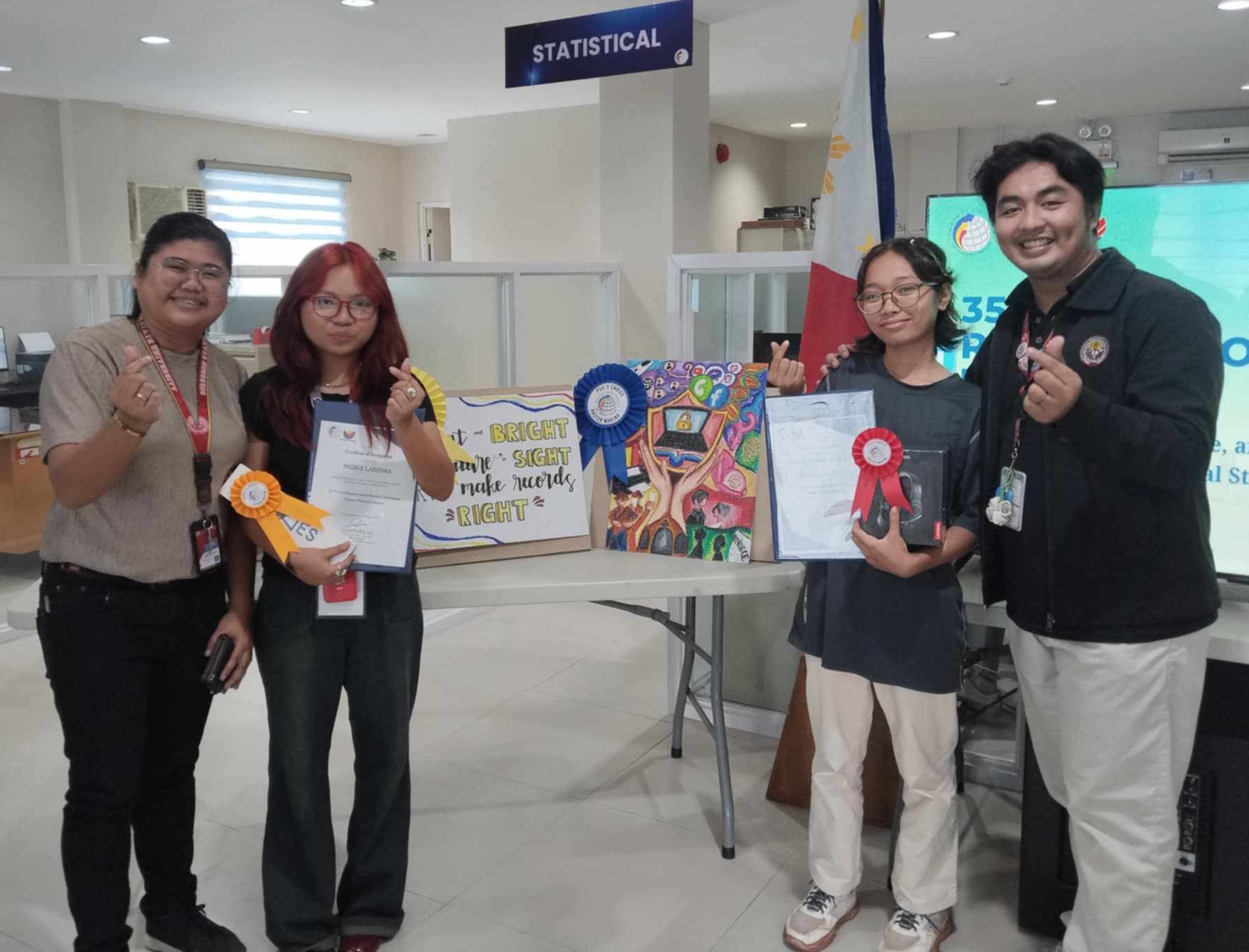 SorSU Lab High students bag awards at PSA Region V Sorsogon’s 35th Civil Registration Month event — De Dios wins PSO’s Choice Award in poster-making contest, Ladesma clinches People’s Choice Award in slogan-making contest