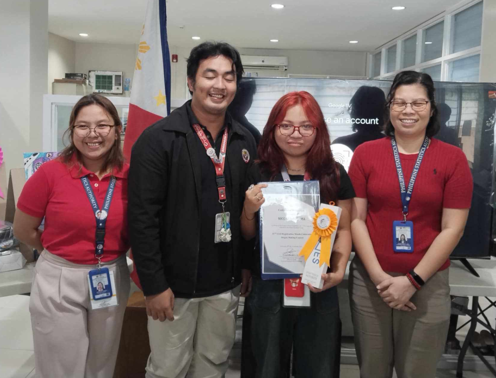 During the awarding ceremony on February 28, 2025, the SorSU-LHS student-winners were accompanied by their coach, Mr. Christian G. Fugen, and Ms. Shayne Kate A. Gozo (University Coordinator, Culture and Arts), at the PSA Sorsogon Provincial Statistical Office, Gaisano Capital, Sorsogon City.