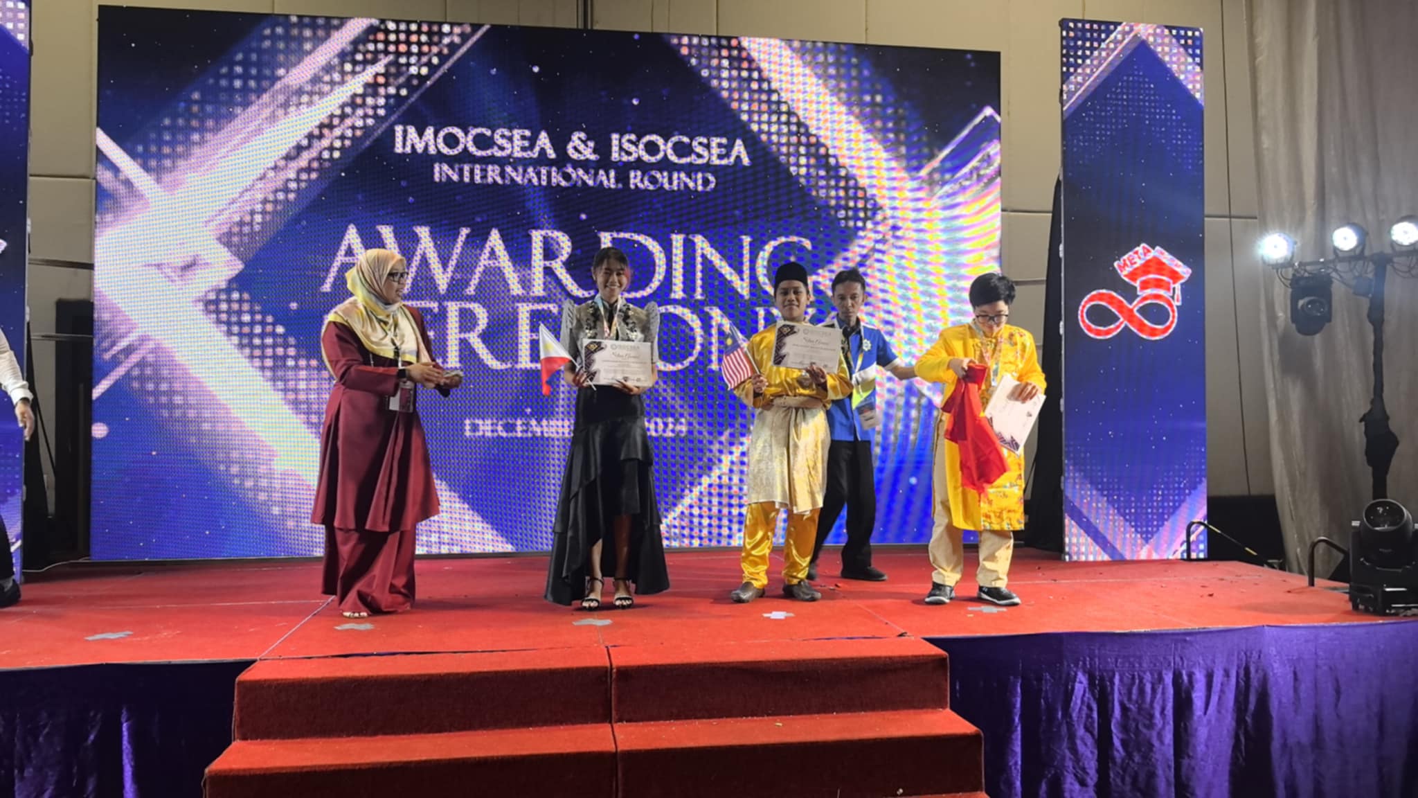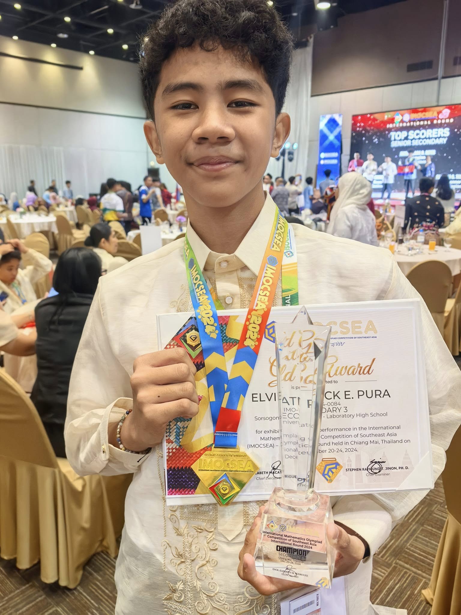 Marking another historic achievement at the international academic competition, Sorsogon State University – Laboratory High School (SorSU-LHS) impressively delivered exemplary performances in the recently concluded International Mathematics Olympiad Competition of Southeast Asia (IMOCSEA) and International Science Olympiad Competition of Southeast Asia (ISOCSEA) International/Final Rounds at the Chiang Mai Grandview Hotel and Convention Center, Chiang Mai, Thailand on December 20-24, 2024, with LHS students successfully bringing home two (2) golds, two (2) silvers, and one (2) bronzes, as well as bagging three (3) silvers and seven (7) bronzes, respectively.