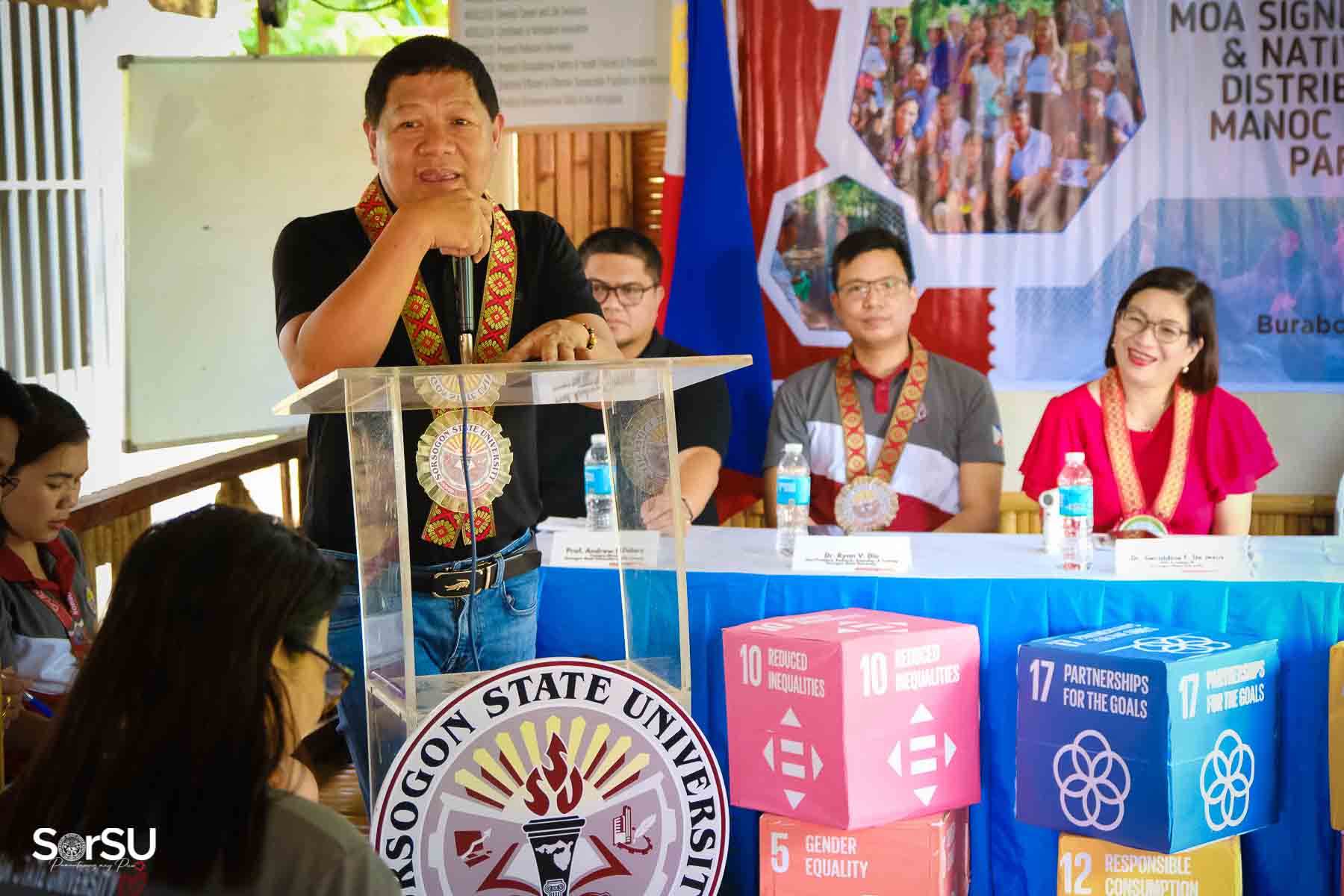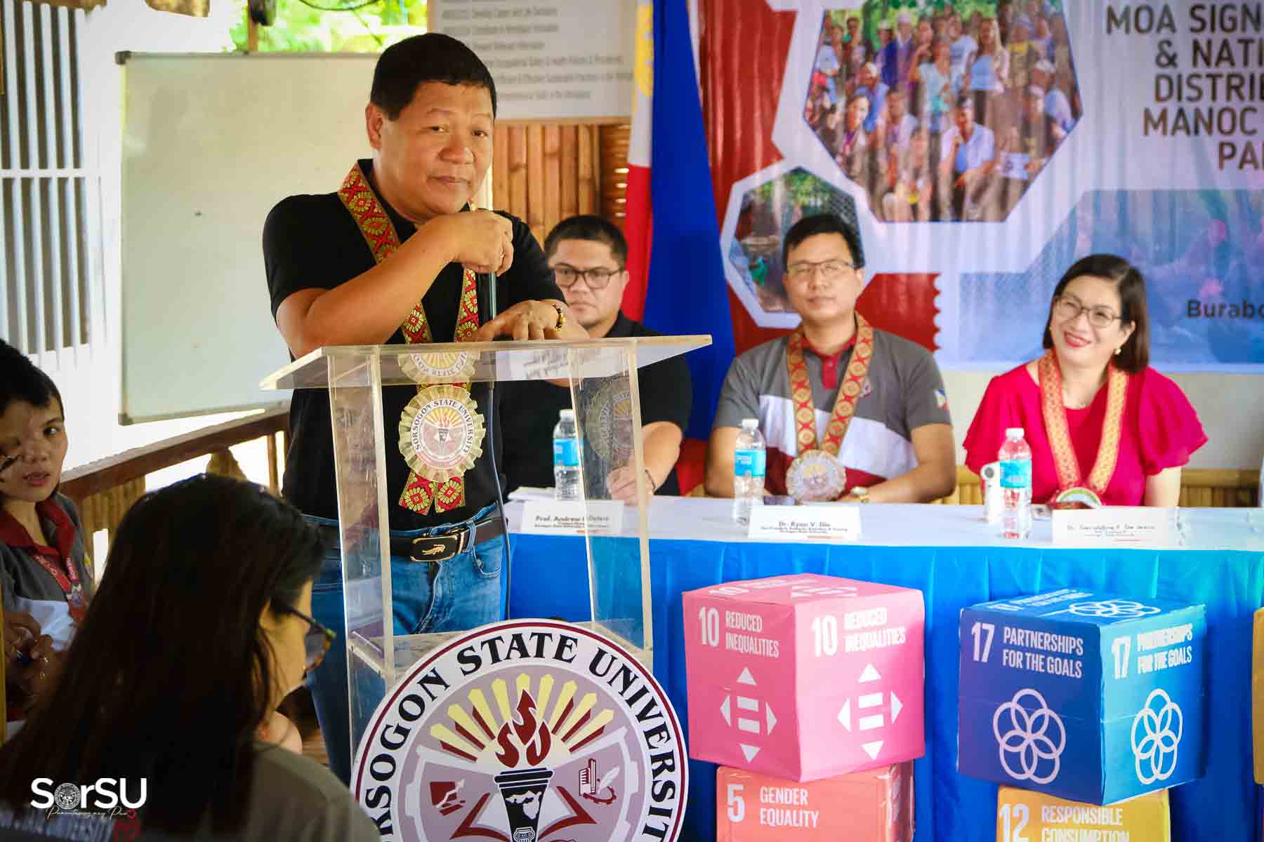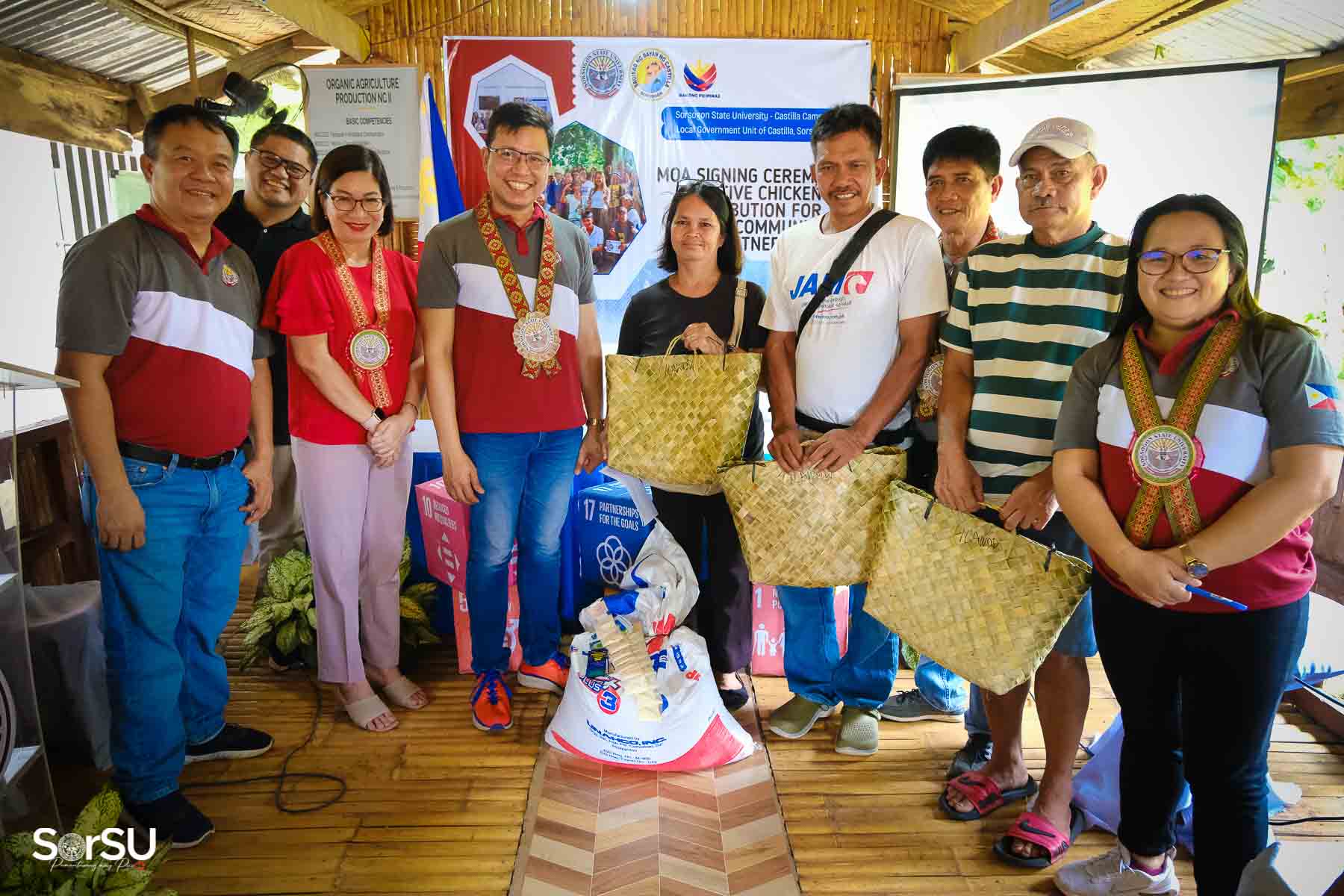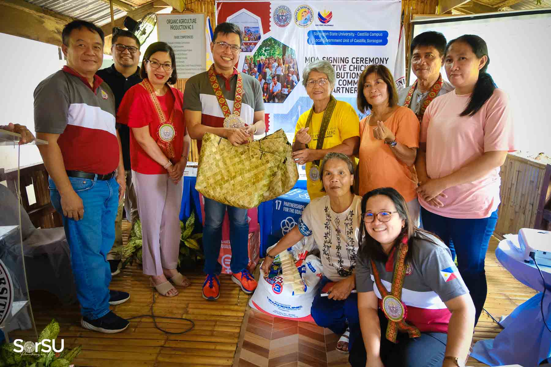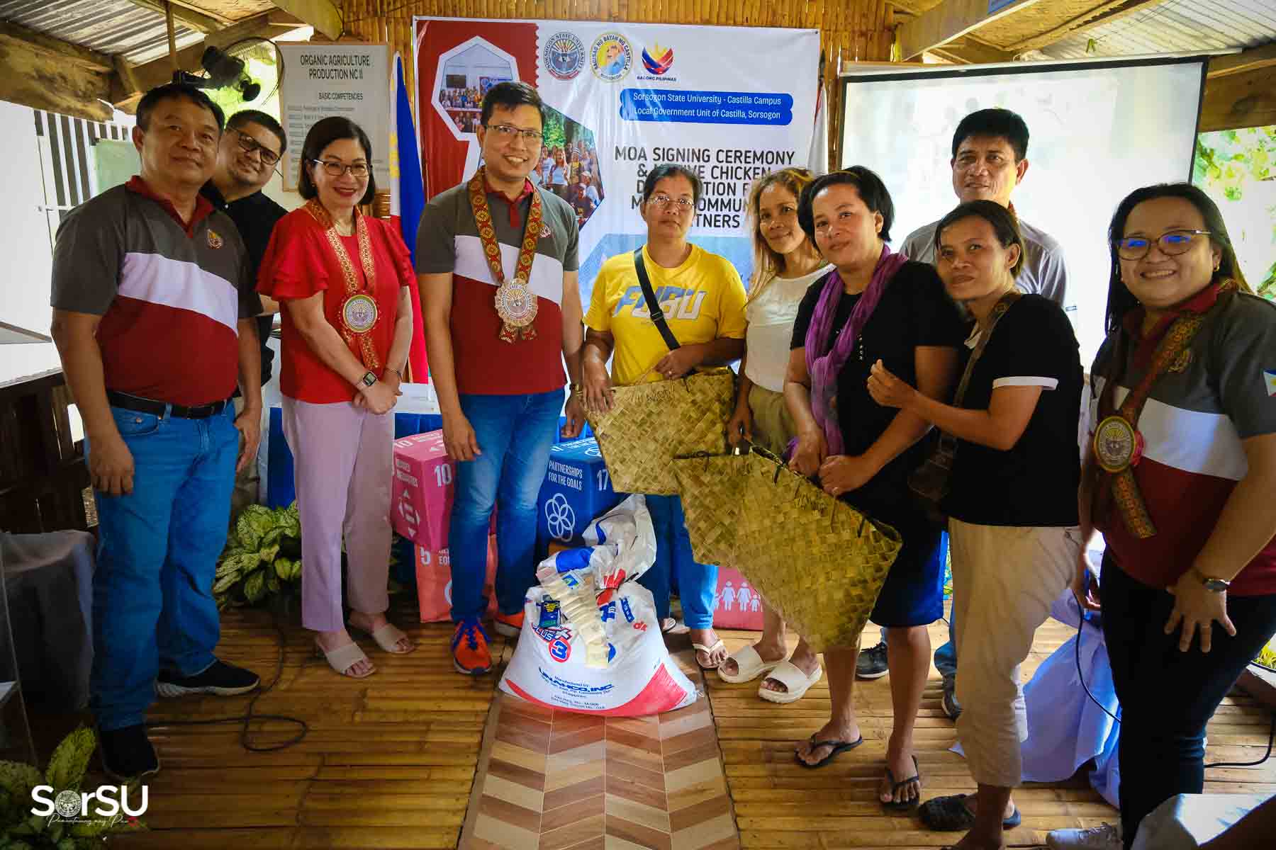 On July 4, 2025, Sorsogon State University (SorSU) reaffirmed its commitment to sustainable development through the ceremonial signing of a Memorandum of Agreement (MOA) with the Local Government Unit (LGU) of Castilla and MANoC Community Partners. The event, held at Burabod, Castilla, Sorsogon, also included the distribution of native chickens to MANoC Community Partners to help create new livelihood opportunities.