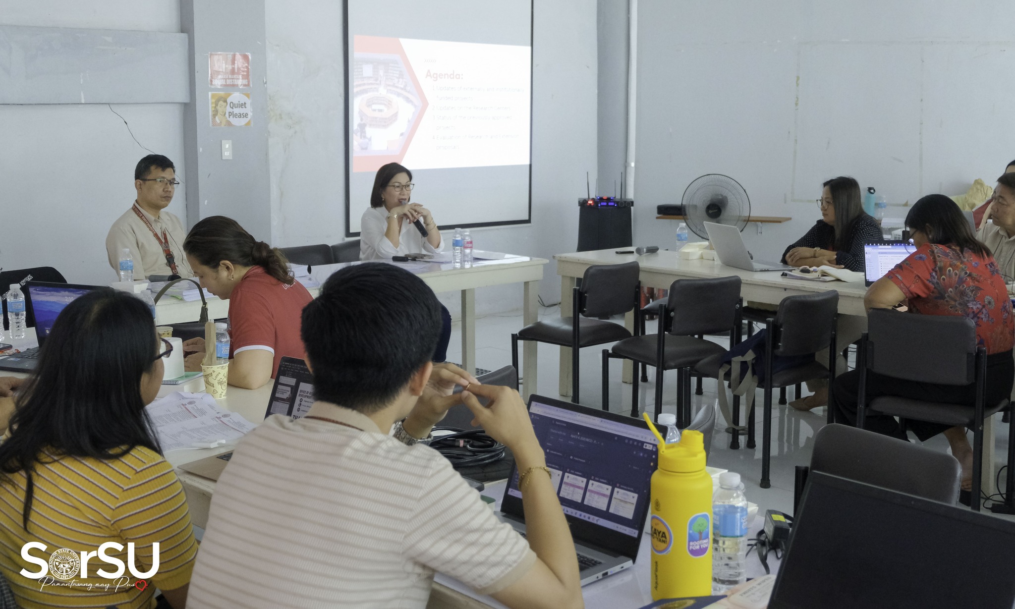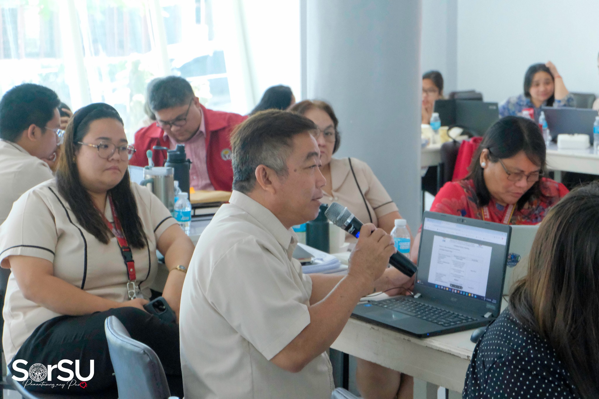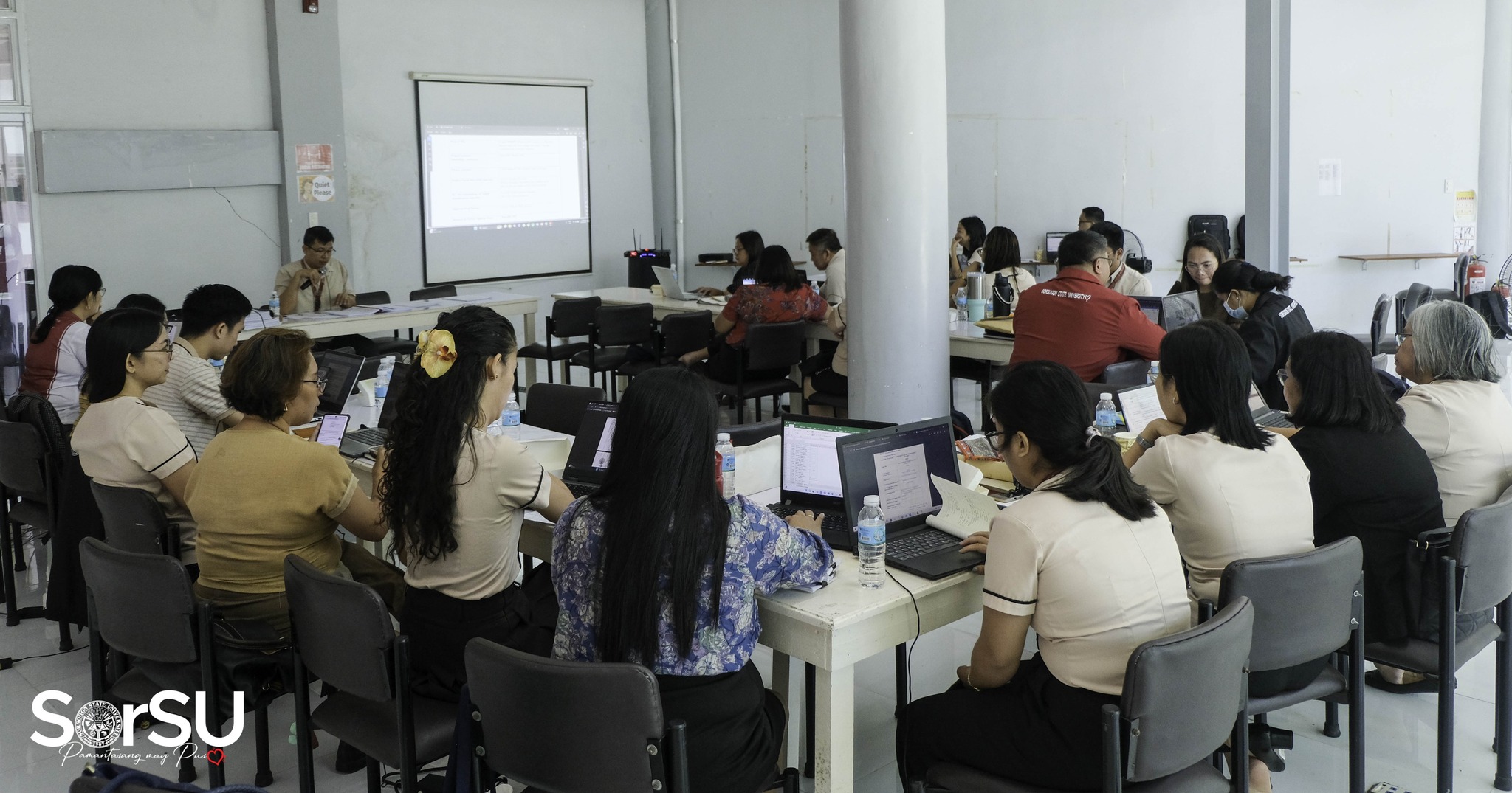 Day 1 was attended by Prof. Andrew F. Detera (Campus Director, Castilla Campus), Dr. Susan S. Janer (Dean, Graduate School), Dr. Leny D. Berdin (Chief Administrative Officer-Finance Division), Dr. Ma. Sylisa J. Estur (Chief Administrative Officer-Administrative Division), Ms. Rosalie D. Labitag (Director, Finance), Engr. Ivy Rose B. Gonzales (Director, Research Development), Dr. Ana Cristina G. Fortes (Director, Extension and Training Services), Prof. Riche P. Duran (Director, Gender and Development), deans, unit heads, R&D/E&T coordinators, and other SorSU key personnel. (SorSU PIO)