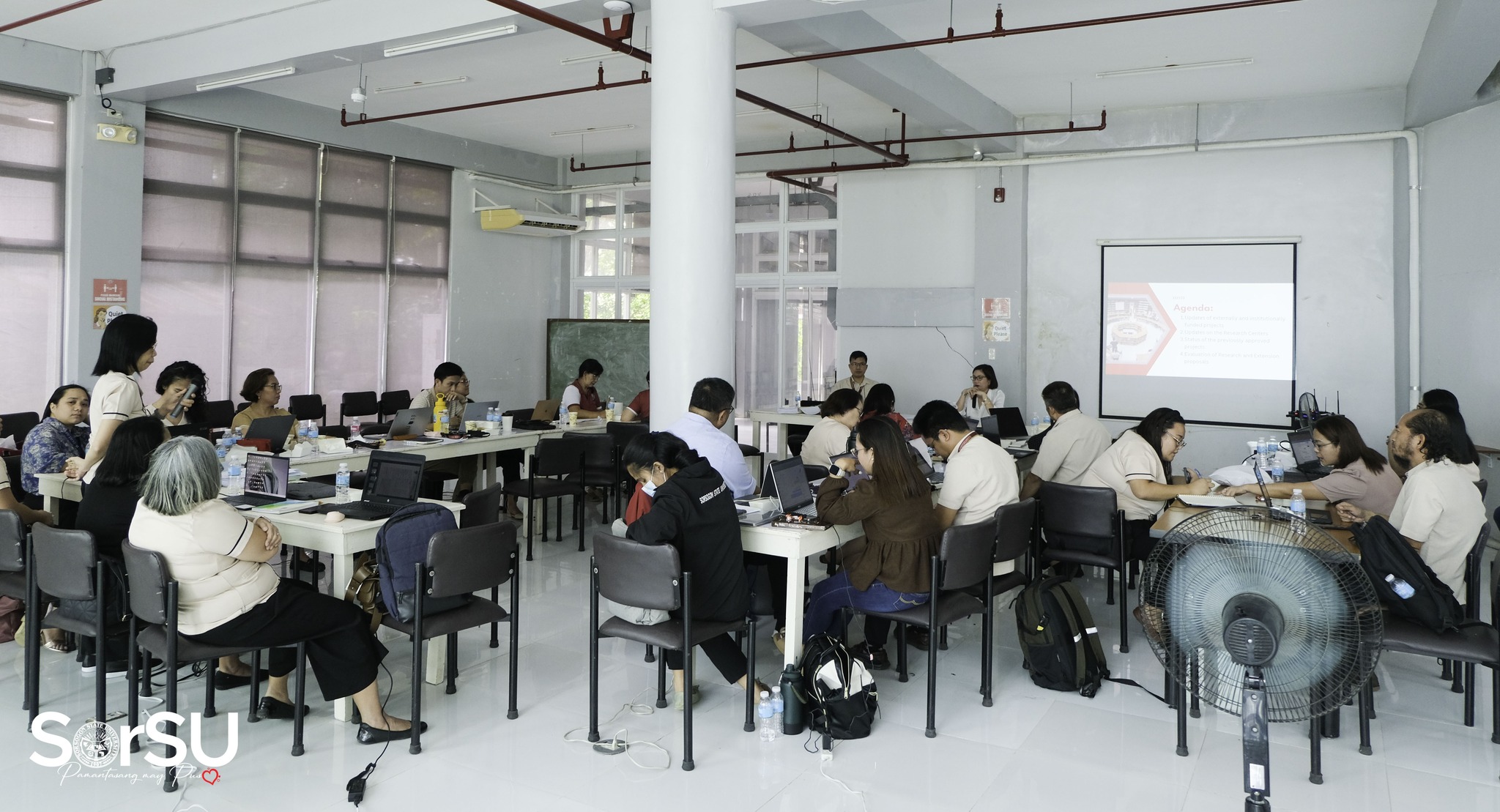 Presided by SUC President III, Dr. Geraldine F. De Jesus, and Dr. Ryan V. Dio (Vice President for Research, Extension and Training), Sorsogon State University (SorSU), through the Office of Research, Extension and Training, is currently conducting a two-day 1st and 2nd Quarter Research and Extension Council (RECO) Evaluation Meeting from April 3-4, 2025, at the SorSU E-Library, Sorsogon City Campus.