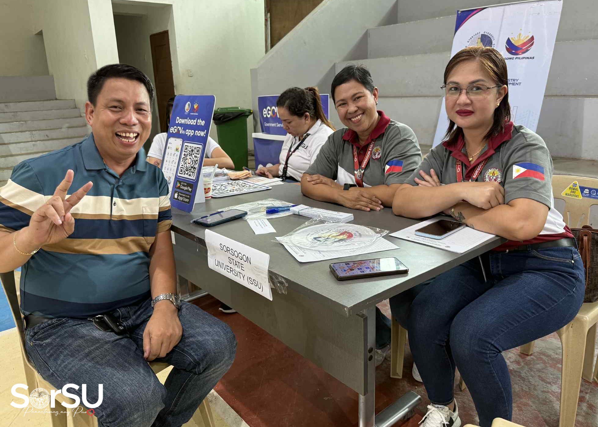 Ms. Myrna D. Leoncito (Director, SorSU Public Information Office), Ms. Marinel Soriano (Head, SorSU Scholarship and Financial Assistance Services Office), and Ms. Cheryl Deri (Information Officer II, SorSU PIO) represented Sorsogon State University (SorSU) during the Information and Serbisyo Caravan. The team engaged with participants, addressing inquiries and providing information on scholarships, admissions, and other academic matters.