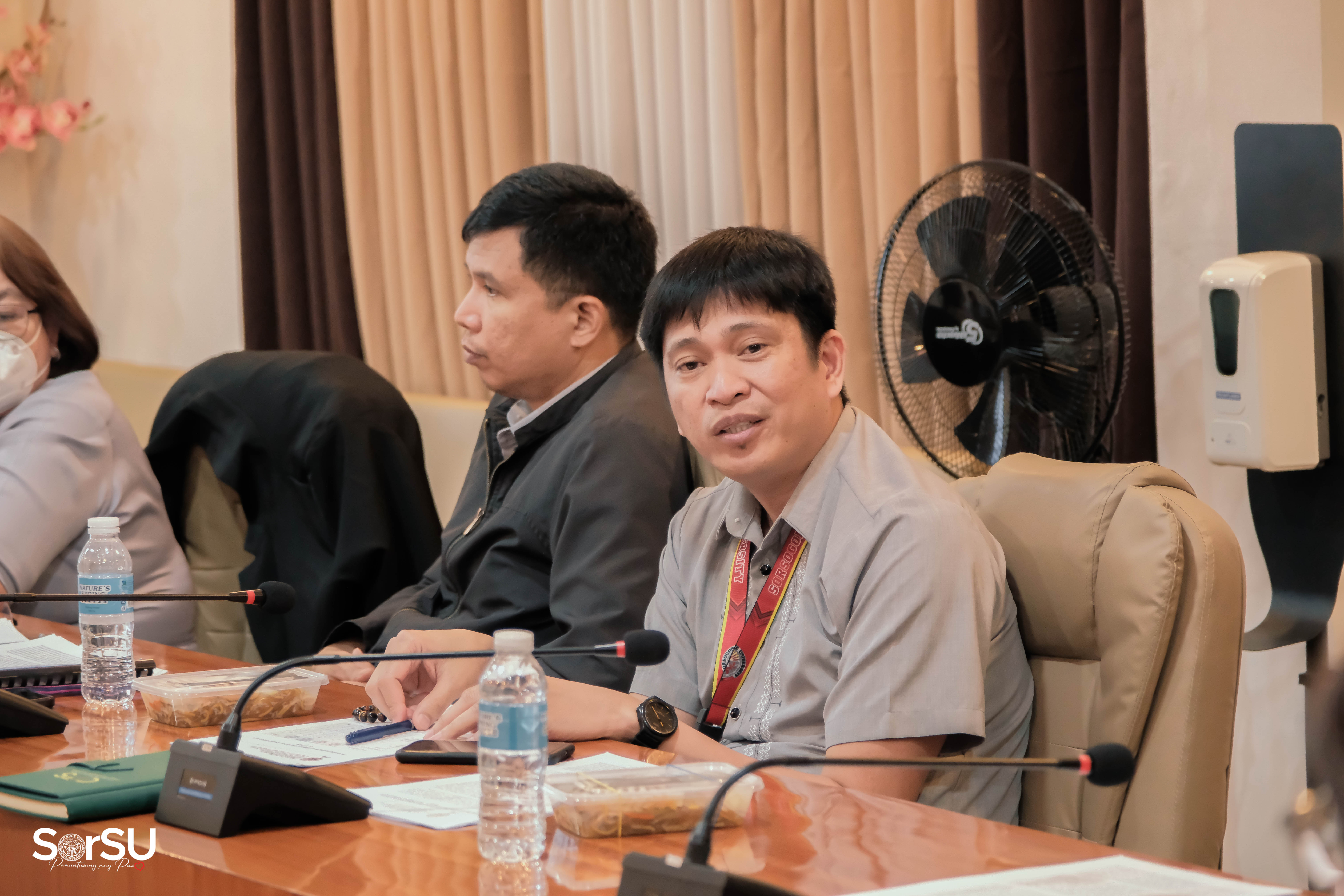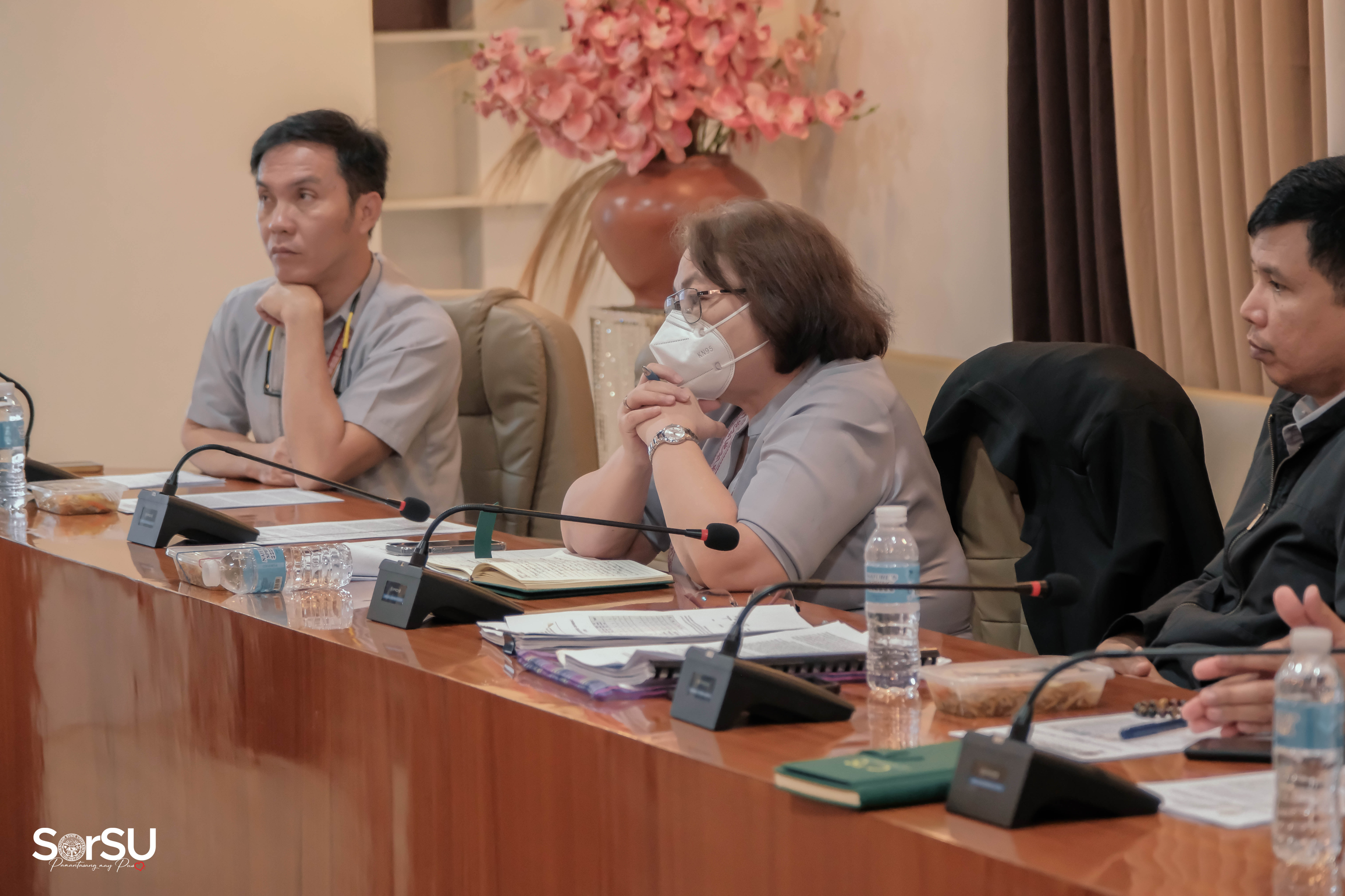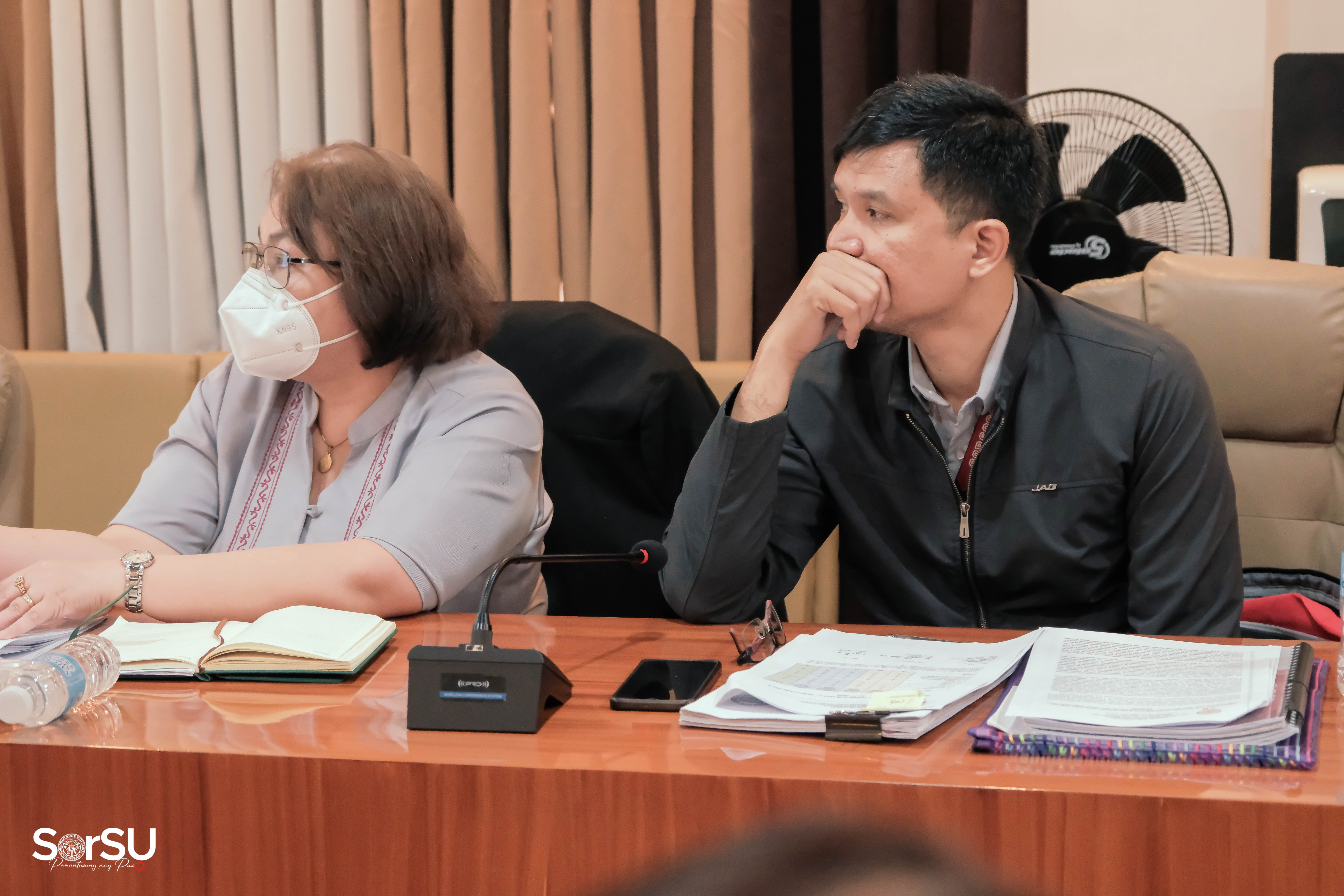 In attendance during the meeting were PMT Vice Chairpersons: Dr. Jhonner D. Ricafort (VPAA), Dr. Ryan V. Dio (VPRET), Mr. Gerald E. Fulay, JD (VPAF); PMT Secretary: Dr. Catherine A. De Castro (Director, Planning Management Office); PMT Members: Dr. Telesforo D. Escoto (Campus Director, Sorsogon City), Dr. Susan S. Janer (Dean, Graduate School), Dr. Leny D. Berdin (Chief Administrative Officer-Finance Division), Dr. Perry F. Carpio (President, SorSU SSC-Faculty Association), Prof. Abner L. Dellosa (Head, HRMDO), and Mr. Arvin B. Pura (President, Non-Teaching Personnel Association). (SorSU PIO)