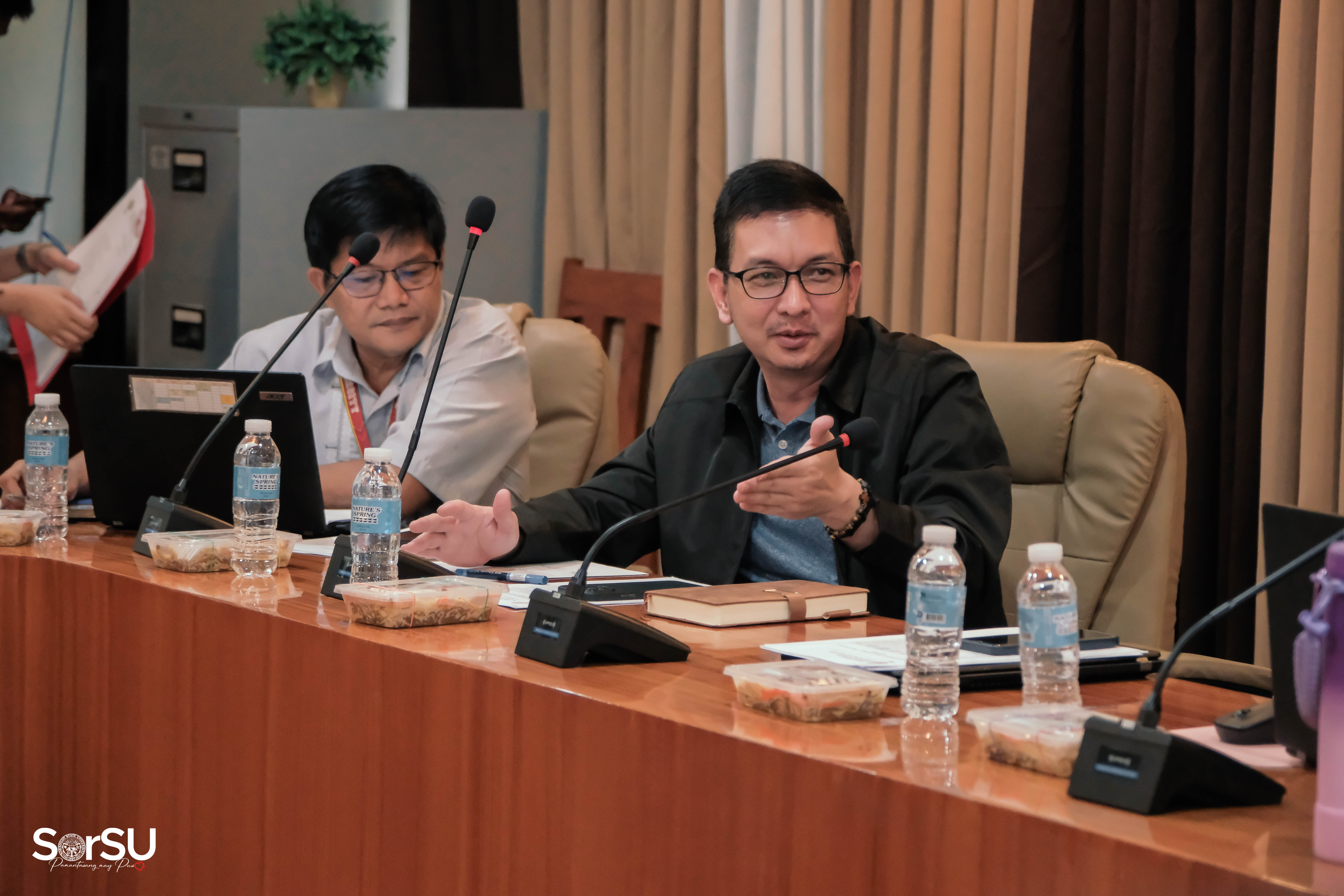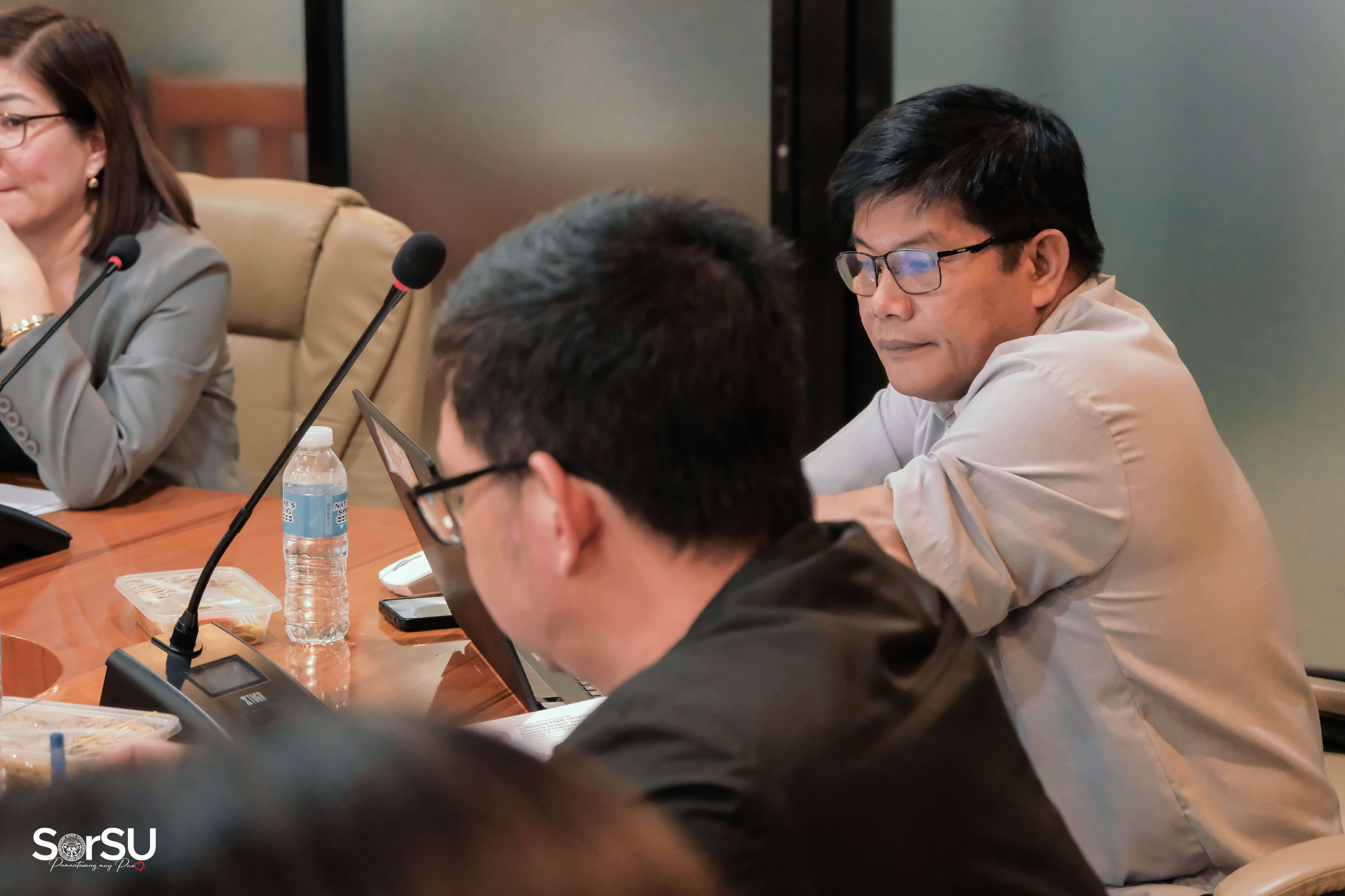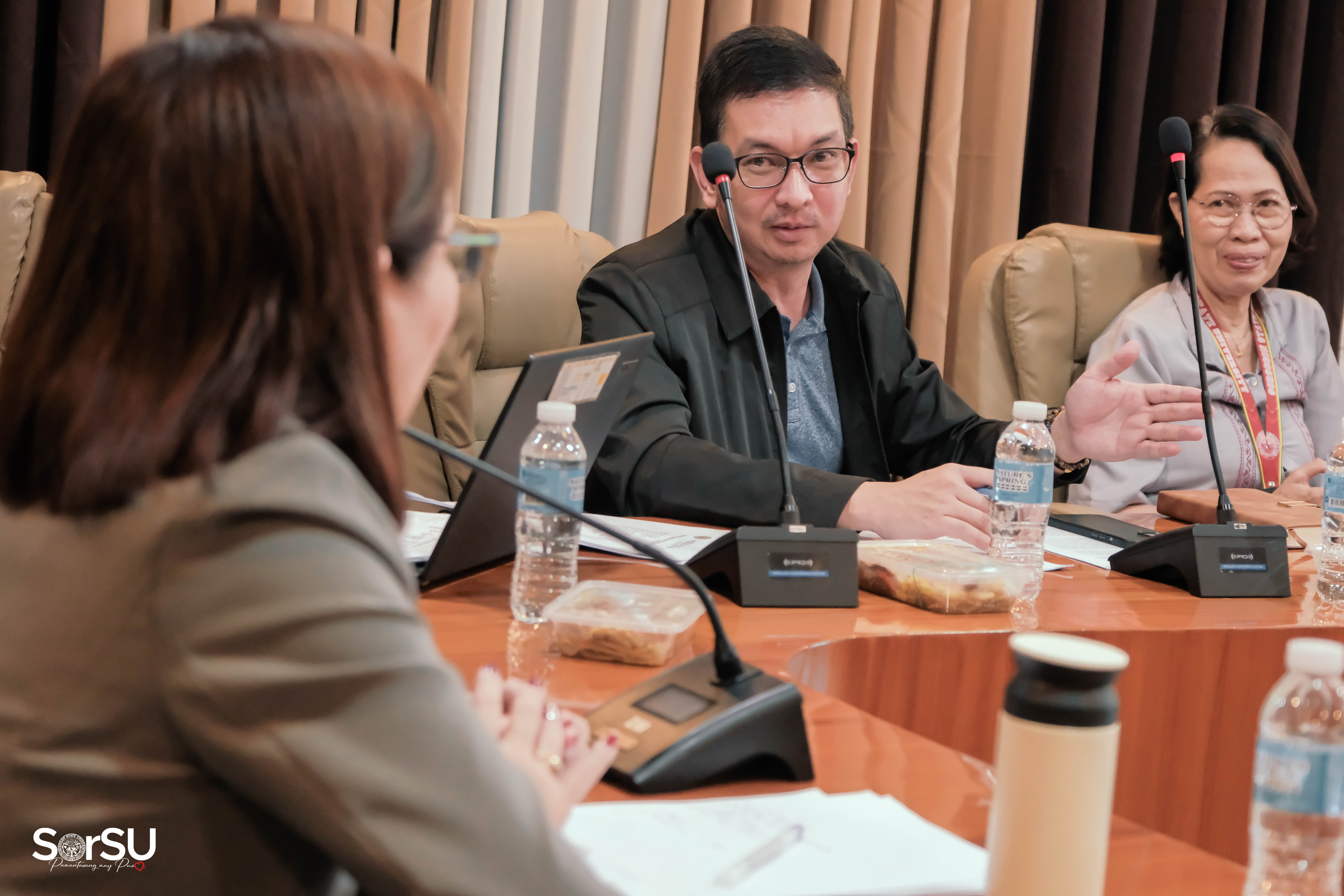 In attendance during the meeting were PMT Vice Chairpersons: Dr. Jhonner D. Ricafort (VPAA), Dr. Ryan V. Dio (VPRET), Mr. Gerald E. Fulay, JD (VPAF); PMT Secretary: Dr. Catherine A. De Castro (Director, Planning Management Office); PMT Members: Dr. Telesforo D. Escoto (Campus Director, Sorsogon City), Dr. Susan S. Janer (Dean, Graduate School), Dr. Leny D. Berdin (Chief Administrative Officer-Finance Division), Dr. Perry F. Carpio (President, SorSU SSC-Faculty Association), Prof. Abner L. Dellosa (Head, HRMDO), and Mr. Arvin B. Pura (President, Non-Teaching Personnel Association). (SorSU PIO)