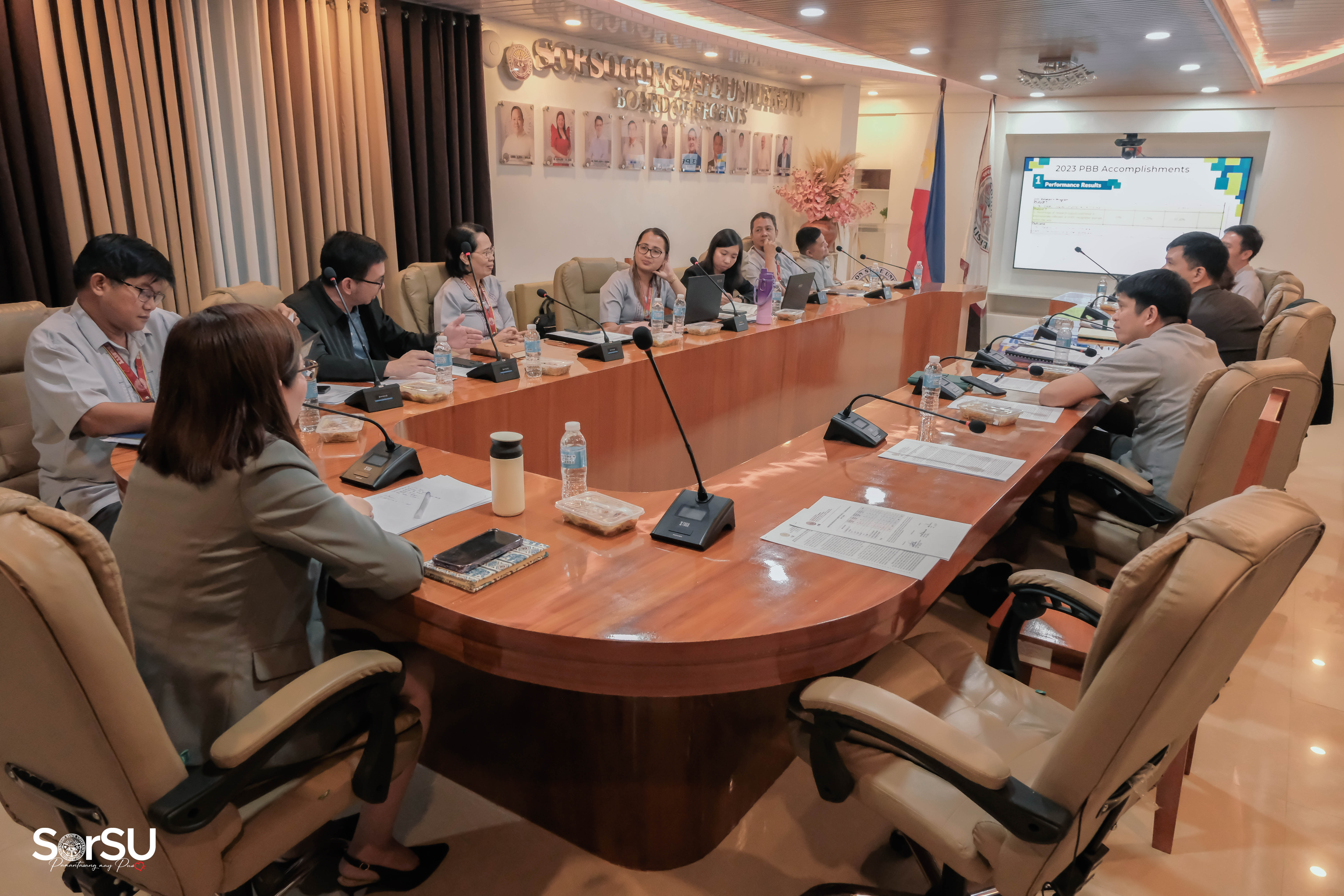 Presided by SUC President III, Dr. Geraldine F. De Jesus (PMT Chairperson), the Performance Management Team (PMT) of Sorsogon State University (SorSU) held its 1st Quarter Meeting for FY 2024 today, April 15, 2024, at the SorSU Boardroom, Sorsogon City Campus.
