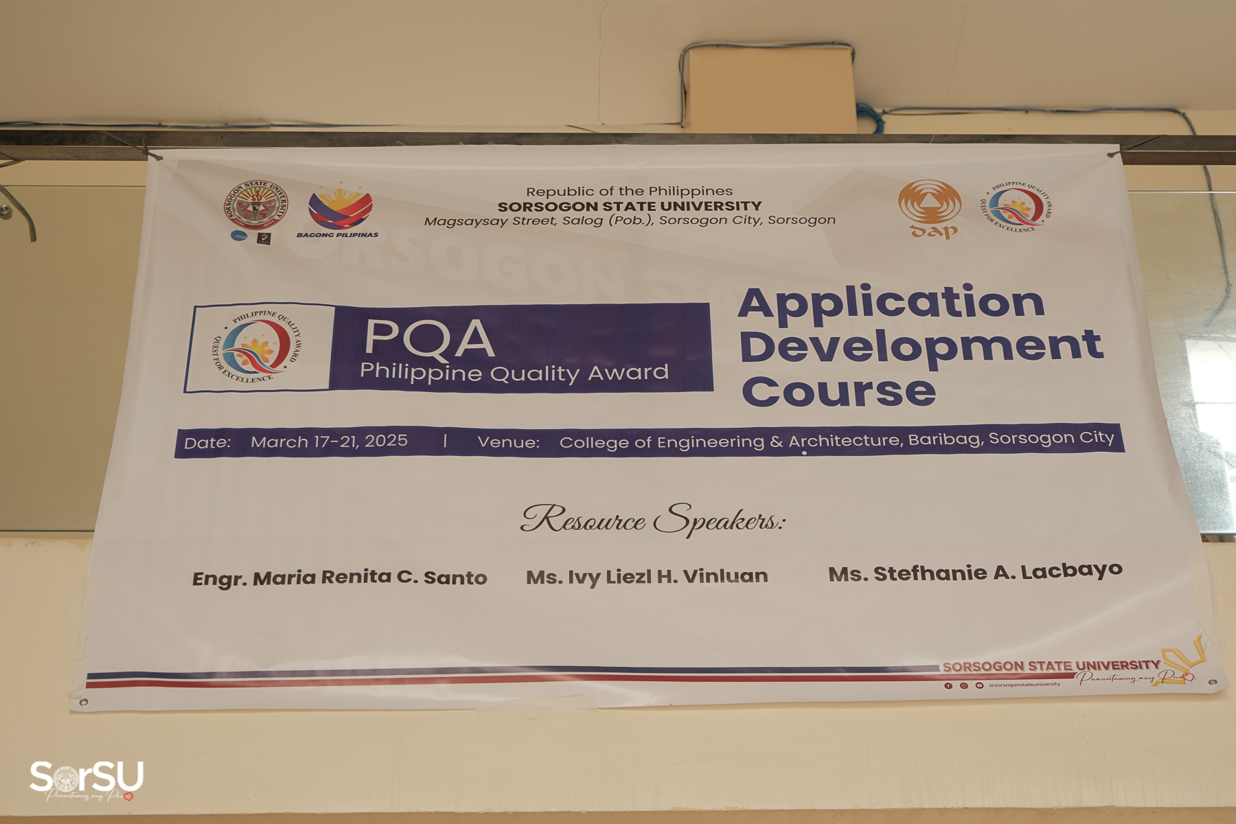 To strengthen its commitment to quality excellence and performance measurement, the Sorsogon State University (SorSU) Philippine Quality Award (PQA) Taskforce successfully completed a five-day intensive PQA Application Development Course from March 17-21, 2025, at the SorSU College of Engineering and Architecture in Baribag, Sorsogon City.