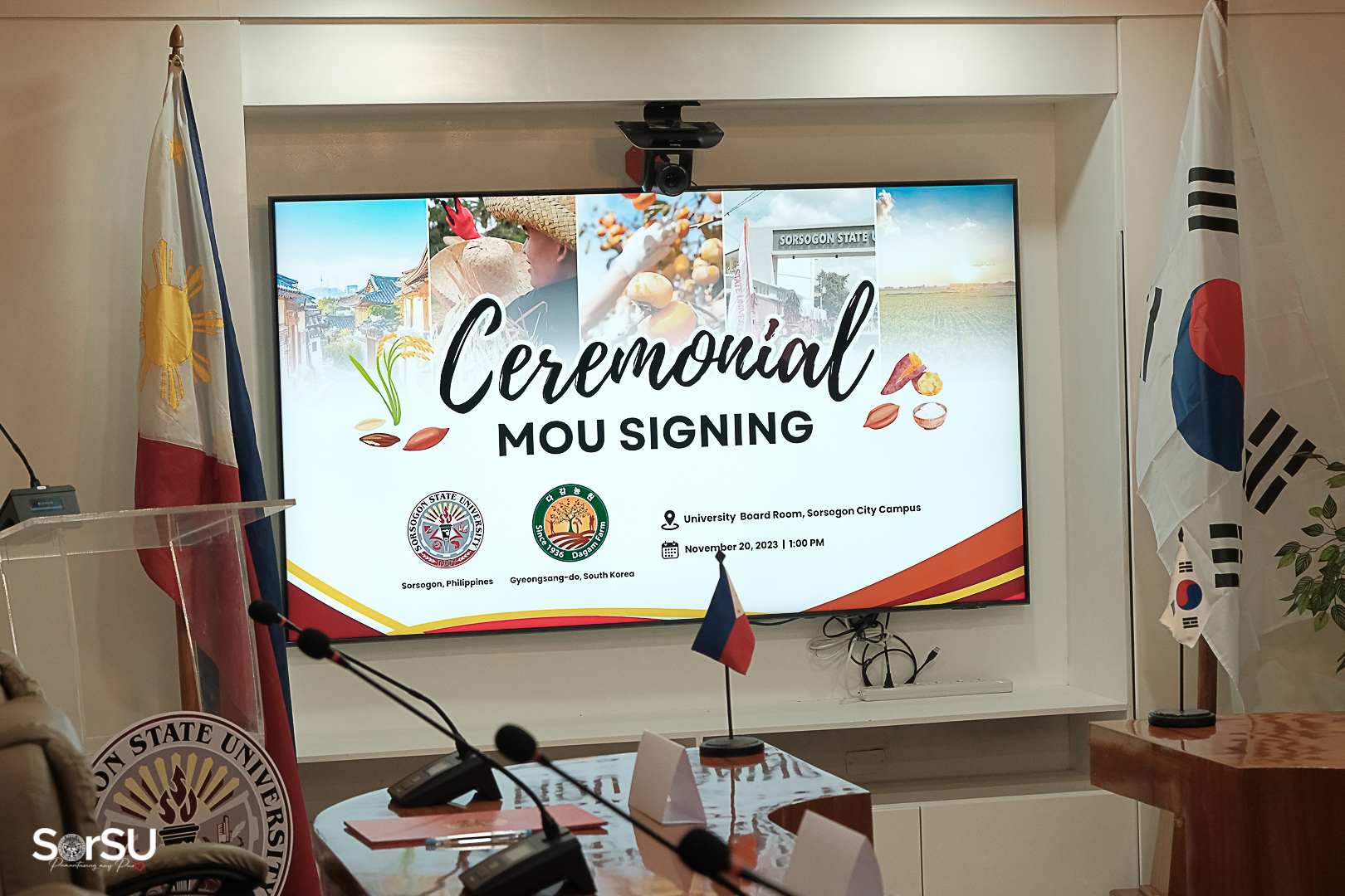 In a pivotal effort to expand the University’s global reach and foster international collaboration toward producing globally competitive leaders and professionals by providing its students with opportunities and resources that transcend geographical boundaries, a Memorandum of Understanding (MOU) ceremonial signing between Sorsogon State University (SorSU) and Dagam Farm, South Korea took place on November 20, 2023, at SorSU Board Room, Sorsogon City Campus.
