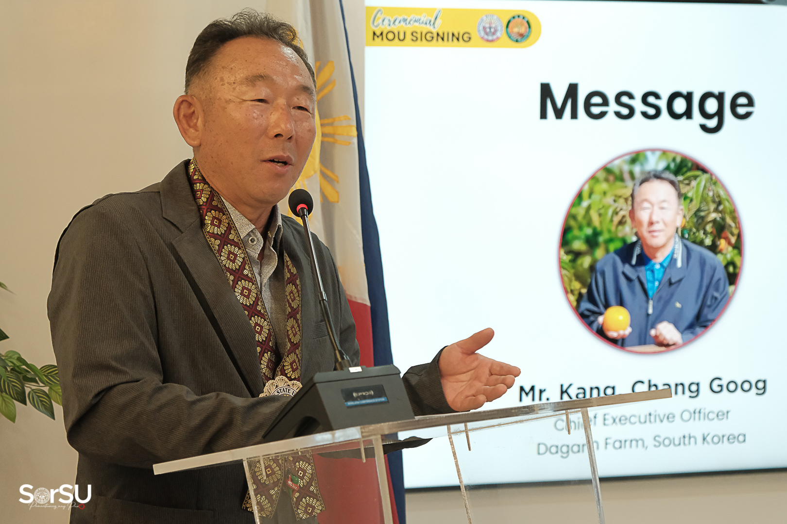 Moreover, Mr. Kang Chang Goog (Chief Executive Officer, Dagam Farm), in his message (translated by Engr. Annelin Paming), expressed his appreciation for the warm hospitality of the University, emphasizing that the core of the partnership lies in a shared goal to enhance the development of the agricultural industry.