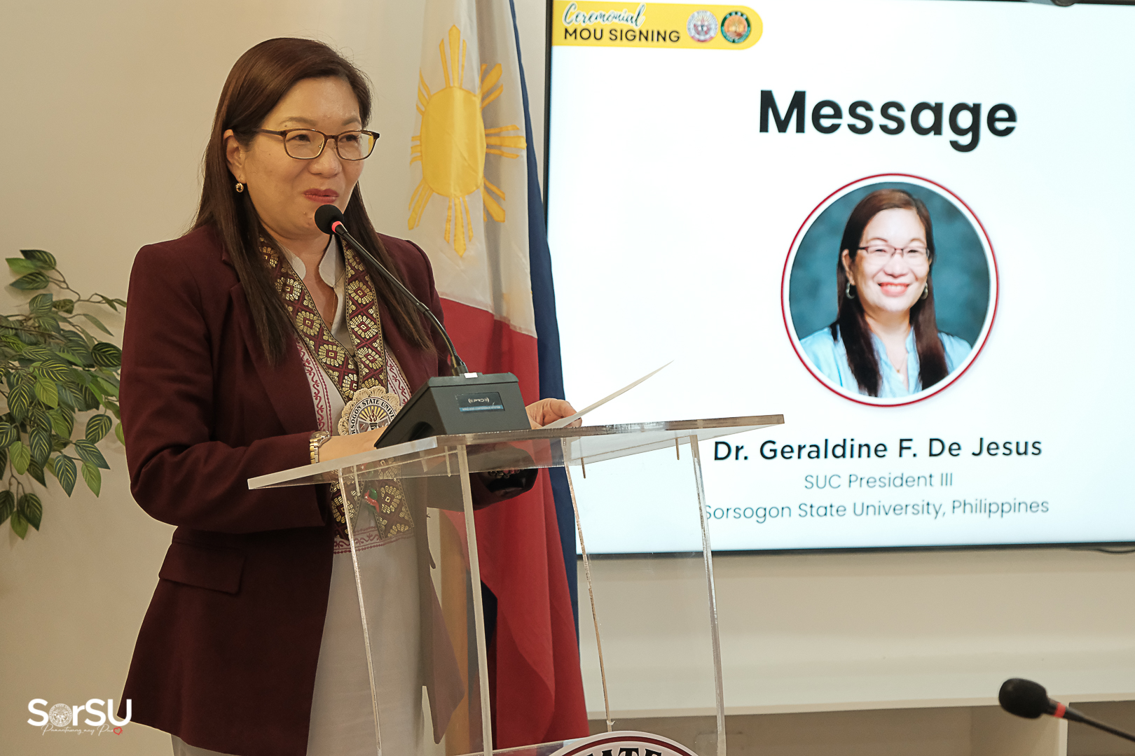 During the ceremonial MOA signing program, Dr. Vivien L. Chua (Director, SorSU-IRO), in her welcome remarks, highlighted that the University is honored to have the Dagam Farm representatives with them in such a significant event, adding value to another important milestone in the internationalization activity of Castilla Campus and the internationalization program of the entire University.