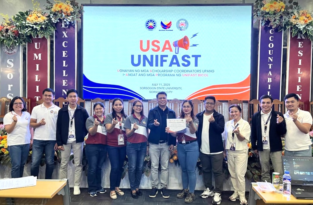 The awarding took place during USAP UniFAST (Ugnayan sa mga Scholarship Coordinators upang i-Angat ang mga Programa ng UniFAST sa Bicol) on July 11, 2025, held at the SorSU Audio-Visual Hall, Sorsogon City Campus.
