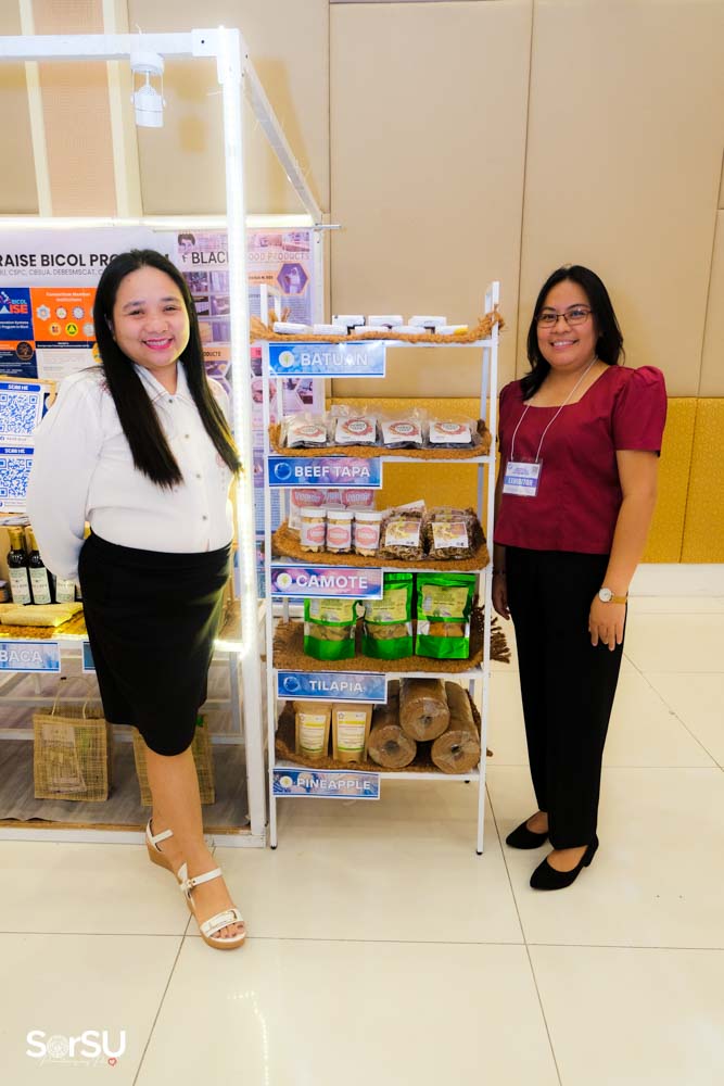 As one of the event’s exhibitors, SorSU’s RAISE Project Team, led by Engr. Ivy Rose B. Gonzales (Project Leader, RAISE SorSU) and Prof. Jezzabie G. Gamis, presented innovative products that demonstrated the university’s focus on sustainability. Among the showcased products were Crab Chips, Pili Pulp Crackers, Vacuum-packed Baloko, Vegetable Cookies, and Sweet Potato Fried Noodles.