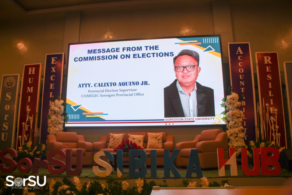Centered around the theme “Your Voice, Your Vote: Make a Difference!”, the Sorsogon State University-Sibika Hub (SorSU Sibika Hub) hosted a Voters’ Education and Registration Program on August 29, 2024 at the SorSU Audio-Visual Hall, Sorsogon City Campus, Sorsogon City. The event was designed to engage and educate young individuals on the crucial role of voting in shaping the future.