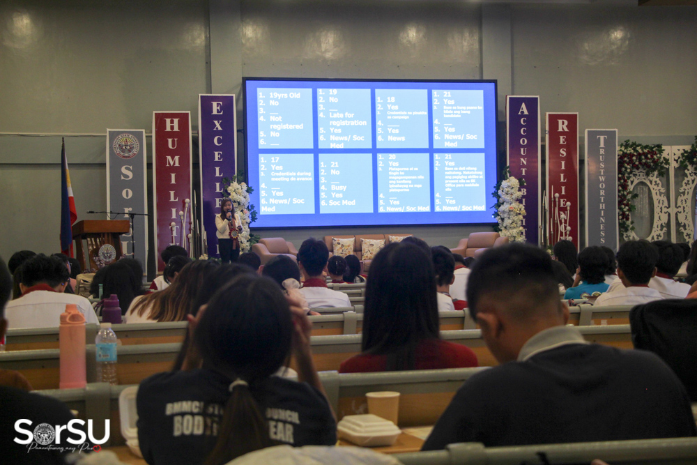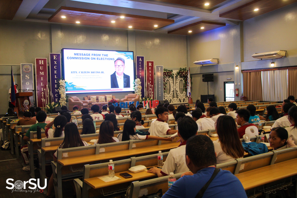 The program educated young people on the electoral process and encouraged them to get involved in their community. The event also included voter registration, allowing individuals to register and engage in civic duties. (SorSU PIO)