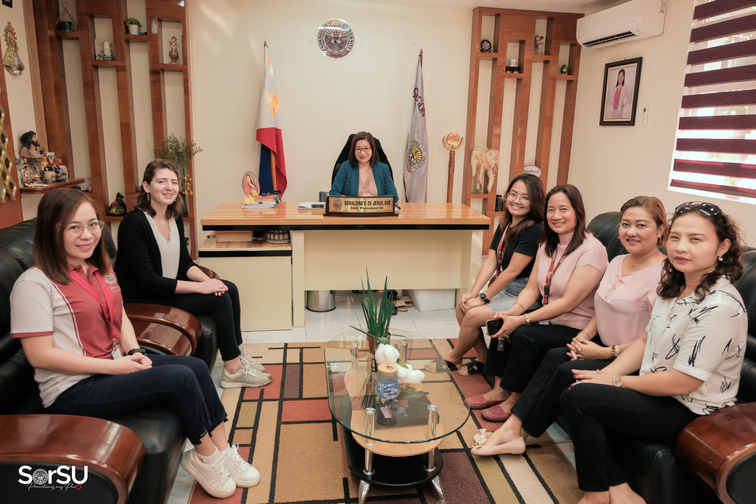 Alongside Dr. Vivien L. Chua (Director, SorSU-IRO) and Dr. Sherill A. Gilbas (Head, Admission Services Unit), Ms. Fisseu held a courtesy visit to SorSU President De Jesus, who graciously received the visiting foreign graduate student and assured her of the University’s unreserved hospitality and full assistance during her stay.