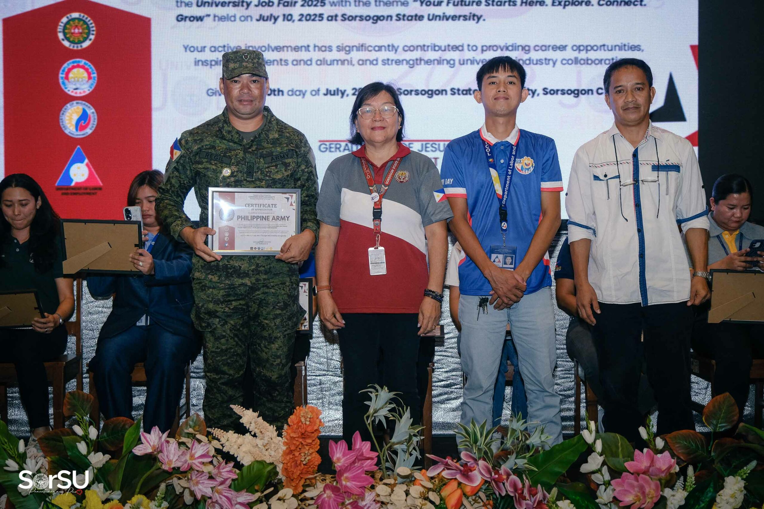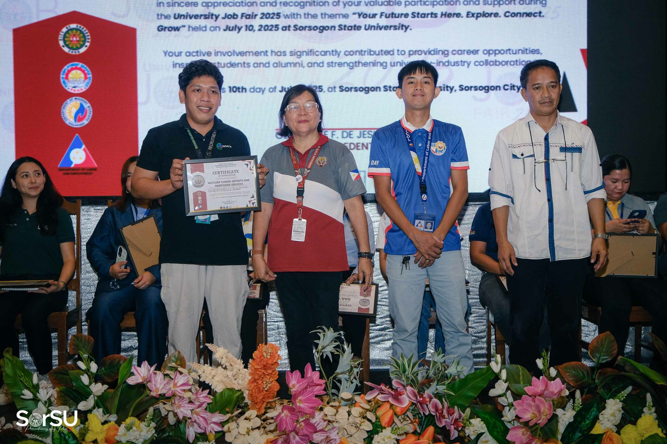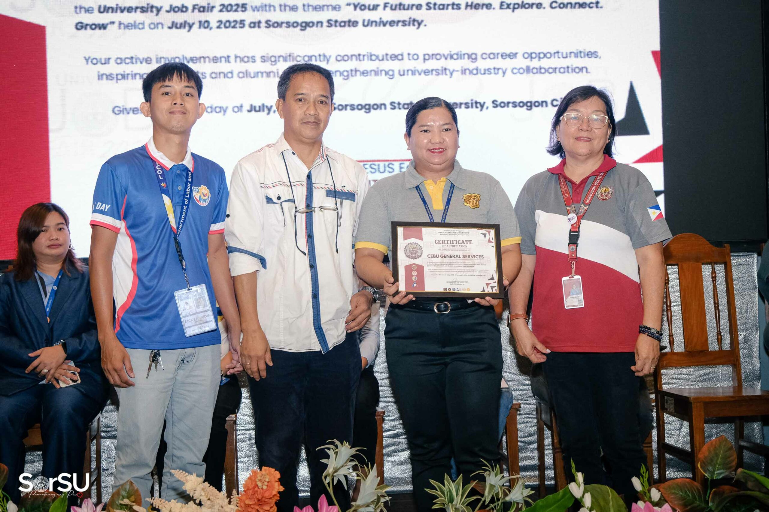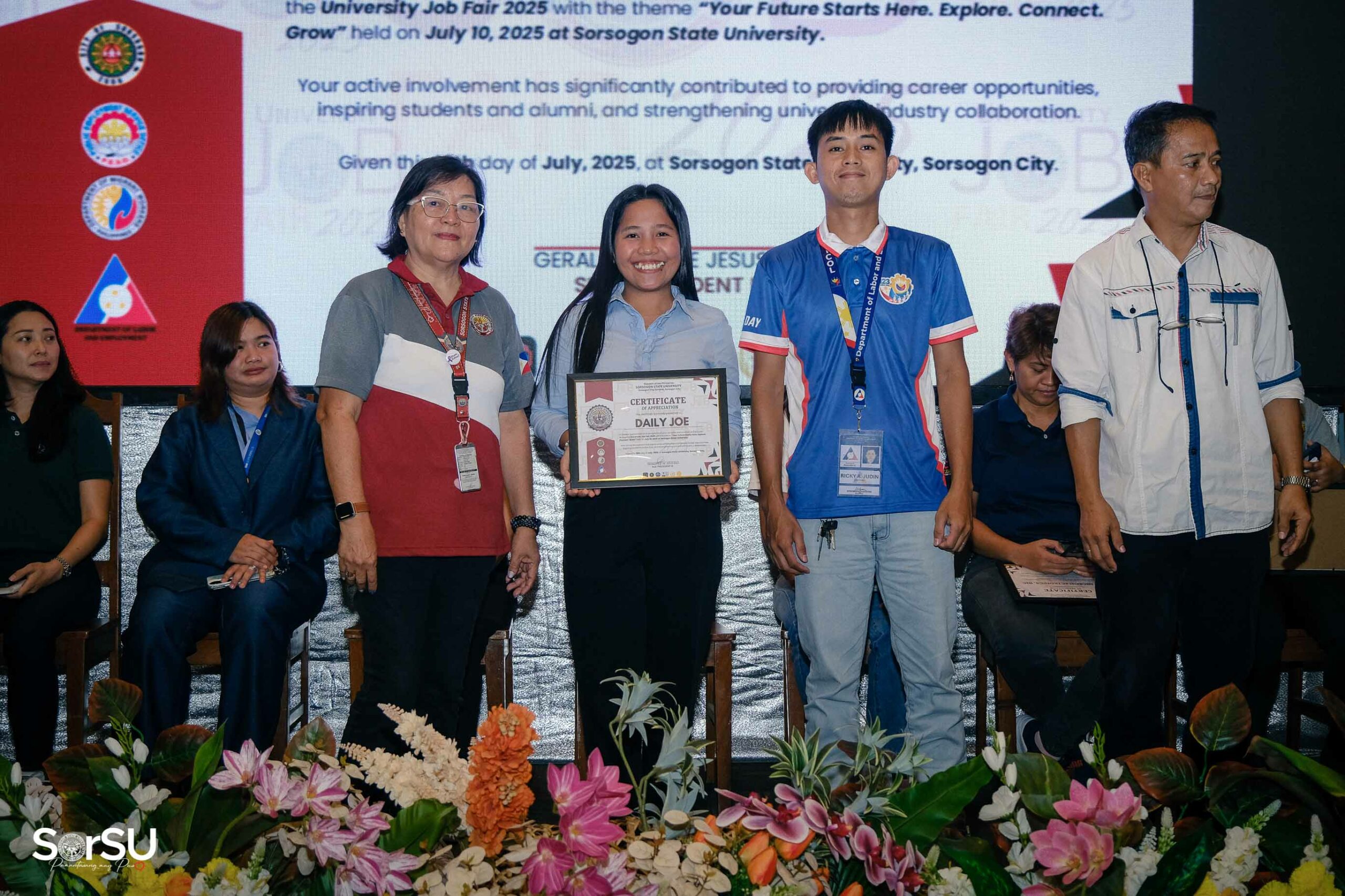 To create meaningful employment opportunities and connect aspiring professionals with reputable employers, Sorsogon State University (SorSU), through its Career and Job Placement/ILDO Services Unit in partnership with the Public Employment Service Office (PESO) Sorsogon, successfully held the UNIVERSITY JOB FAIR 2025 today, July 10, 2025, at the SorSU Audio-Visual Hall/Covered Court, Sorsogon City Campus, carrying the theme āYour Future Starts Here. Explore. Connect. Grow.ā