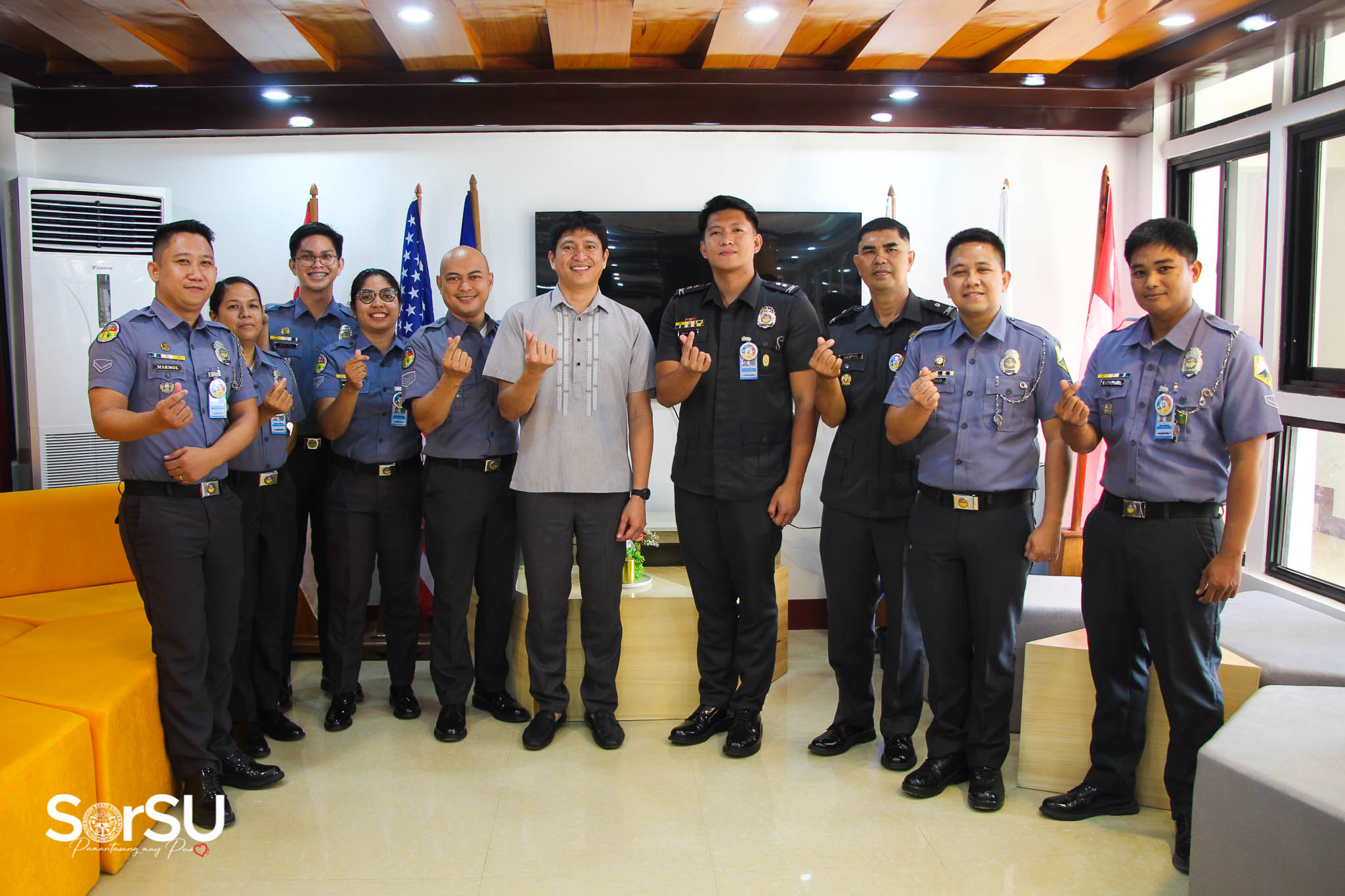 SorSU Vice President for Academic Affairs, Dr. Jhonner D. Ricafort, met with officers from the Sorsogon Provincial Jail Administrator’s Office, including JINSP Ampon G. Gestre, JO3 Mark Alvin L. Losuegro, JO2 Frenie C. Jubilo, Jr., and JO1 Joseph Nathaneil S. Marmol (Sorsogon City District Jail), along with officials from BJMP – Irosin District Jail: JSINSP Richard Ryan B. Molato (Acting Warden, Irosin District Jail), JO1 Manilyn C. Dichoso (Chief, Unit Welfare Development Officer), JO1 Josh L. Laurinaria (Community Relations Service Officer), JO1 Allona Janine D. Dooc (Development Officer), and JO1 Mike Louie G. Odena (Morale and Welfare Officer) for an exploratory discussion about the program.