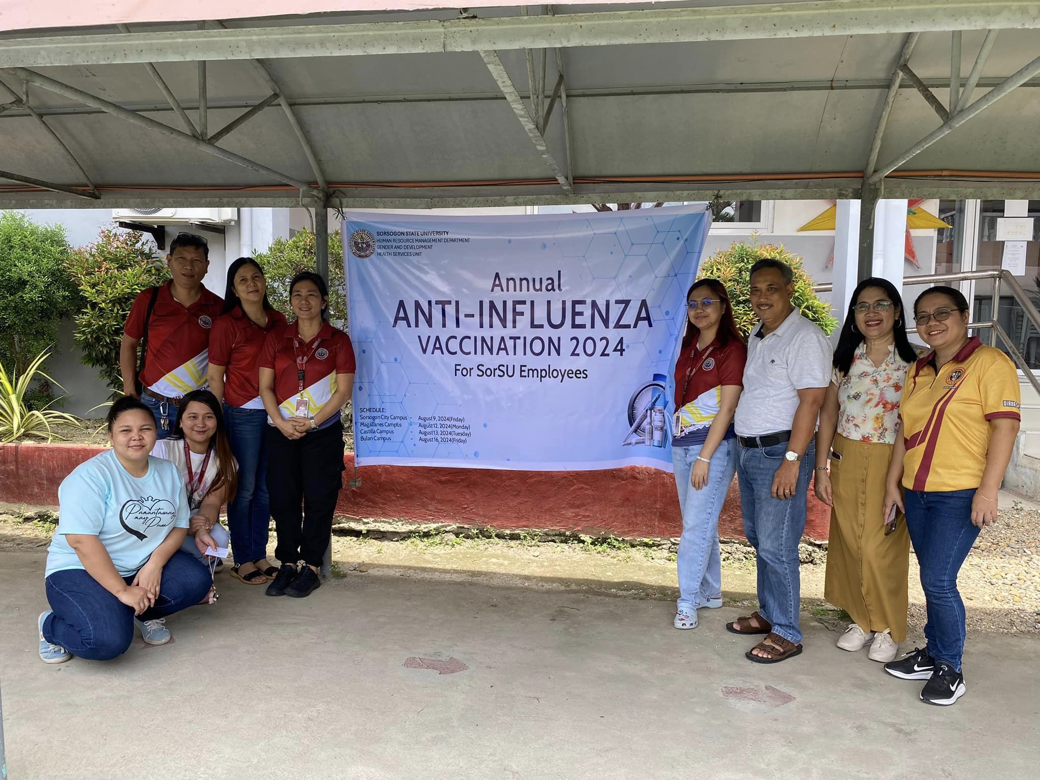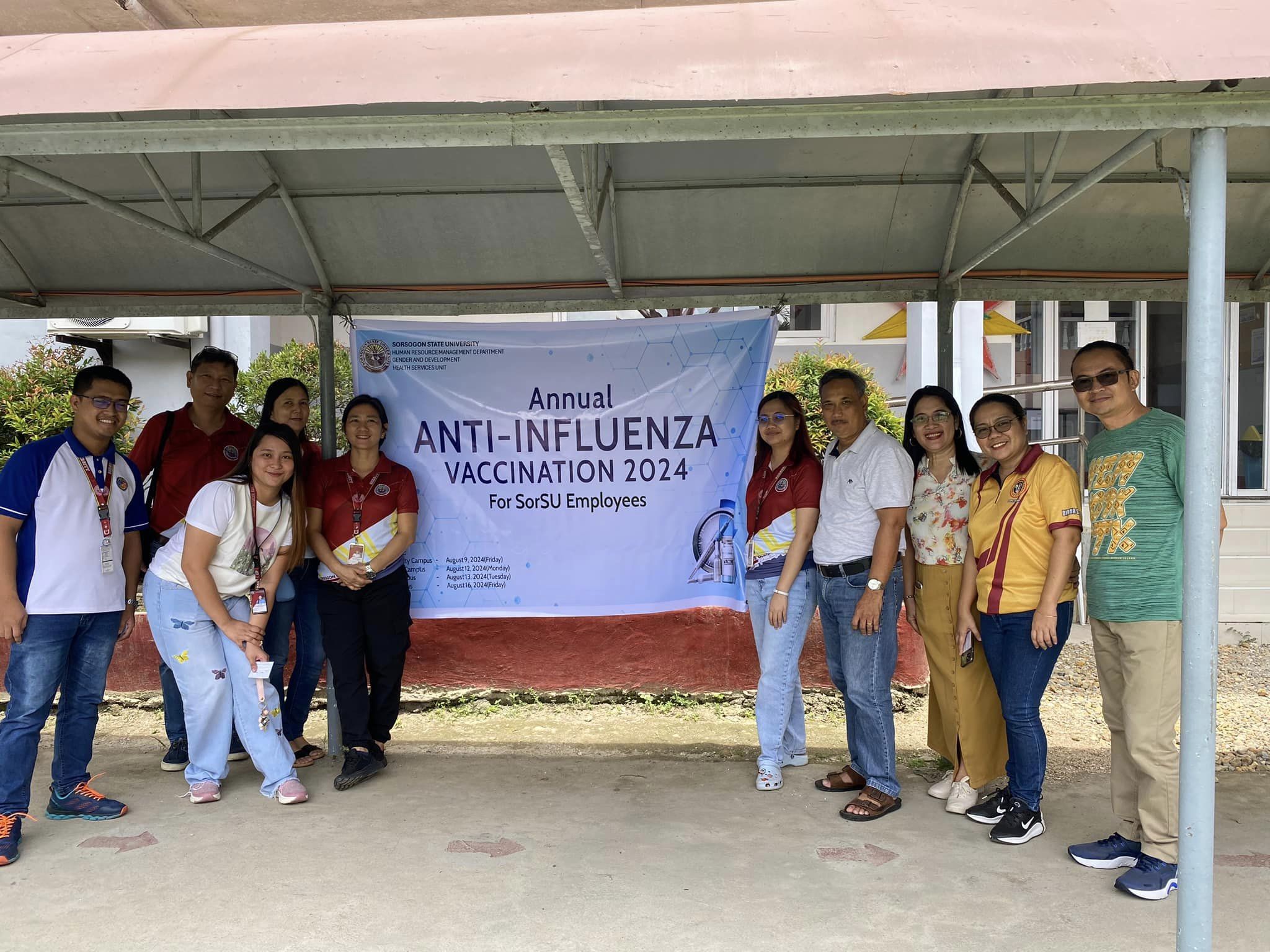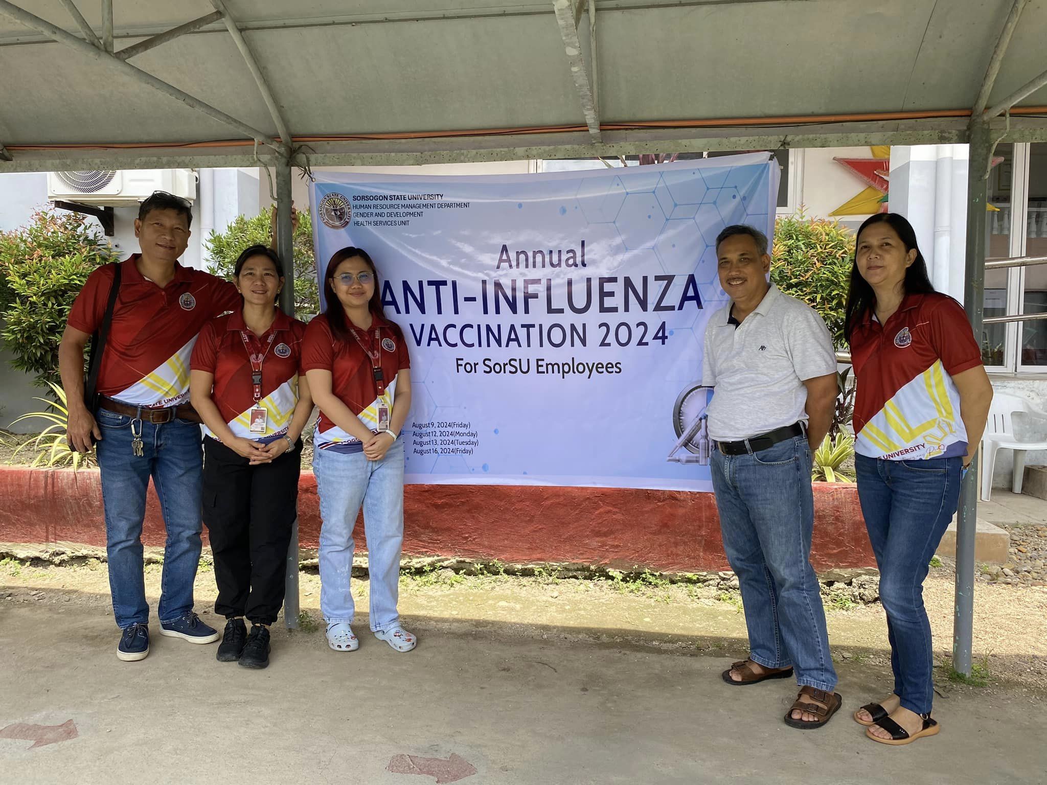 As part of its efforts to ensure the health and safety of its employees which are essential in enabling them to provide quality services to their clients, Sorsogon State University, through the Medical and Health Services Unit, initiated a free annual anti-influenza vaccination for its employees in Bulan Campus today, August 16, 2024.