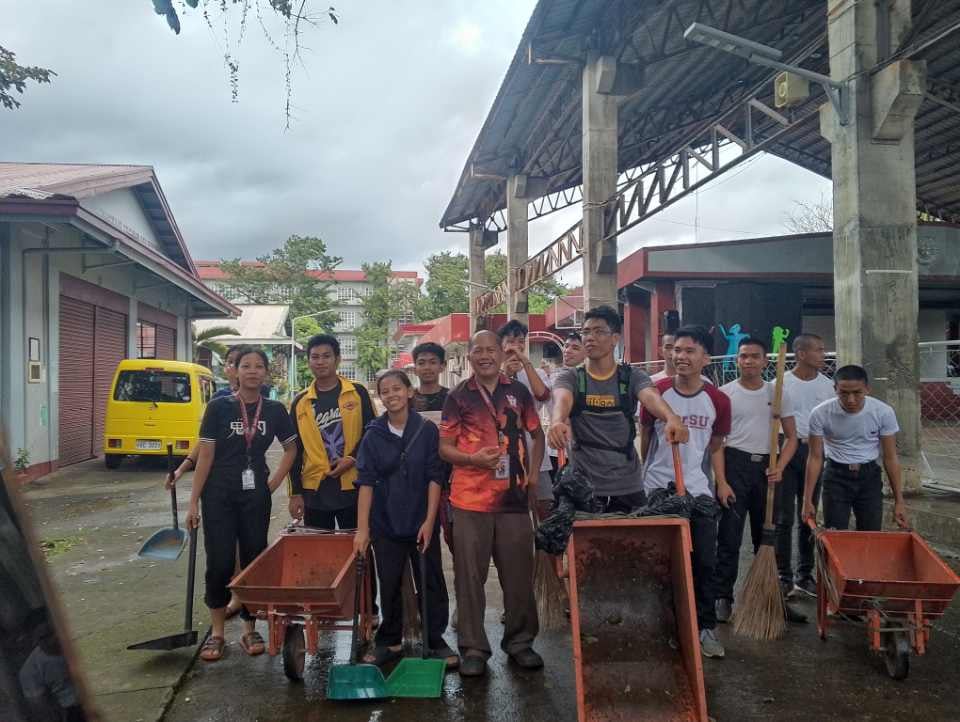 In the wake of Typhoon Kristine, the spirit of volunteerism has taken center stage at Sorsogon State University (SorSU) as students and faculty come together to support those affected by the storm. Led by the Disaster Risk Reduction and Management (DRRM) Director, Prof. Saturnino C. Carranza and volunteers, including the Kalasag ng SorSU Student Volunteers, General Services & Maintenance Director, Dr. Christopher C. Jaramiel, College of Technology Dean, Dr. Orlando D. Doncillo, members of the Reserve Officers’ Training Corps (ROTC), Technology Student Council officers and some NSTP students, the first phase of the cleaning operation was undertaken. This activity aims to restore the campus after the severe weather caused significant disruption, with volunteers actively removing debris and assessing damages.